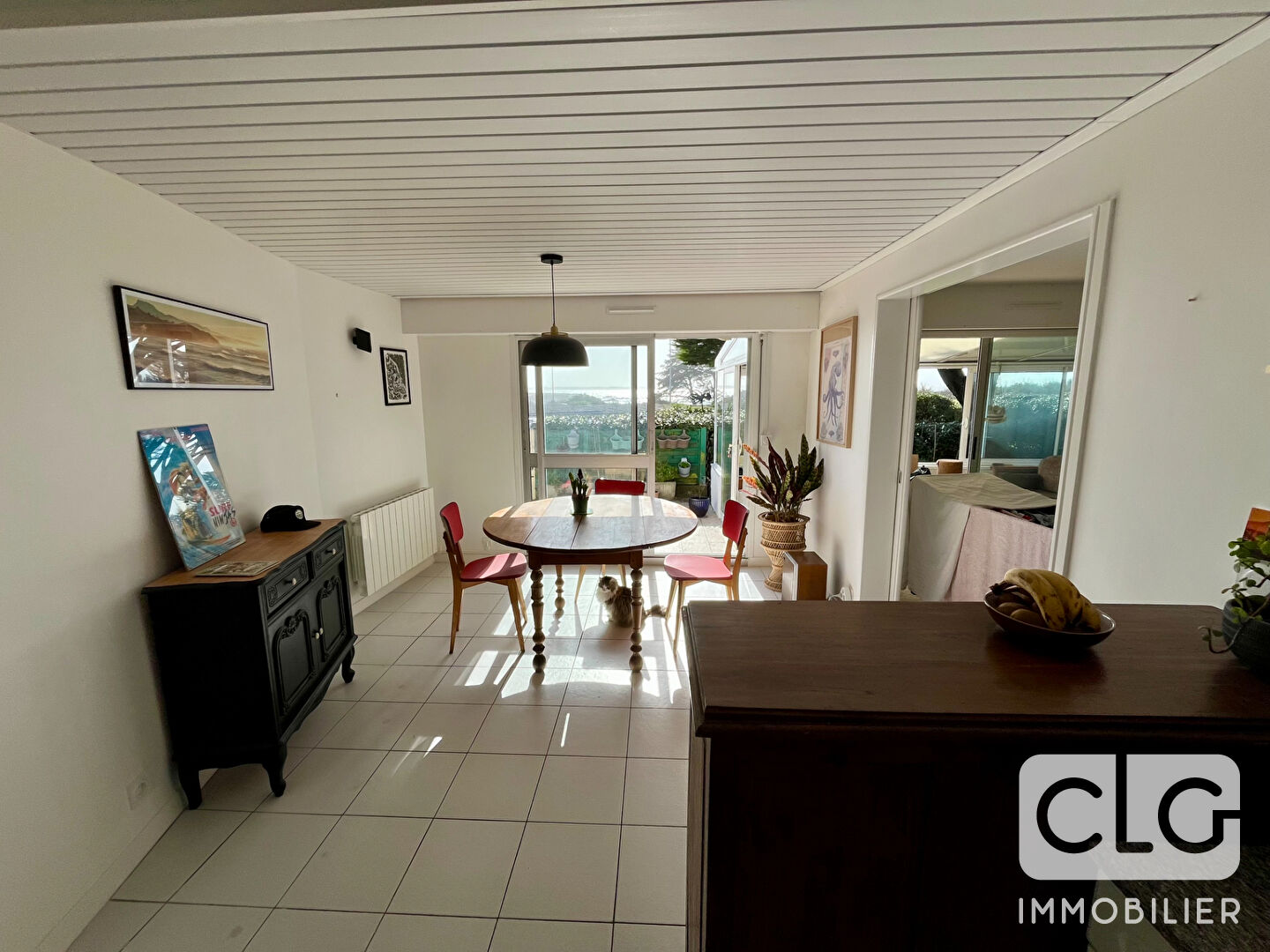 Situé face à la mer et à proximité des plages, au rez de chaussée d'une résidence construite dans les années 80, cet appartement lumineux vous séduira par son agencement et ces volumes, sa véranda et sa terrasse regardant l'île de Groix. Ce bien est composé d'une entrée avec placard desservant un séjour cuisine ouvrant sur la terrasse, un salon prolongé par une véranda, une salle d'eau avec WC et une chambre avec dressing. Cet appartement bénéficie d'un box de 5 m², d'un garage et d'une place de parking numérotée et privative. Copropriété de 108 lots - dont 37 lots habitation. (Pas de procédure en cours). Charges annuelles : 1296 euros. Pierre OLLIVIER (EI) Agent Commercial - Numéro RSAC : 514916808 - QUIMPER.