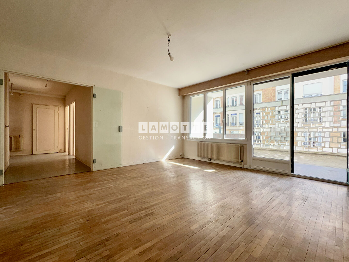 [RARE] - Appartement les halles centrales - Terrasse de 53 m² Lamotte Transaction vous présente en plein centre de Rennes, un appartement de plus de 97m² avec garage fermé et une terrasse exceptionnelle de plus de 50 m² avec sa vue imprenable sur la bâtiment emblématique de "République". Entièrement à rénover , il offre de nombreuses possibilités d'aménagement pour créer un espace de vie moderne et fonctionnel. Avec une surface généreuse et une belle luminosité il se compose aujourd'hui d'un hall d'entrée desservant une cuisine, une salle de bains, des WC séparés, 3 grandes chambres, un salon séjour avec accès à la terrasse. Une cave et la possibilité d'un garage en sus du prix. Prix net vendeur : 350 000 soit 368 000 euros honoraires inclus Copropriété de 204 lots - dont 164 lots habitation. (). Charges annuelles : 3550 euros.