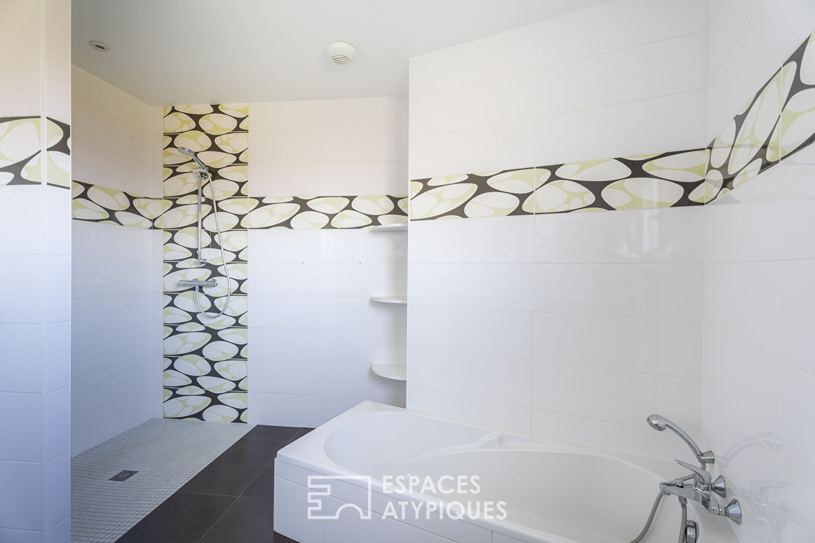 Nichée dans un environnement paisible, à quelques minutes du centre de Béganne, cette maison contemporaine de 2014 incarne l'équilibre parfait entre modernité, confort et sérénité. Ses volumes généreux et sa belle luminosité naturelle en font un lieu de vie aussi accueillant que fonctionnel, pensé pour le bien-être au quotidien. Dès l'entrée, un placard intégré accueille les effets du quotidien, avant de laisser place à une pièce de vie baignée de lumière, ouverte sur la terrasse et le vaste jardin clos. Les grandes baies vitrées invitent la nature à l'intérieur et offrent une continuité fluide entre les espaces intérieurs et extérieurs. La cuisine ouverte, aménagée et équipée avec soin, s'intègre harmonieusement à l'ensemble et appelle à la convivialité autour d'un repas partagé. Le rez-de-chaussée se complète par trois chambres confortables, toutes équipées de placards de rangement, et une salle de bains élégante combinant baignoire et douche pour plus de confort. A l'étage, un couloir distribue deux chambres supplémentaires, une salle d'eau et un toilettes indépendant, offrant un espace nuit accueillant pour la famille ou les invités. Le sous-sol partiel abrite un garage double avec portes motorisées, une buanderie et un toilettes, apportant praticité et rangements supplémentaires. CLASSE ÉNERGIE : B / CLASSE CLIMAT : A Montant moyen estimé des dépenses annuelles d'énergie pour un usage standard, établi à partir des prix moyens des énergies indexés sur au 1er janvier 2021 : entre 690 euros et 990 euros/an. Les informations sur les risques auxquels ce bien est exposé sont disponibles sur le site Géorisques : www.georisques.gouv.fr Sonia BERTAUD Responsable d'Agence 06.73.44.23.72