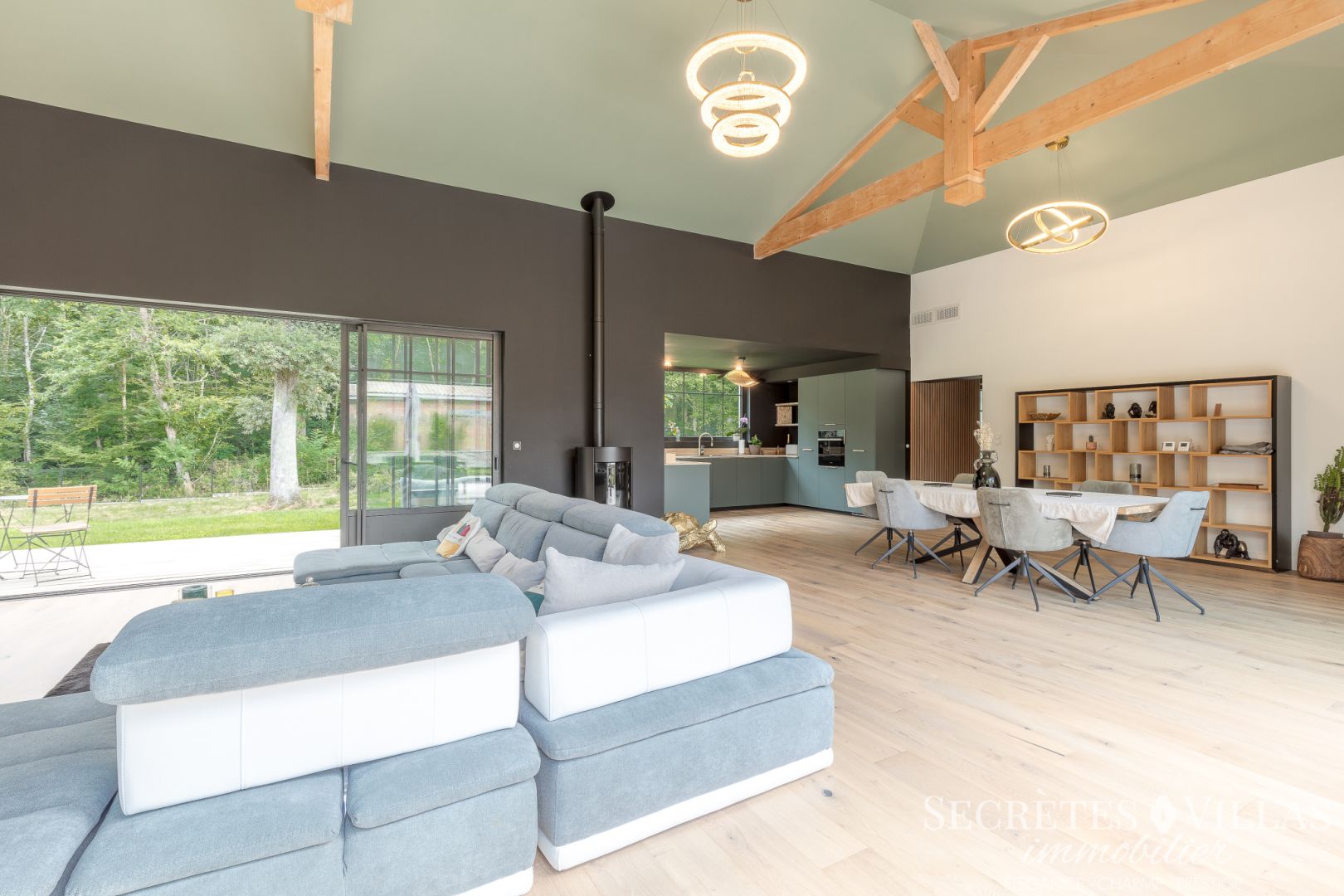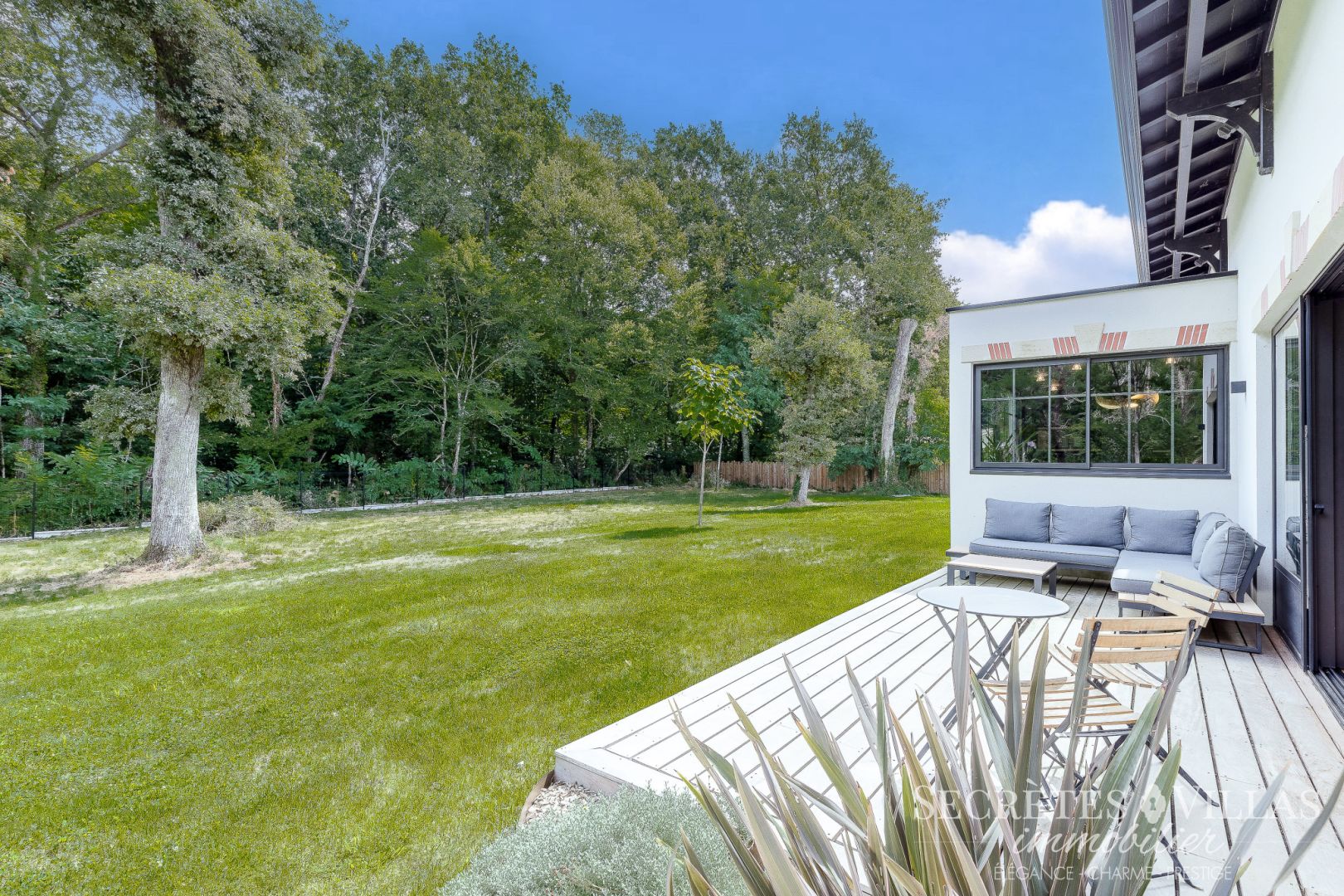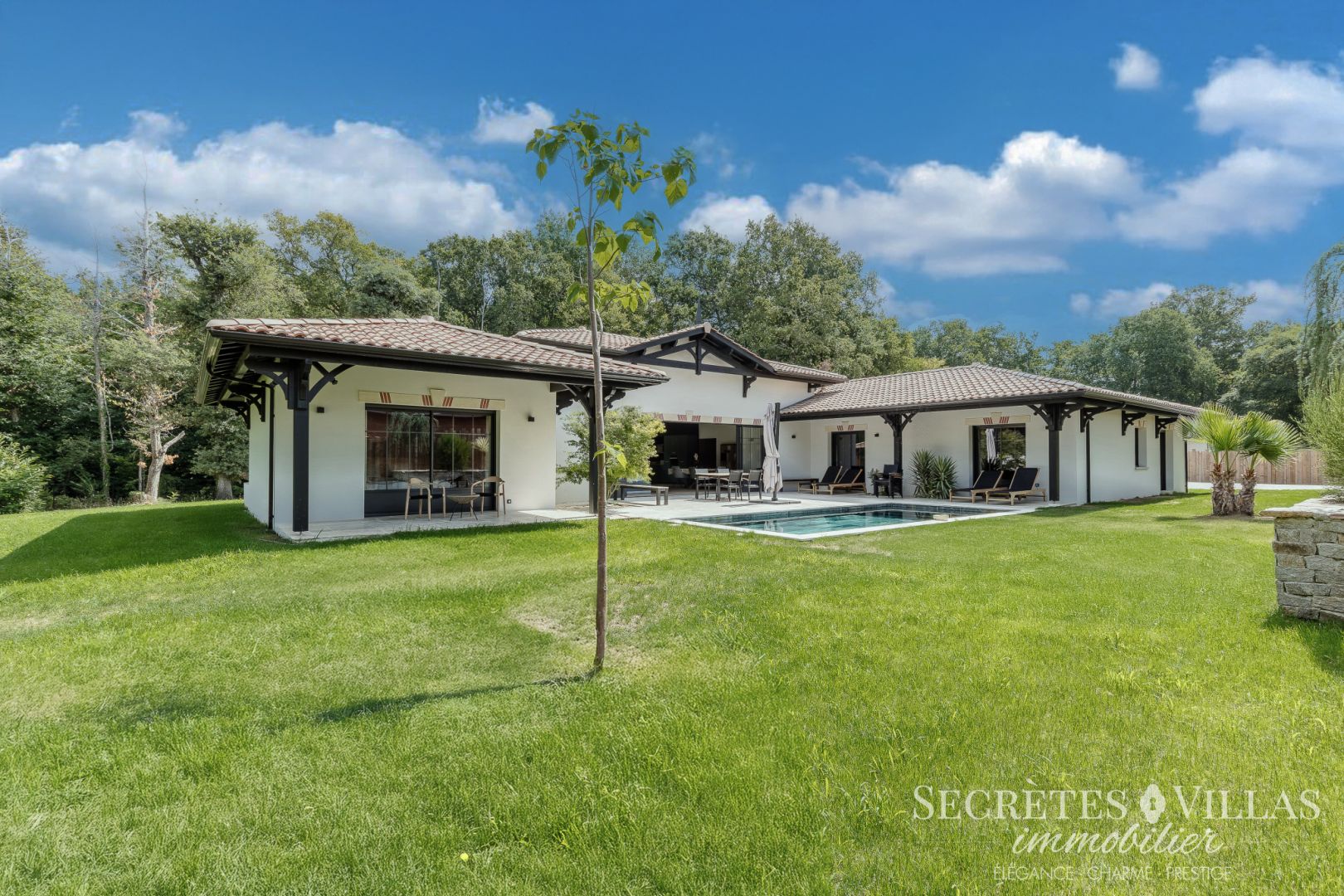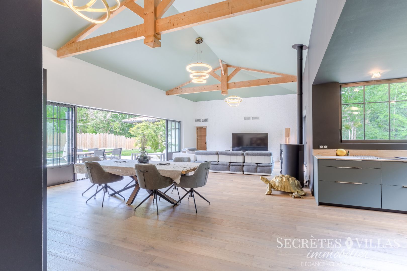 SOUS COMPROMIS. PROPRIETE D'EXCEPTION DE 2023 LATRESNE secteur : L'ÉLEGANCE ARCACHONNAISE AU COEUR D'UN ÉCRIN BOISE. Plongez dans un havre de paix où luxe et sérénité s'entremêlent. Nichée au fond d'une impasse, cette somptueuse villa de plain-pied de 241 m2, de style arcachonnais et achevée en 2023, vous invite à une expérience de vie inégalée. UN DESIGN RAFFINE ET DES PRESTATIONS HORS NORME.Conçue par un décorateur de renom, cette propriété révèle des espaces d'une élégance rare. Dès l'entrée, un magnifique dressing d'accueil vous mène vers une pièce de réception traversante de 77 m2, baignée de lumière, avec son impressionnant plafond rampant de 4,50 m et son poêle à bois. La cuisine américaine PERENE haut de gamme, parfaitement équipée, s'ouvre sur cet espace convivial, complétée par un cellier-buanderie fonctionnel. DES ESPACES NUIT LUXUEUX ET INTIMES. La villa offre une suite parentale d'exception, ouvrant sur une terrasse privée abritée, avec superbe dressing équipé sur mesure et une luxueuse salle de bain/douche italienne 11m2. L'espace enfants est pensé pour le confort de chacun avec : Deux chambres de 14 m2 chacune, bénéficiant de leur propre dressing et salle d'eau avec douche italienne. Deux autres chambres de 14 m2 et 13,25 m2, avec dressing, partageant une belle salle d'eau avec douche italienne. UN ÉCRIN DE VERDURE ET DE DETENTE. Le terrain clos de 4312 m2, véritable oasis boisée et parfaitement exposé, abrite une piscine chauffée en pierre de Bali, évoquant les plus belles ambiances exotiques. Un charmant cabanon en bois, rappelant les cabanes ostréicoles, dissimule le local technique. Les terrasses en Ipé et Travertin, ainsi que le parking en pavés de granit de 150 m2 pouvant accueillir plusieurs véhicules, ajoutent une touche d'élégance supplémentaire. Un garage double avec grande porte électrique complète ce bien. CONFORT ET TECHNOLOGIE DE POINTE. Cette propriété incarne le summum de la qualité de construction et des équipements : Normes RT 2020, étude de sol, garantie décennale et dommage-ouvrage 2023, Vide sanitaire, ravalement en briquette et enduit, charpente traditionnelle avec chevrons apparents, avancées de toit, tuiles méridionales. Huisseries aluminium avec petits bois intégrés, chauffage par pompe à chaleur gainée air-air, ballon thermodynamique. Parquets contrecollés en chêne, portes pleines en chêne, arrosage intégré, portail et porte de garage électriques... EMPLACEMENT IDEAL. Profitez d'un environnement paisible sans être isolé, avec une proximité immédiate des commerces, écoles maternelles et primaires. Le bus pour le collège et le lycée est à portée de main. Le centre de Bordeaux et la gare Saint-Jean sont accessibles en seulement 20 minutes. DE PAR SES VOLUMES GENEREUX, SES PRESTATIONS EXCEPTIONNELLES, SON CHARME INTEMPOREL ET SON STYLE UNIQUE, CETTE PROPRIETE OFFRE UNE AMBIANCE 'BASSIN' INCOMPARABLE. UN BIEN VERITABLEMENT UNIQUE SUR LE MARCHE. Les informations sur les risques auxquels ce bien est exposé sont disponibles sur le site Géorisques (3.72 % honoraires TTC à la charge de l'acquéreur.)