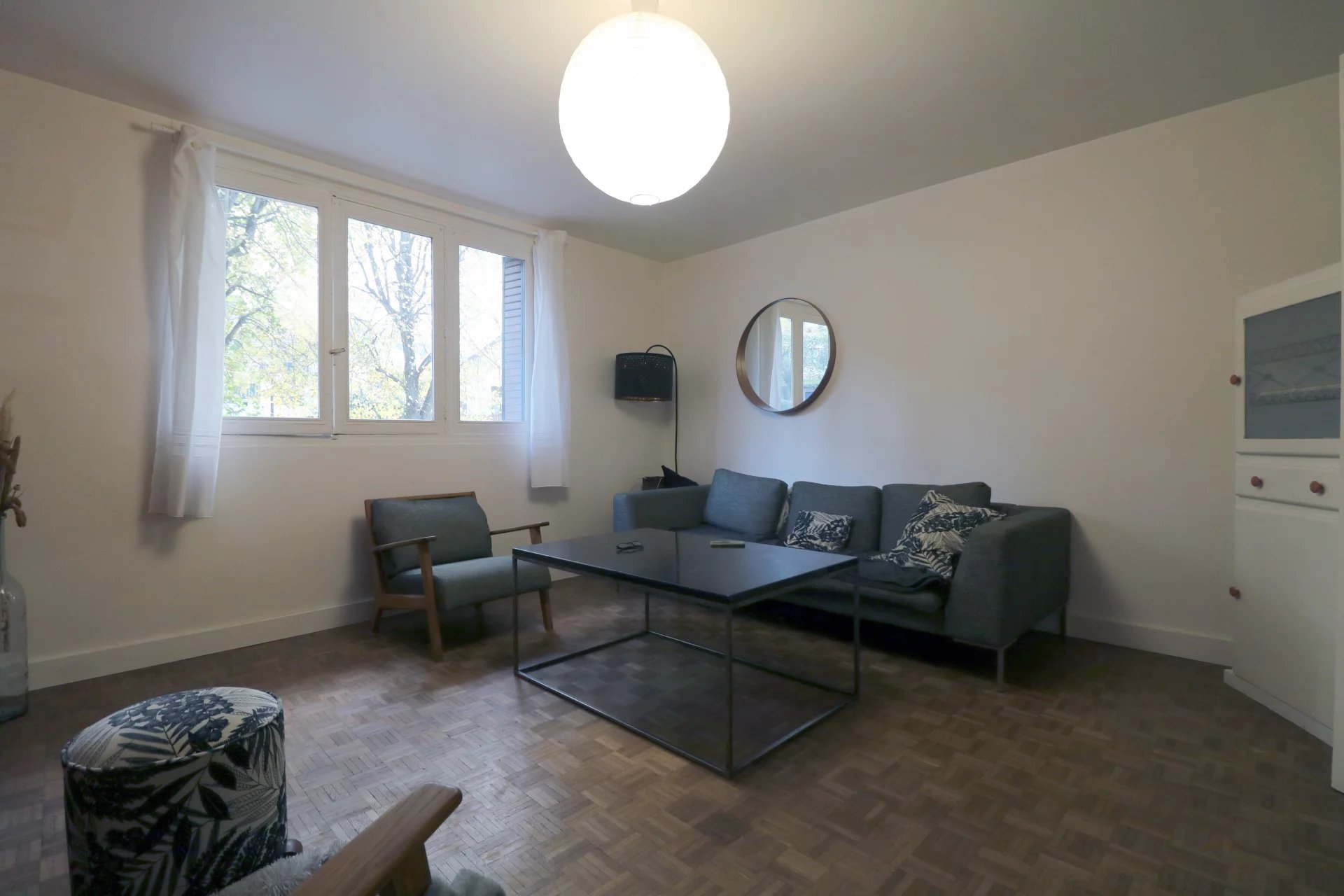Situé en plein centre-ville, proche des commerces, écoles et à 5min. a pieds de la gare de Saint-Cyr l'Ecole (RER C - Transilien N et U), (RDC très surélevé sans visuel piétons) un appartement 3 pièces de 60m² en bon état général dans une résidence récente réalisée en 1967 bien entretenue (ravalements façades 2015 - Chaudière collective 2019) offrant un séjour parquet exposé Sud/Ouest sans vis-à-vis, une cuisine individuelle aménagée, toilette ind., salle de douche, couloir avec placard et deux chambres confortables sans vis-à-vis. Une cave privative et jardins communs de la copropriété