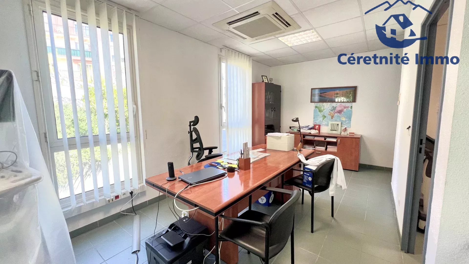 Une OPPORTUNITE Céretnité Immo: notre agence vous propose ces beaux locaux à usage professionnel idéalement situés, facile d'accès en Rdc et de plain pied, avec parkings immédiat dans Céret. La surface est de près de 75 m2, les pièces sont très lumineuses, fonctionnelles et en très bon état. Double vitrage, climatisation ...Les bureaux sont constitués de 5 pièces au total avec sanitaires. Idéal profession libérale Loyer mensuel 980 € cc Bail professionnel Eau et électricité compteurs individuels Adresser toute demande à: location@ceretnite-immo.fr tél service gestion: 06 37 76 03 35