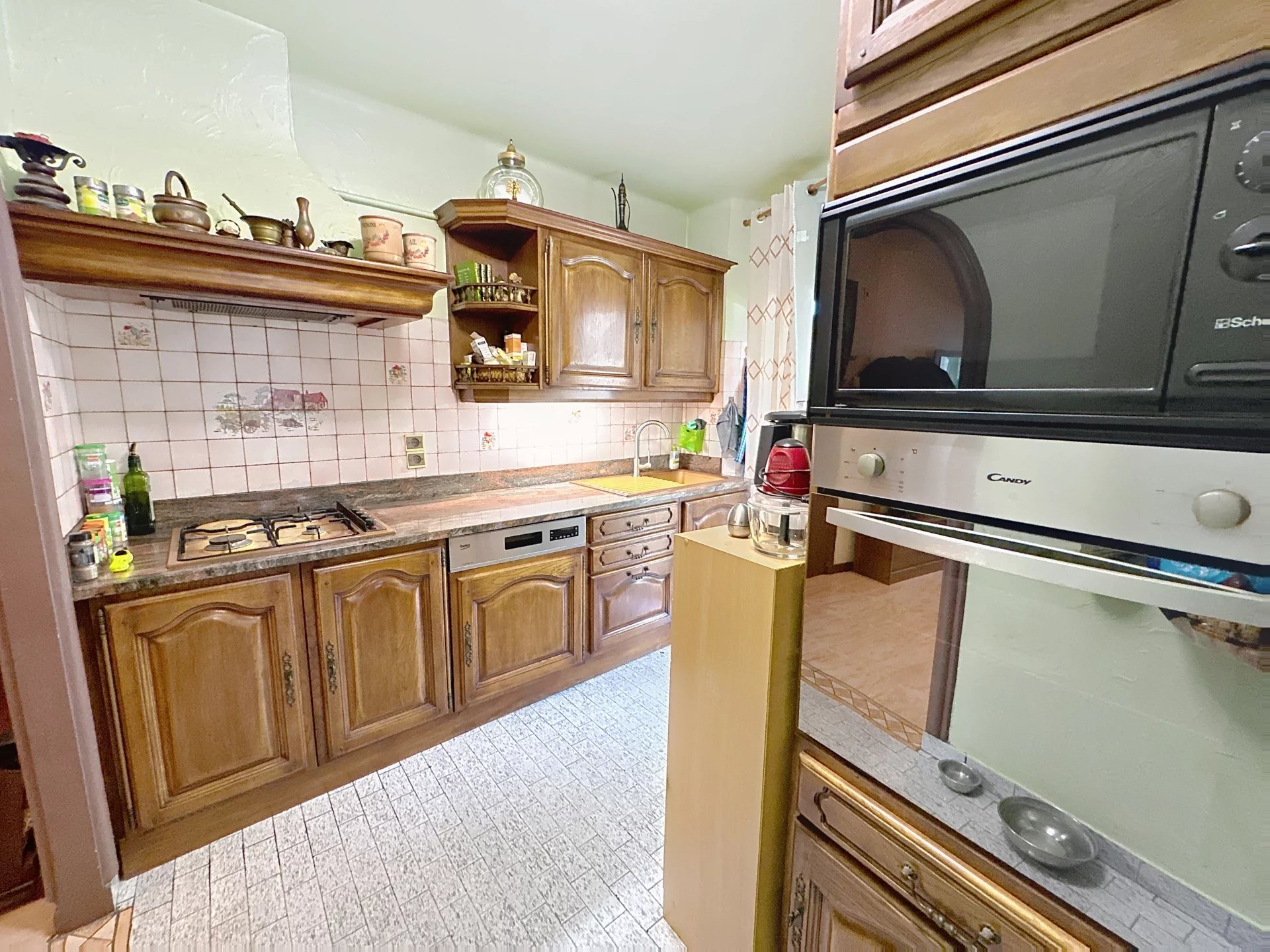 Une cuisine séparée avec coin repas pour papoter autour du café,