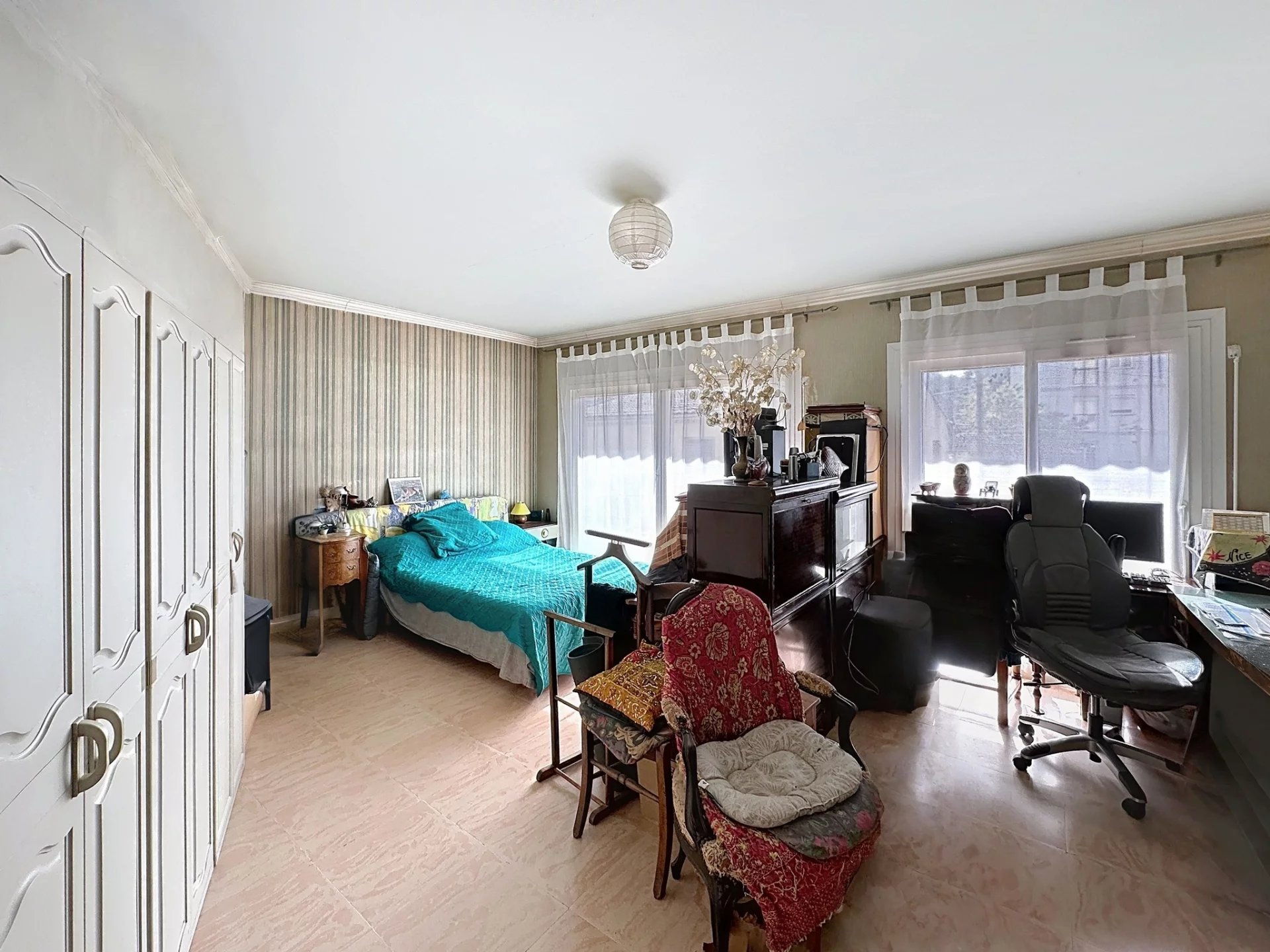 Aujourd’hui, le salon de 22,5 m² a été transformé en chambre avec bureau — mais demain, il peut redevenir un vaste saloon pour recevoir les amis.