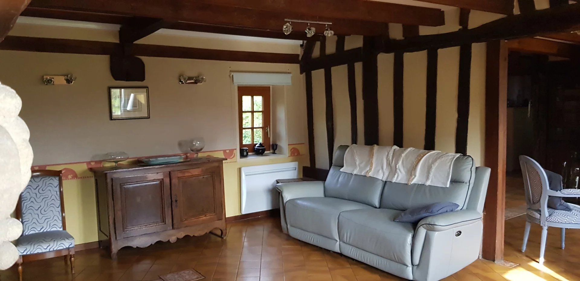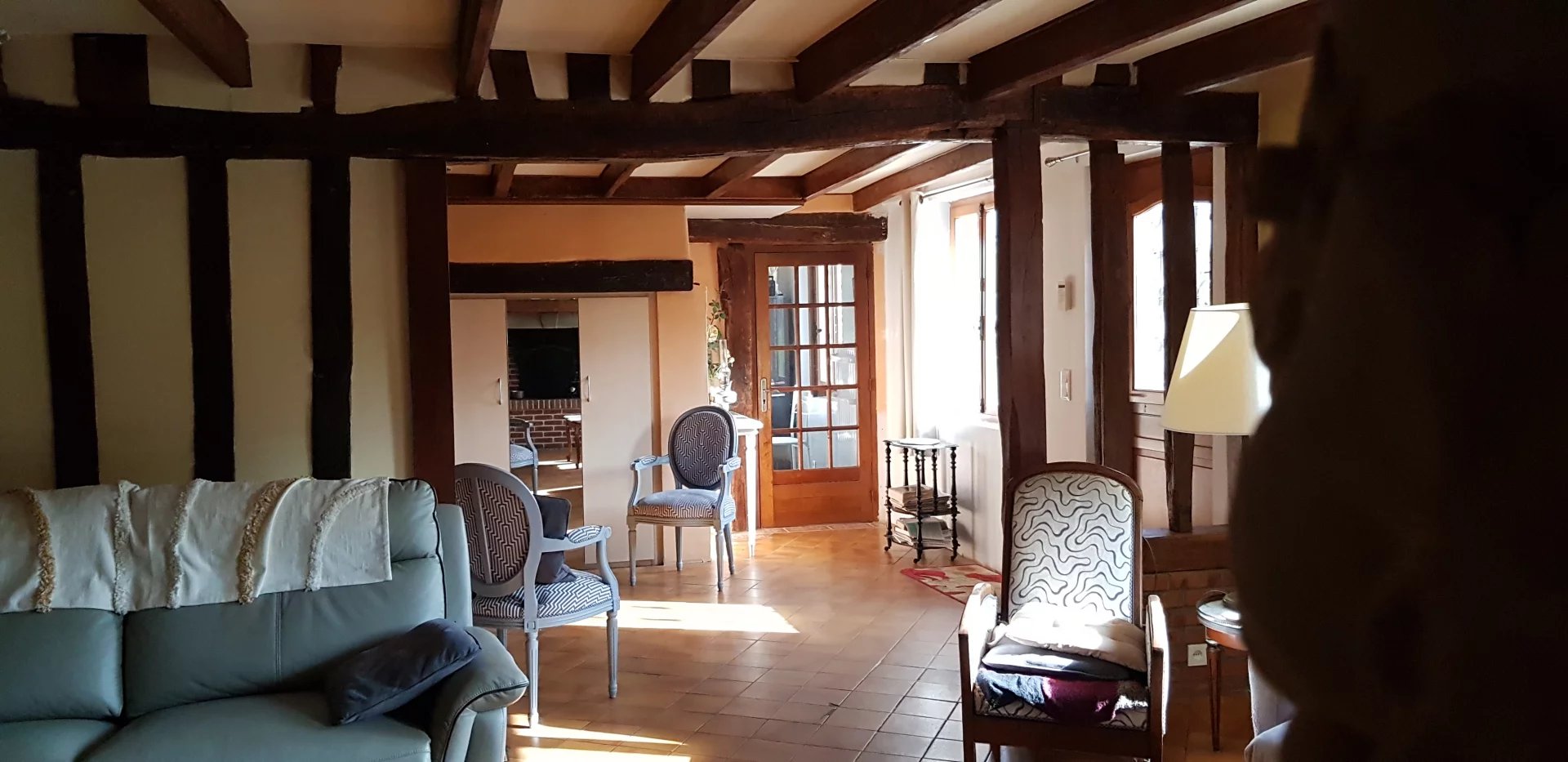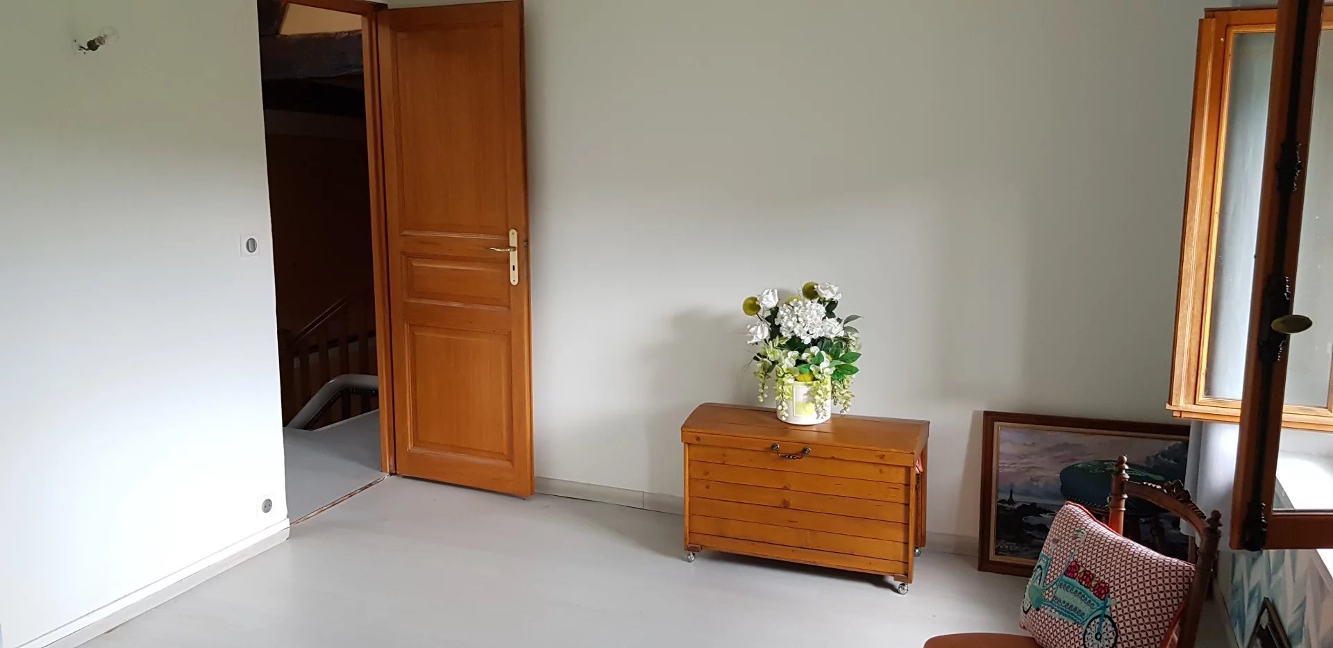 A VENDRE - Sur la commune de Jumièges -Dans un cadre exceptionnel avec la sensation d'être en vacances en permanence, vue sur Seine, à 5 minutes des l'écoles et du centre du village, Belle Demeure familiale et authentique de 205 m2 offrant de généreux volumes avec poutres apparentes, en bon état général, comprenant vaste entrée, cuisine équipée et aménagée, séjour salon de 50 m2 avec cheminée, 5 chambres dont 2 plus petites, bureau, mezzanine, salle de bains récente avec baignoire balnéo + salle de douche, chauffage électrique (panneaux solaires), terrasse, garage pour 2 voitures, Deux dépendances dont une récente pouvant accueillir animaux ou servir de rangement. Magnifique terrain arboré et paysagé de 6 000 m². Cadre exceptionnel pour amoureux de l'authenticité et de la nature.