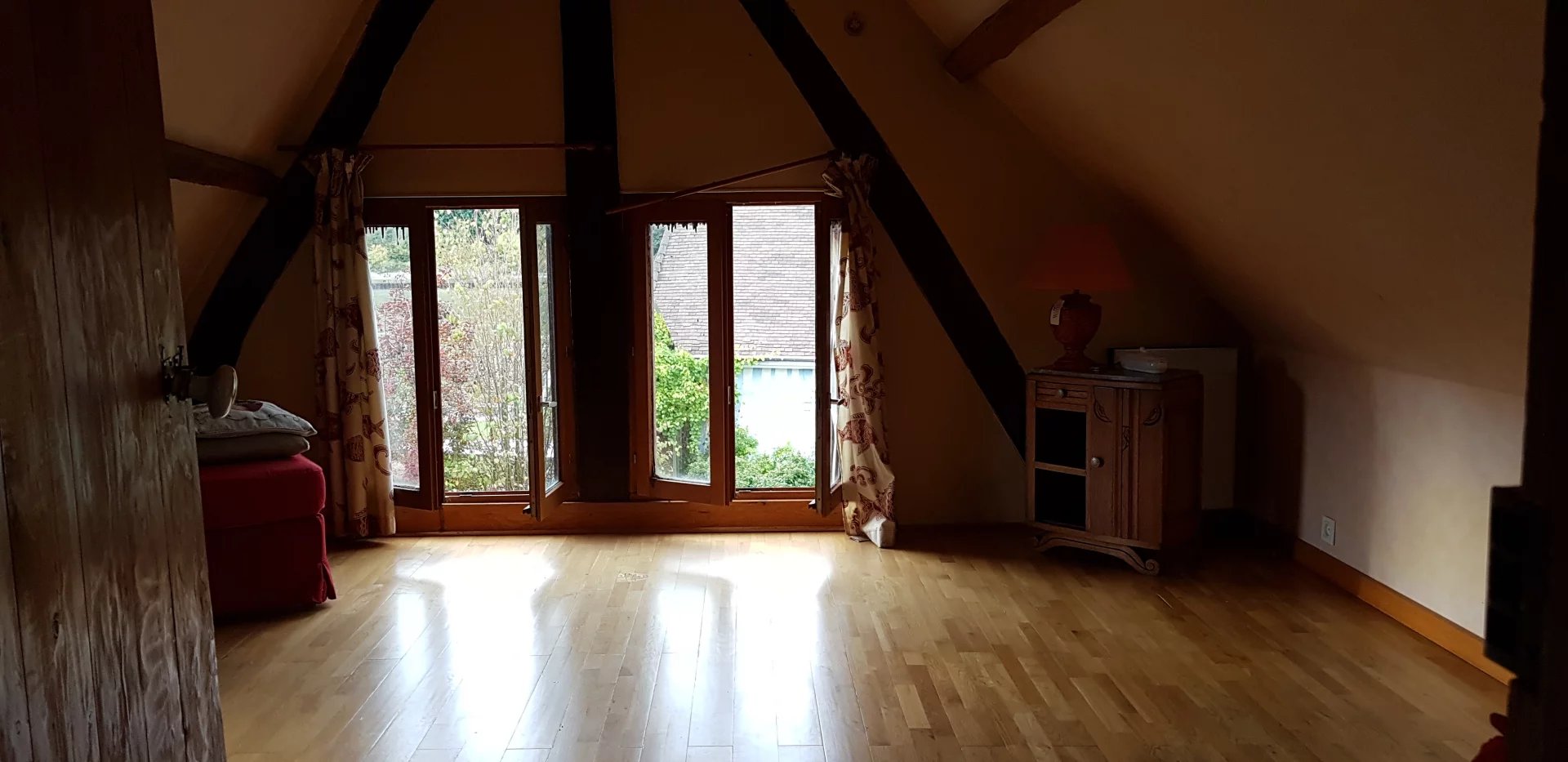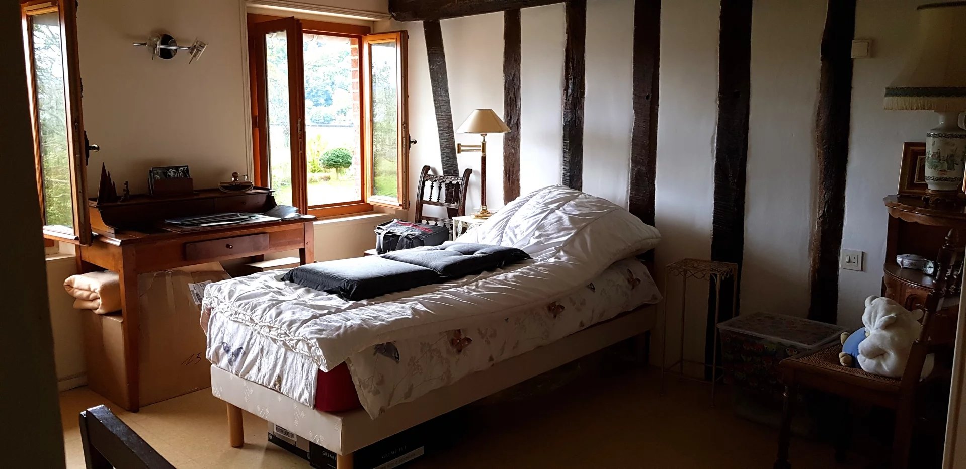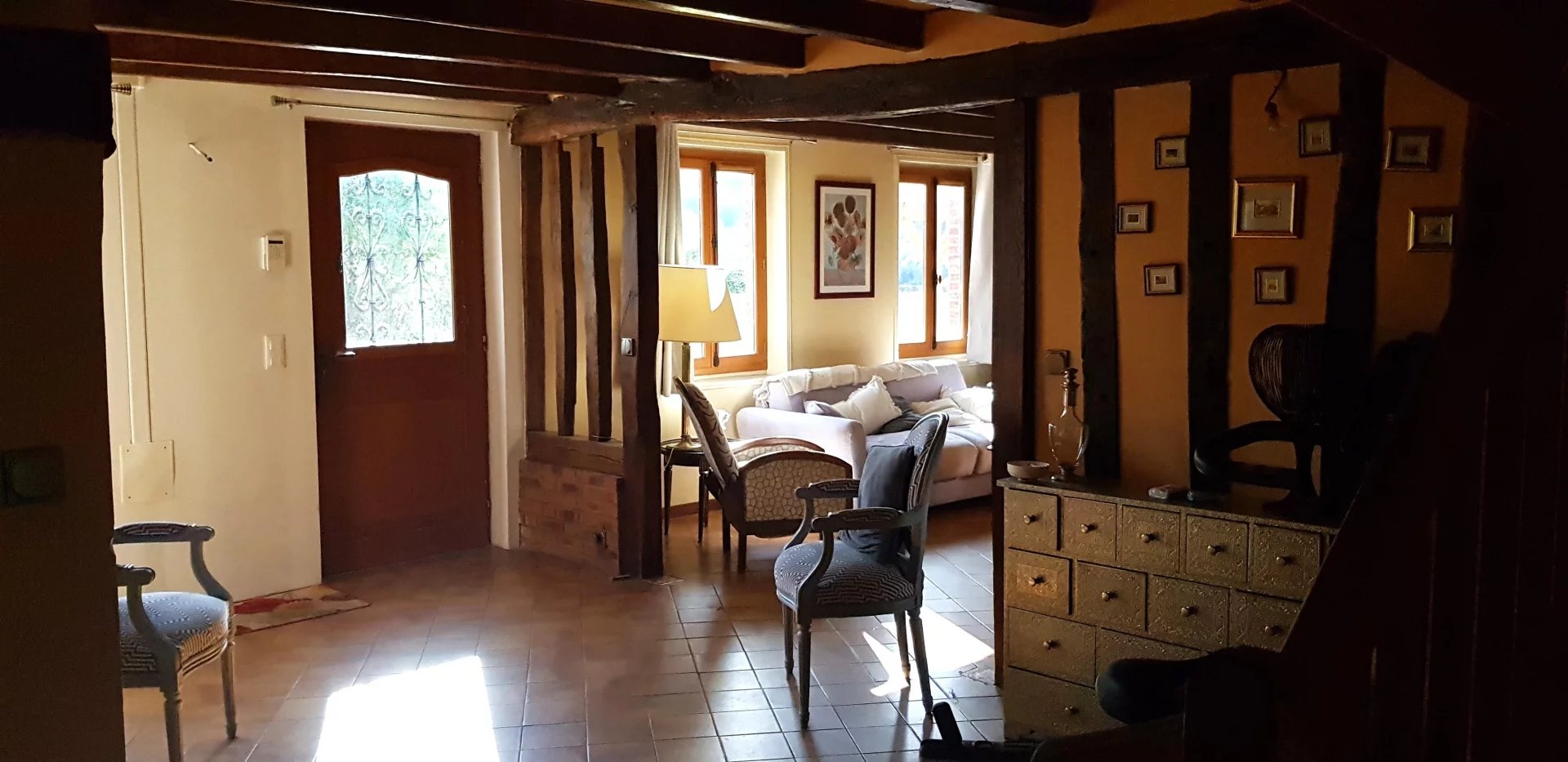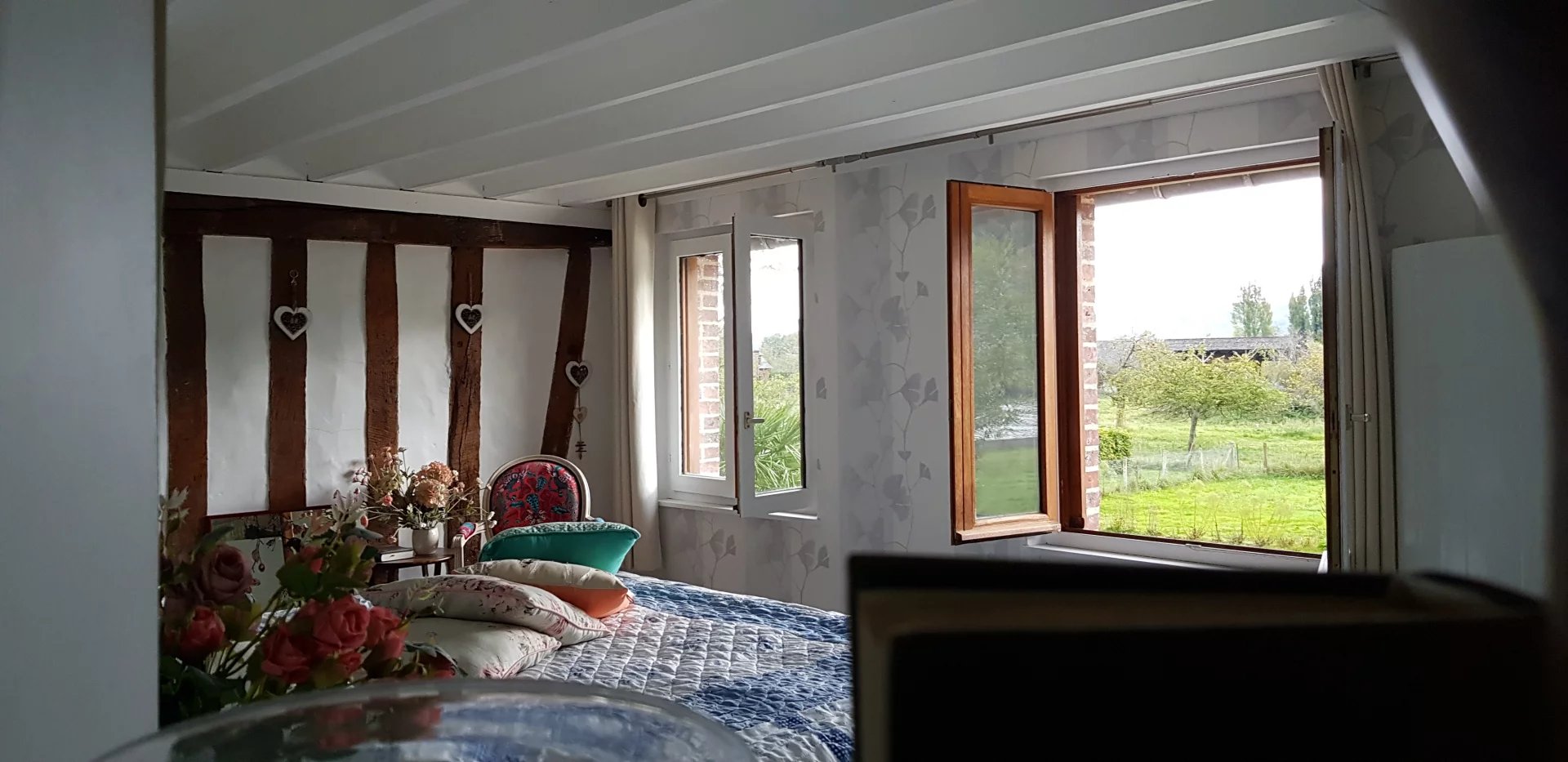A VENDRE - Sur la commune de Jumièges -Dans un cadre exceptionnel avec la sensation d'être en vacances en permanence, vue sur Seine, à 5 minutes des l'écoles et du centre du village, Belle Demeure familiale et authentique de 205 m2 offrant de généreux volumes avec poutres apparentes, en bon état général, comprenant vaste entrée, cuisine équipée et aménagée, séjour salon de 50 m2 avec cheminée, 5 chambres dont 2 plus petites, bureau, mezzanine, salle de bains récente avec baignoire balnéo + salle de douche, chauffage électrique (panneaux solaires), terrasse, garage pour 2 voitures, Deux dépendances dont une récente pouvant accueillir animaux ou servir de rangement. Magnifique terrain arboré et paysagé de 6 000 m². Cadre exceptionnel pour amoureux de l'authenticité et de la nature.