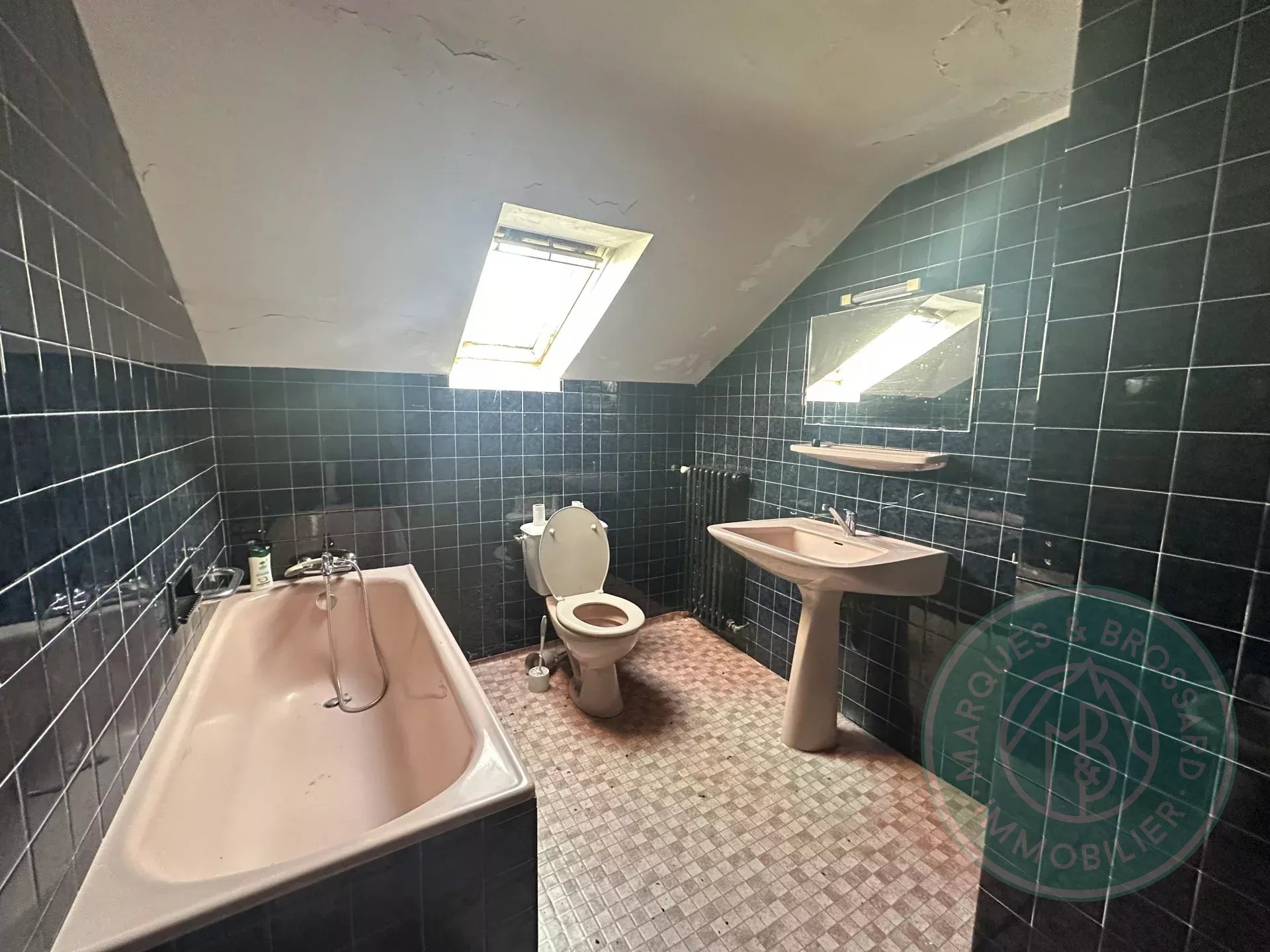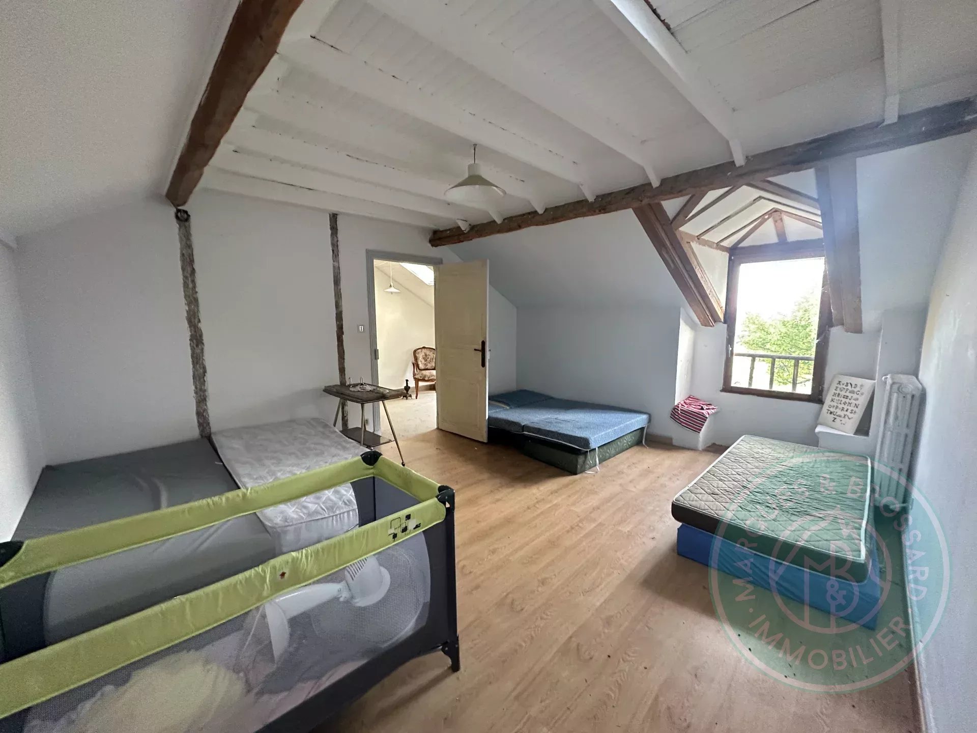 À l’étage se situent quatre chambres, deux salles de bains avec toilettes et un accès aux combles.