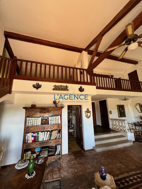 Elle se compose de plain pied d'un grand séjour de 45 m2 donnant sur la grande terrasse de 60m2 avec sa belle vue sur les collines, un coin repas de 23m2, une cuisine séparée, trois chambres avec une salle de bain ; à l'étage un salon TV, trois chambres avec une salle d'eau.