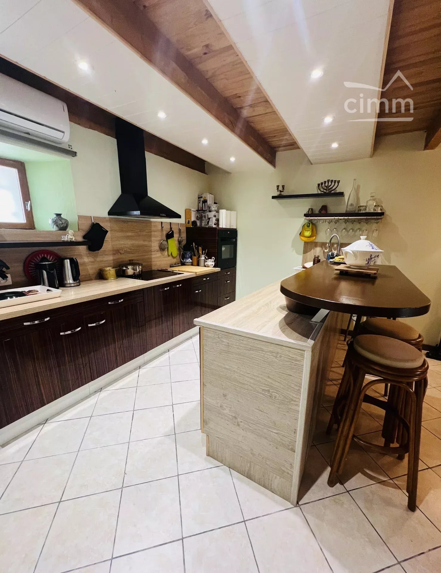 La maison offre un agencement intelligent qui permet une éventuelle cohabitation de part ses deux espaces indépendants reliés par une cuisine toute équipée de 24m2.