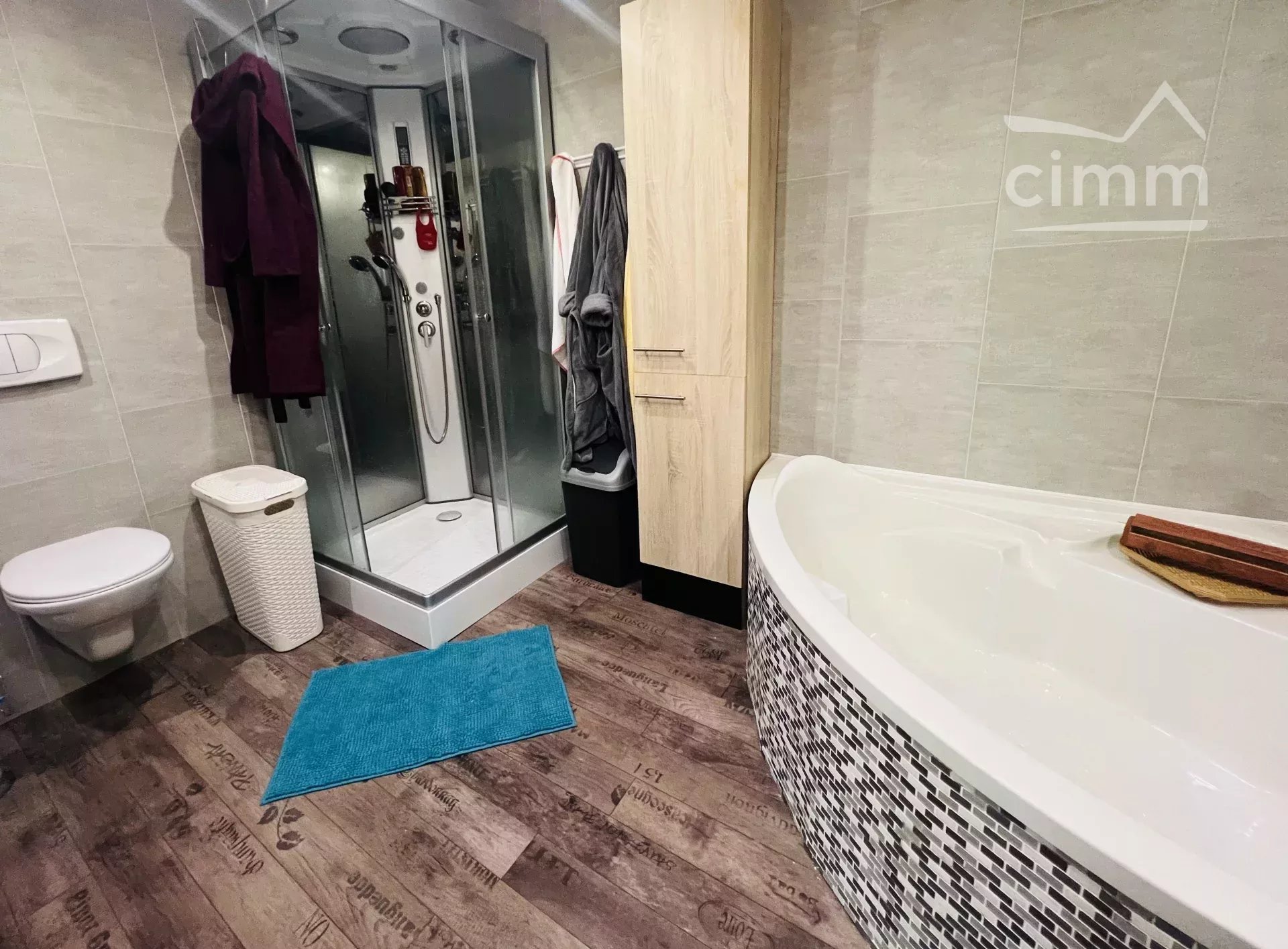 La maison s'ouvre sur un séjour orienté au sud de 20m2 donnant sur la cour et le jardinet. Le séjour est ouvert sur la cuisine. De la cuisine, un escalier vous mènera à la chambre parentale de 19m2 avec sa salle de bain attenante avec douche, baignoire et wc de 8,5m2.