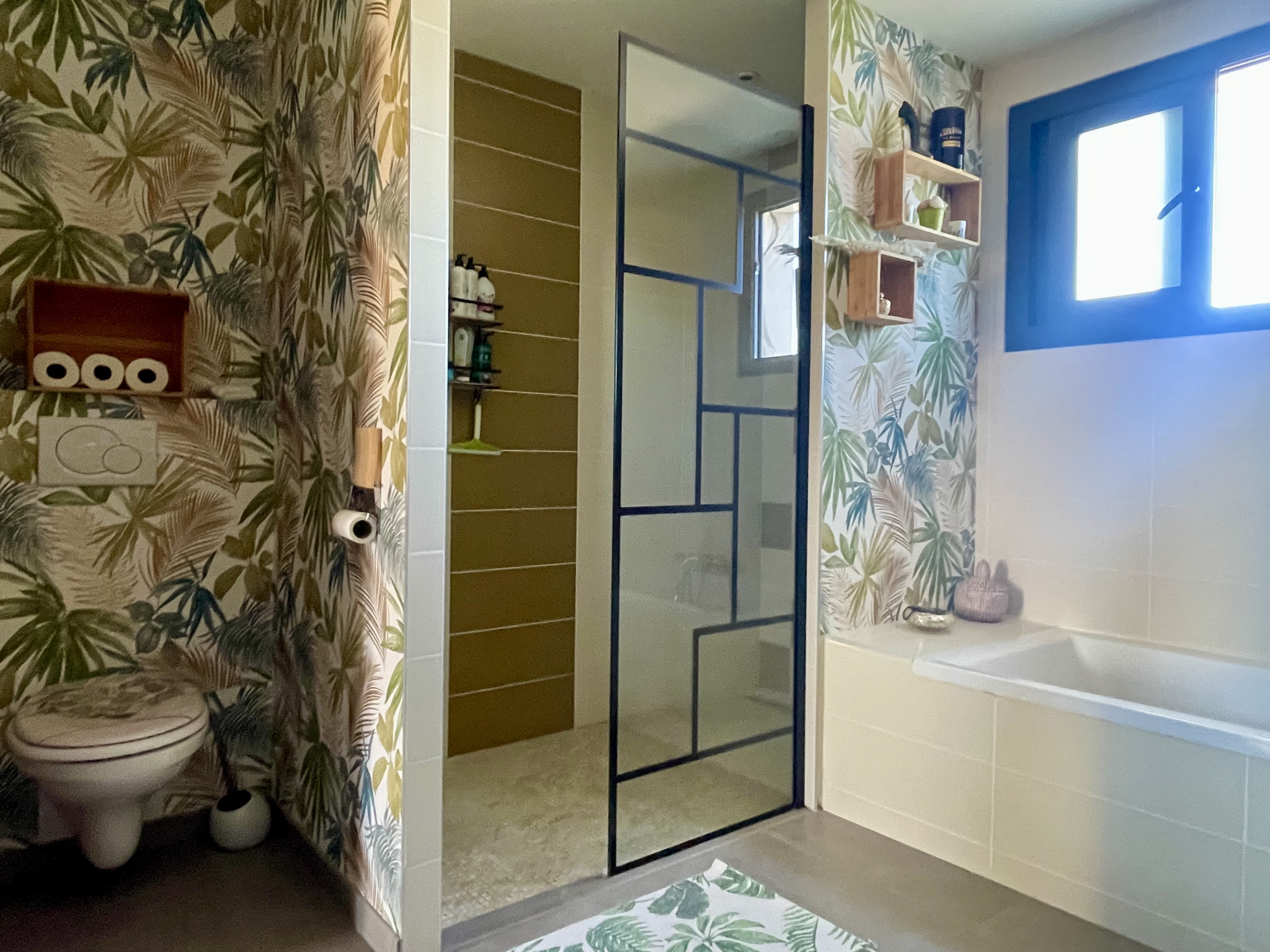 À l'étage, se trouventdeux chambres, unesalle d'eau, unWC séparé, ainsi qu'unesuite parentalecomposée d'une chambre, d'undressing, d'unesalle de bains avec douche à l'italienneet d'uneterrasse privative.