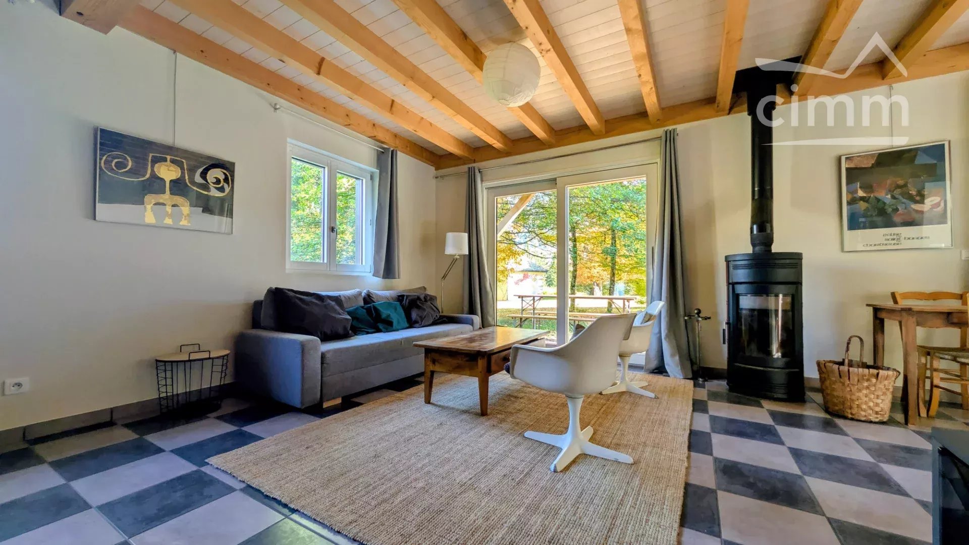 Découvrez ce magnifique chalet en ossature bois de 90 m² habitable plus garage de 21 m² (surface totale plancher de 125,11 m²) sur un terrain plat et arboré de 1325 m², situé dans l'un des secteurs les plus recherchés de la commune, offrant un calme et un environnement sans pareil.