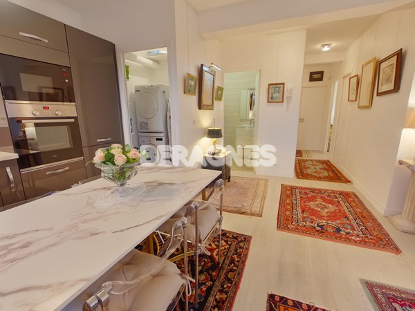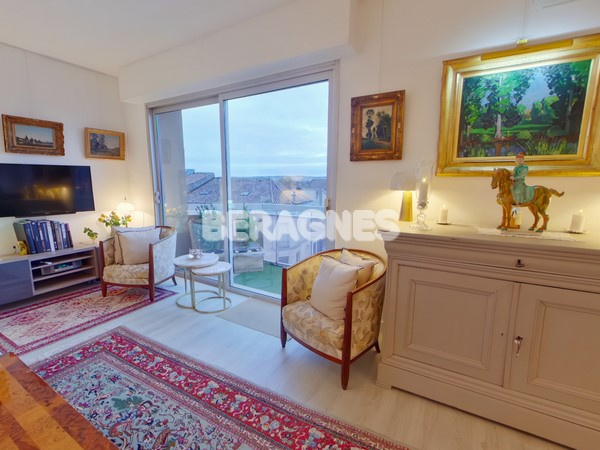 Hyper Centre ville de Bergerac, cet Appartement T3 très confortable, lumineux, au dernier étage avec une très belle vue panoramique est situé dans une résidence de standing avec ascenseur. Venez découvrir : une belle entrée, 2 chambres de taille confortable, un dégagement avec dressing aménagé et porte coulissante-miroir, un séjour ouvert sur cuisine équipée et aménagée (lave vaisselle - Frigo/congélateur- Micro onde et four encastré - Plaque de cuisson vitrocéramique à induction - Hôte aspirante design), une salle d'eau avec douche italienne et wc, un wc japonais indépendant, un cellier avec - Sèche linge et Lave linge. Les plus : volets électriques motorisés dans toutes les pièces, fenêtres double vitrage Alu et PVC, grandes baies vitrées, chauffage électrique par radiateurs à fluide caloporteur et une climatisation réversible (chaud/froid) dans le salon, variateur de lumière, sol parquet flottant de belle qualité. Grand emplacement de stationnement en souterrain. Balcon avec store banne. Cave. Appartement relié à la fibre. Interphone. Cumulus récent. Entrée de l'immeuble sécurisé avec Vigik par badge. UNIQUE : très belle vue sur la ville, les toits et la nature. Une visite et le charme est au rendez-vous. Mon coup de coeur. Colette RIVALS BERAGNES IMMOBILIER BERGERAC 06 860 860 98.