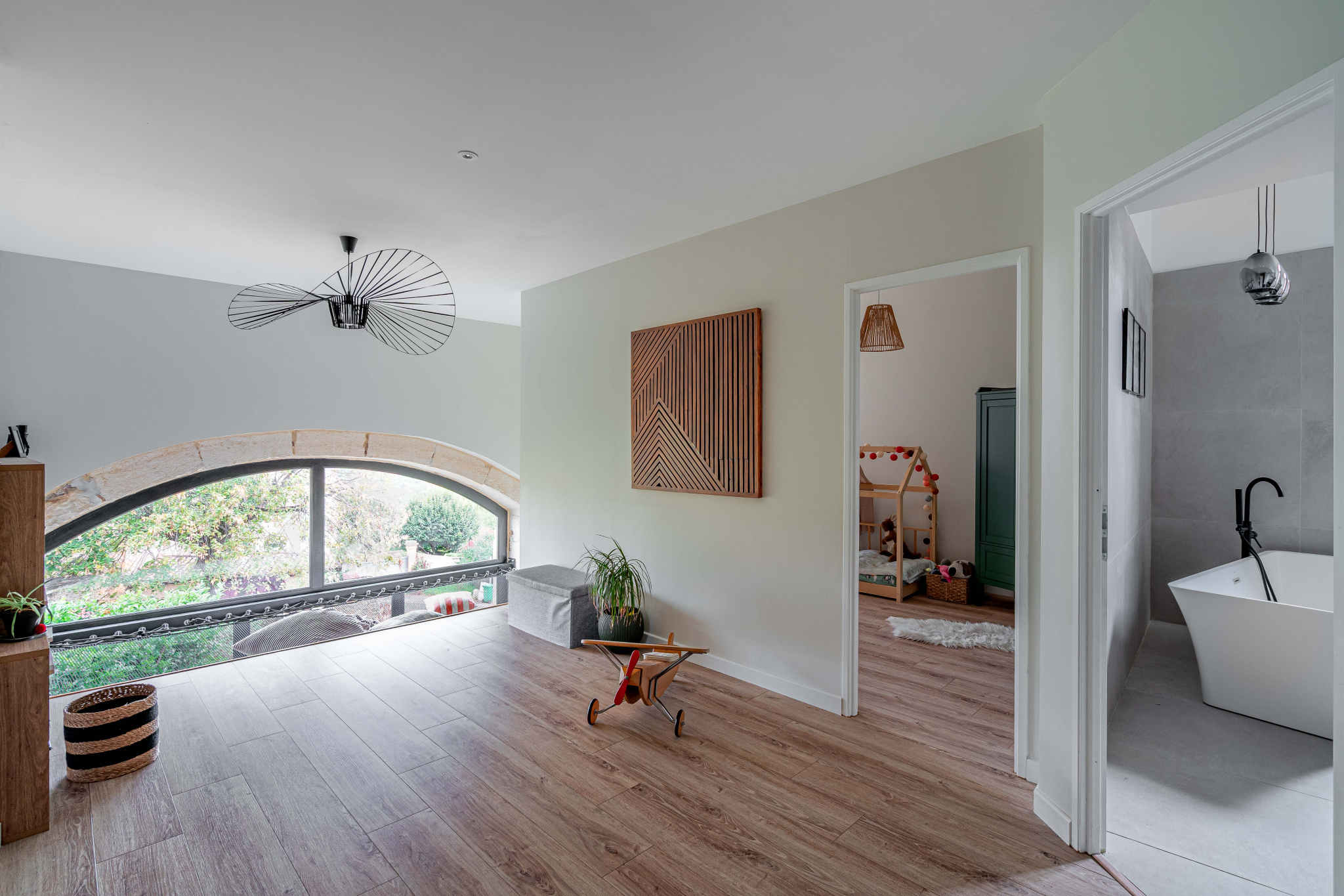 Cette maison se distingue par ses beaux volumes et ses prestations de qualités. ( chauffage au sol,