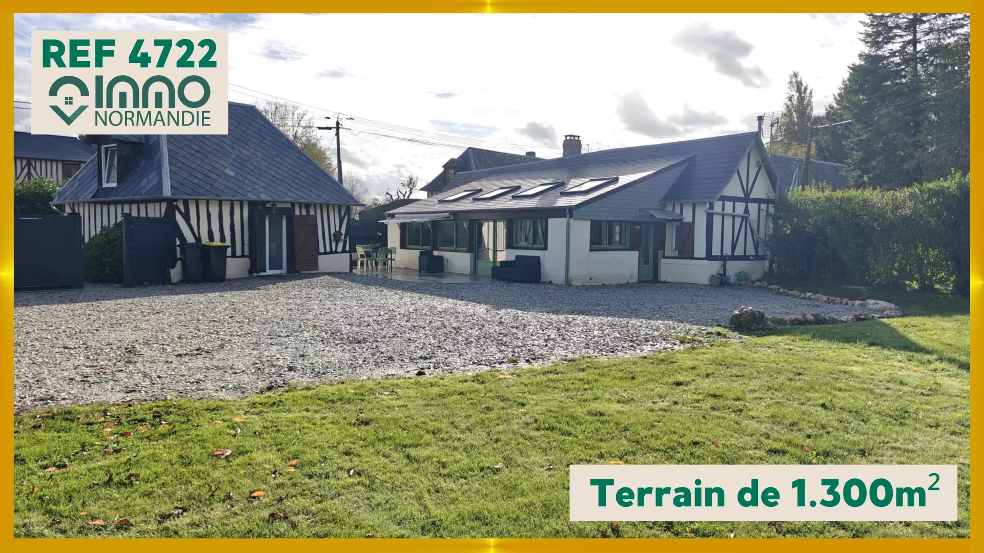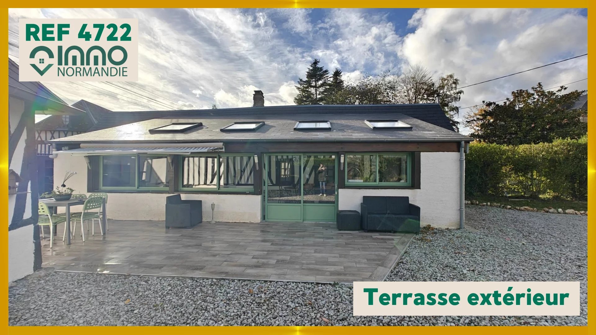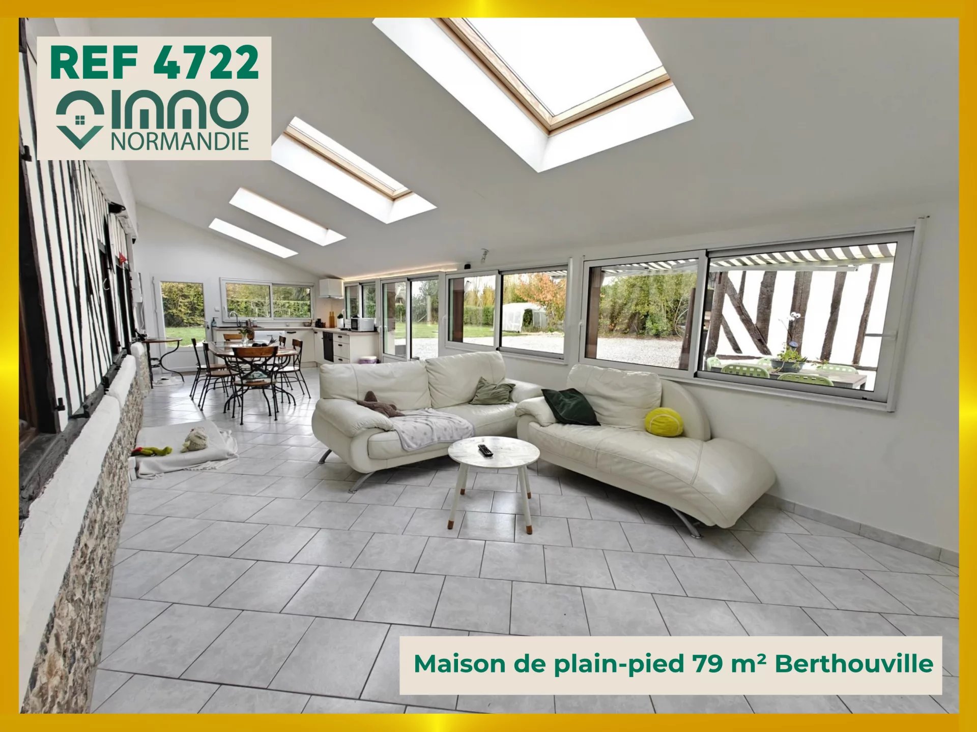Maison normande de plain-pied à Berthouville. Bourg à moins de 10min de Brionne, 15min de Bernay. Découvrez une entrée sur une vaste pièce de vie d'environ 40m² avec cuisine ouverte aménagée et équipée. 2 chambres, un bureau/chambre d'enfant, une salle de douche, WC et buanderie. Dépendance à usage de garage avec eau & électricité. PVC double vitrage, chauffage électrique, fosse toutes eaux. Terrain de 1.300m².