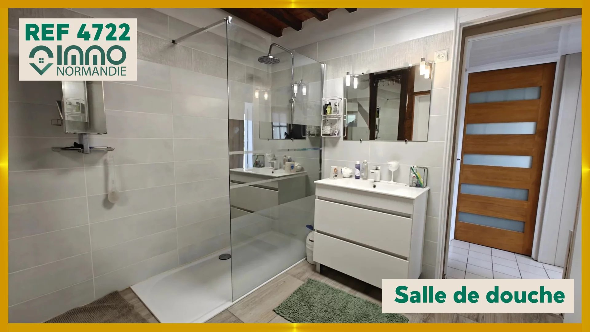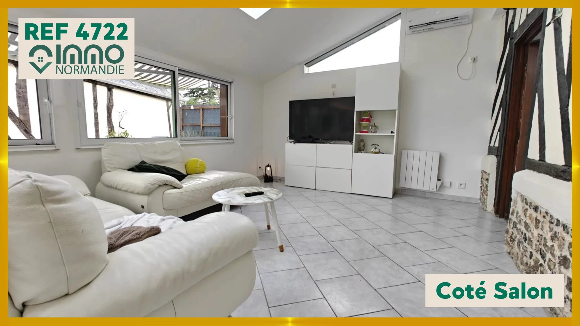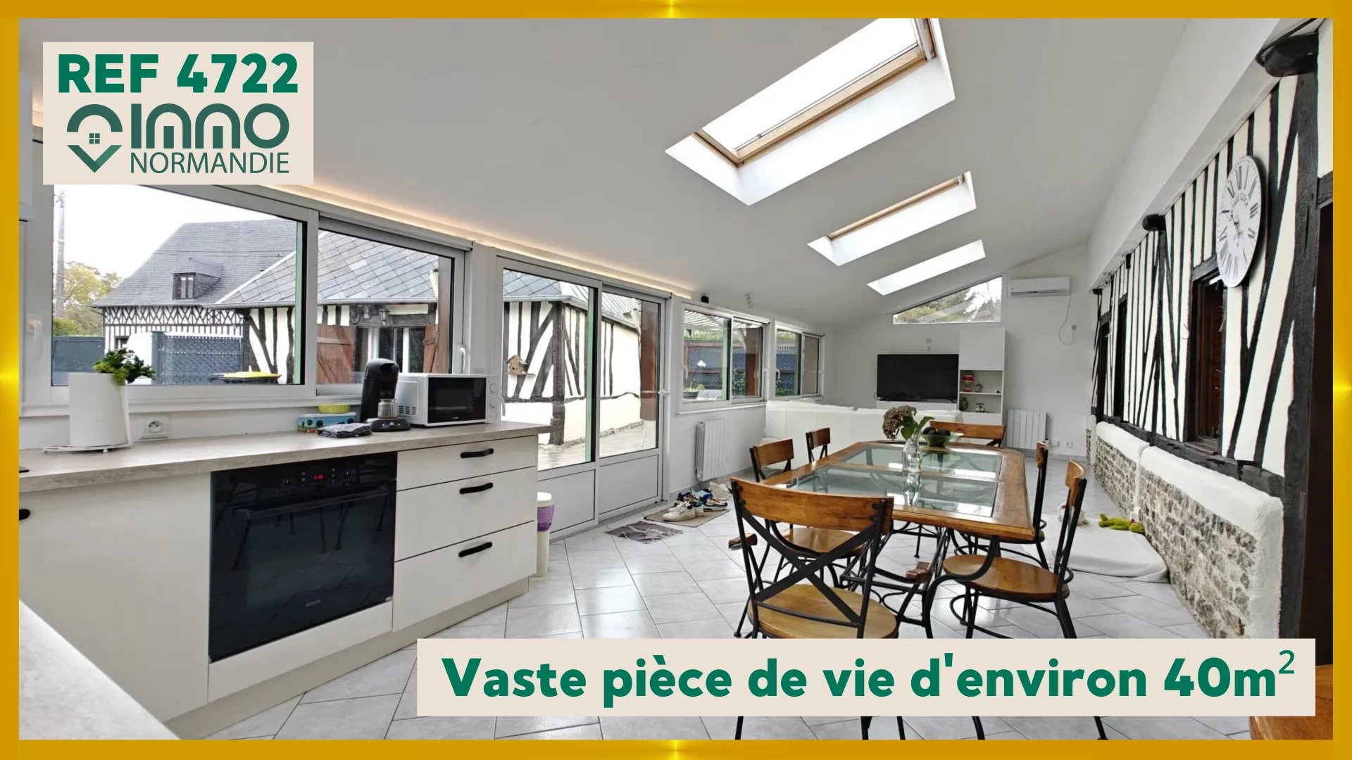 Maison normande de plain-pied à Berthouville. Bourg à moins de 10min de Brionne, 15min de Bernay. Découvrez une entrée sur une vaste pièce de vie d'environ 40m² avec cuisine ouverte aménagée et équipée. 2 chambres, un bureau/chambre d'enfant, une salle de douche, WC et buanderie. Dépendance à usage de garage avec eau & électricité. PVC double vitrage, chauffage électrique, fosse toutes eaux. Terrain de 1.300m².