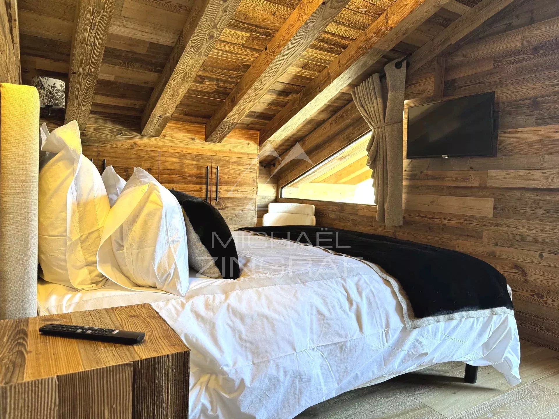 Michaël Zingraf Real Estate Megève vous propose ce somptueux chalet de 290 m2, rénové avec des matériaux de qualité, dans un esprit d'authenticité et de confort. Situé dans un quartier calme, avec vue dégagé, mais à proximité immédiate de Megève, ce bien associe avantageusement les codes du chalet en bois et le design, en offrant une spacieuse pièce de vie, composée d'un salon-salle à manger avec cheminée, et cuisine ouverte équipée, s'ouvrant sur une belle terrasse et un jacuzzi extérieur. Il offre sur trois niveaux cinq chambres, dont un dortoir enfants, avec chacune salle de bains ou salle d'eau privative pour accueillir famille et amis.