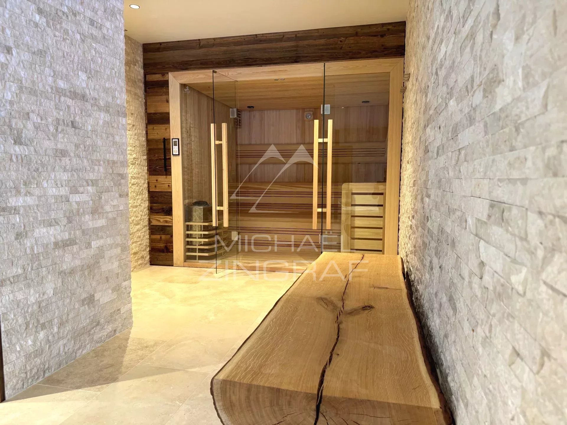Agréable à vivre en été avec son vaste jardin de plus de 1 000 m2, tout comme en hiver avec sa piscine intérieure, son hammam et son sauna. En annexes : ski-room, buanderie et mazot dans le jardin.
