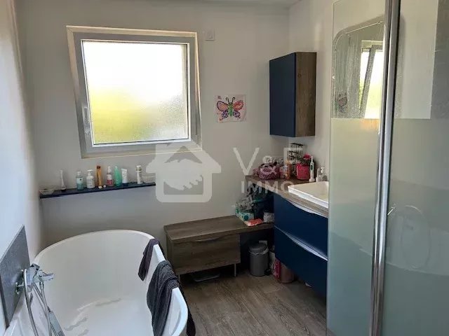 Cette maison moderne combine volumes, pour une vie confortable au quotidien. Maison élevée sur deux niveaux, implantée sur un terrain d’environ 950 m², à proximité de la gare et des écoles.
