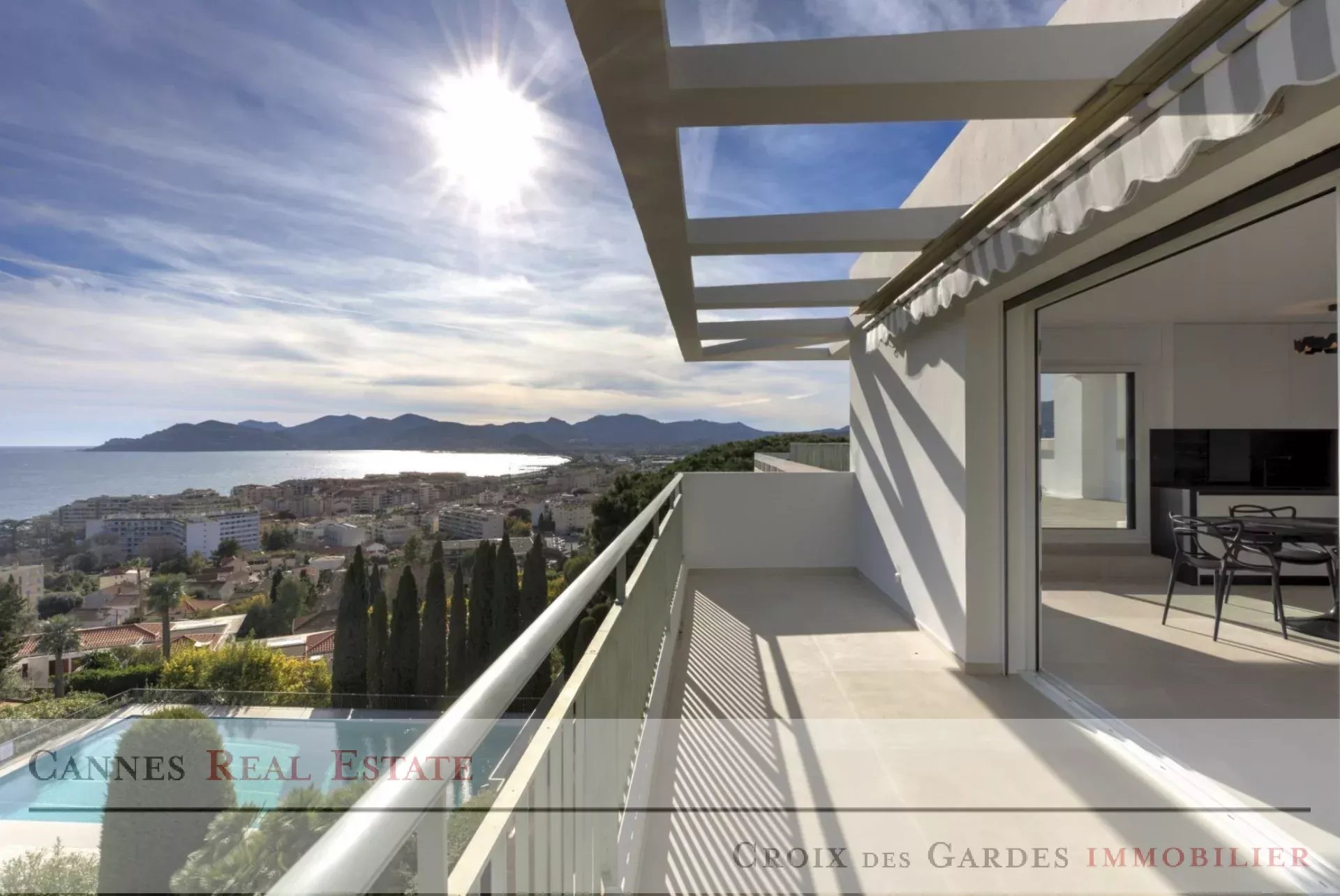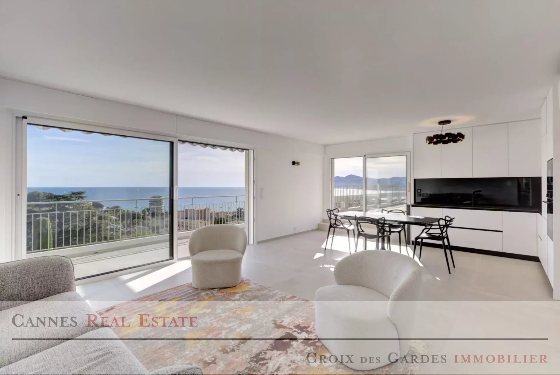 Découvrez chez Croix des Gardes Immobilier et ce magnifique appartement 3 pièces niché au cœur du prestigieux quartier résidentiel de La Croix des Gardes à Cannes, dans une résidence de standing avec piscine, tennis et parc paysager. Situé en dernier étage, cet appartement entièrement rénové avec des matériaux de qualité séduit par son style contemporain, sa luminosité et surtout sa vue mer panoramique exceptionnelle s’étendant jusqu’à l’Estérel. L’espace de vie se compose d’une entrée accueillante, d’un vaste séjour avec cuisine ouverte moderne entièrement aménagée et équipée, ouvrant sur une spacieuse terrasse offrant une vue dégagée sur la Méditerranée. Côté nuit, vous profiterez de deux chambres en suite, chacune avec salle d’eau privative, d’une buanderie et d’un toilette indépendant. Une cave et un garage fermé complètent ce bien d’exception. Idéal pour les amateurs de calme, de nature et de vues spectaculaires, cet appartement combine confort, modernité et élégance dans un environnement recherché, à seulement quelques minutes du centre-ville de Cannes et des plages. ⸻ 🏡 Les atouts de ce bien : • Dernier étage avec vue mer panoramique • Résidence sécurisée avec piscine, tennis et parc • Rénovation haut de gamme et finitions modernes • Grande terrasse exposée Sud • Cave et garage inclus • Proximité du centre de Cannes, de la Croisette et des plages