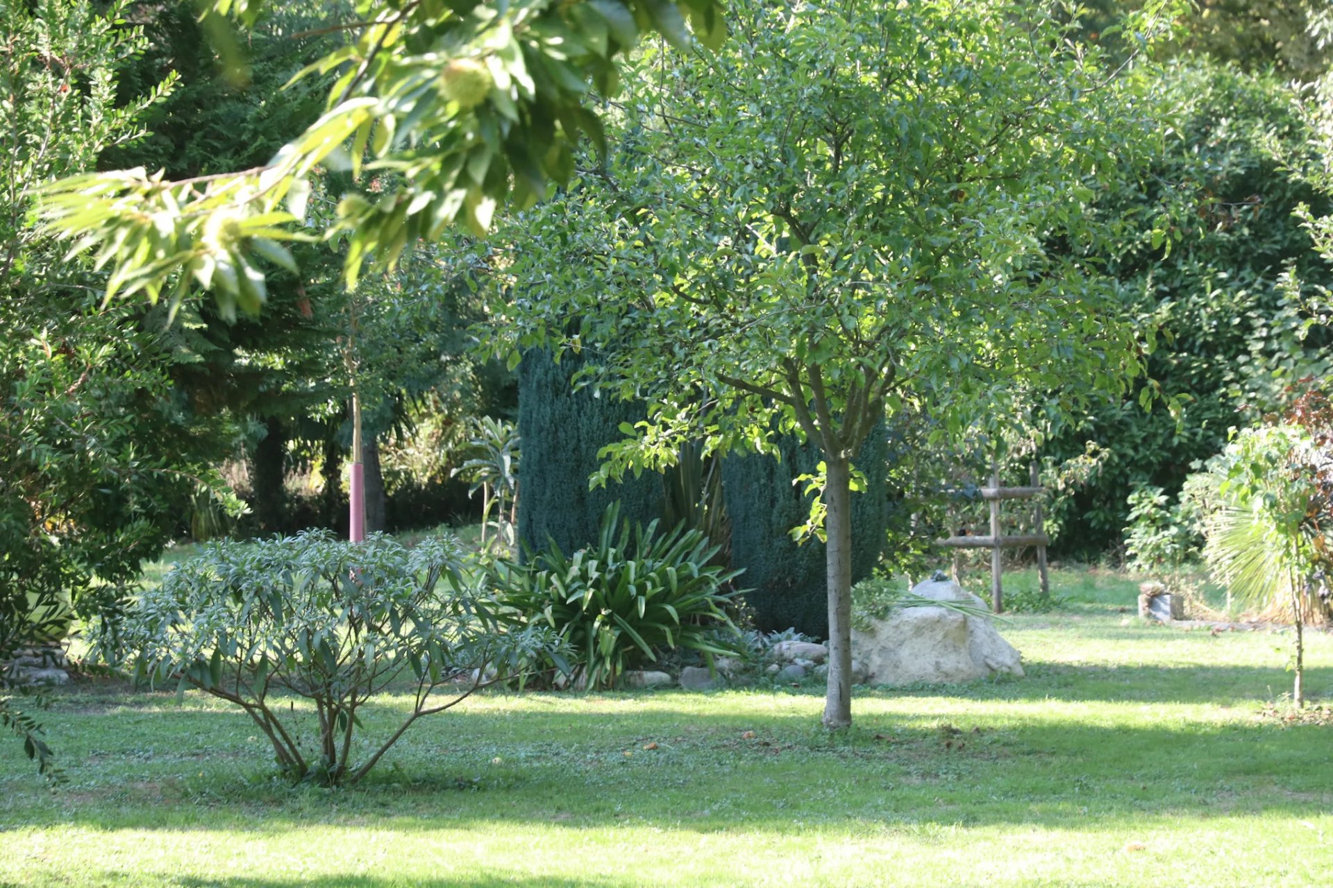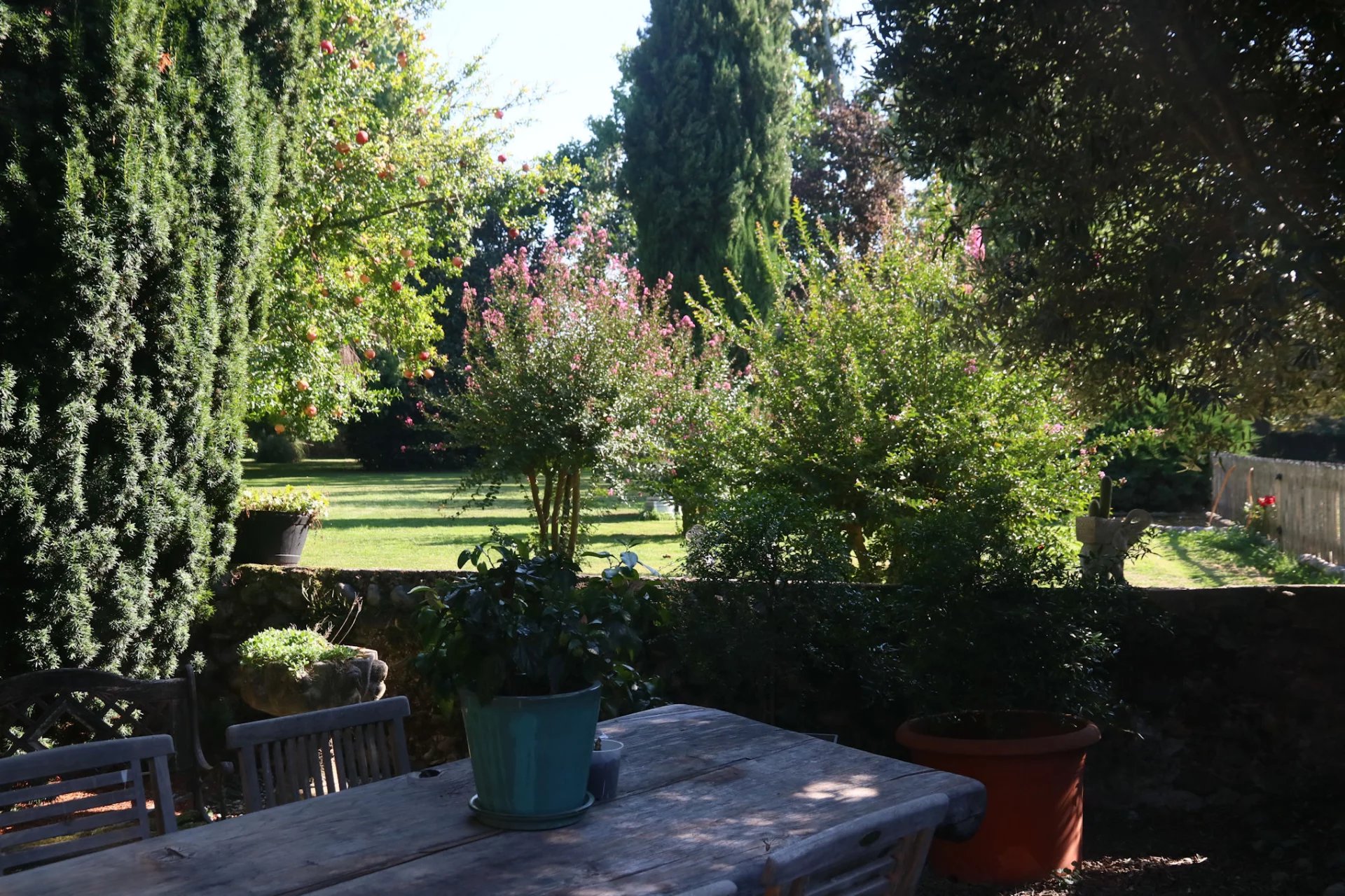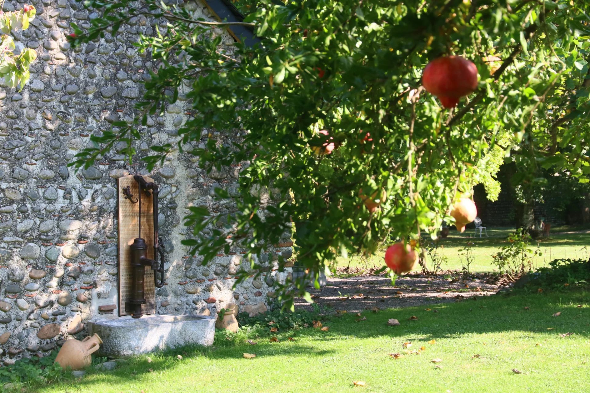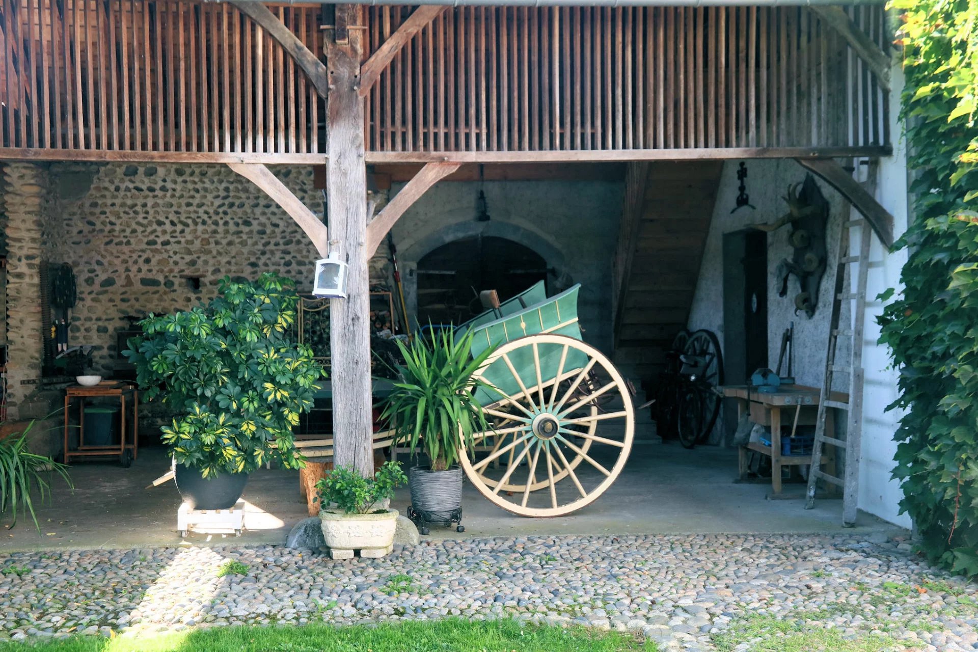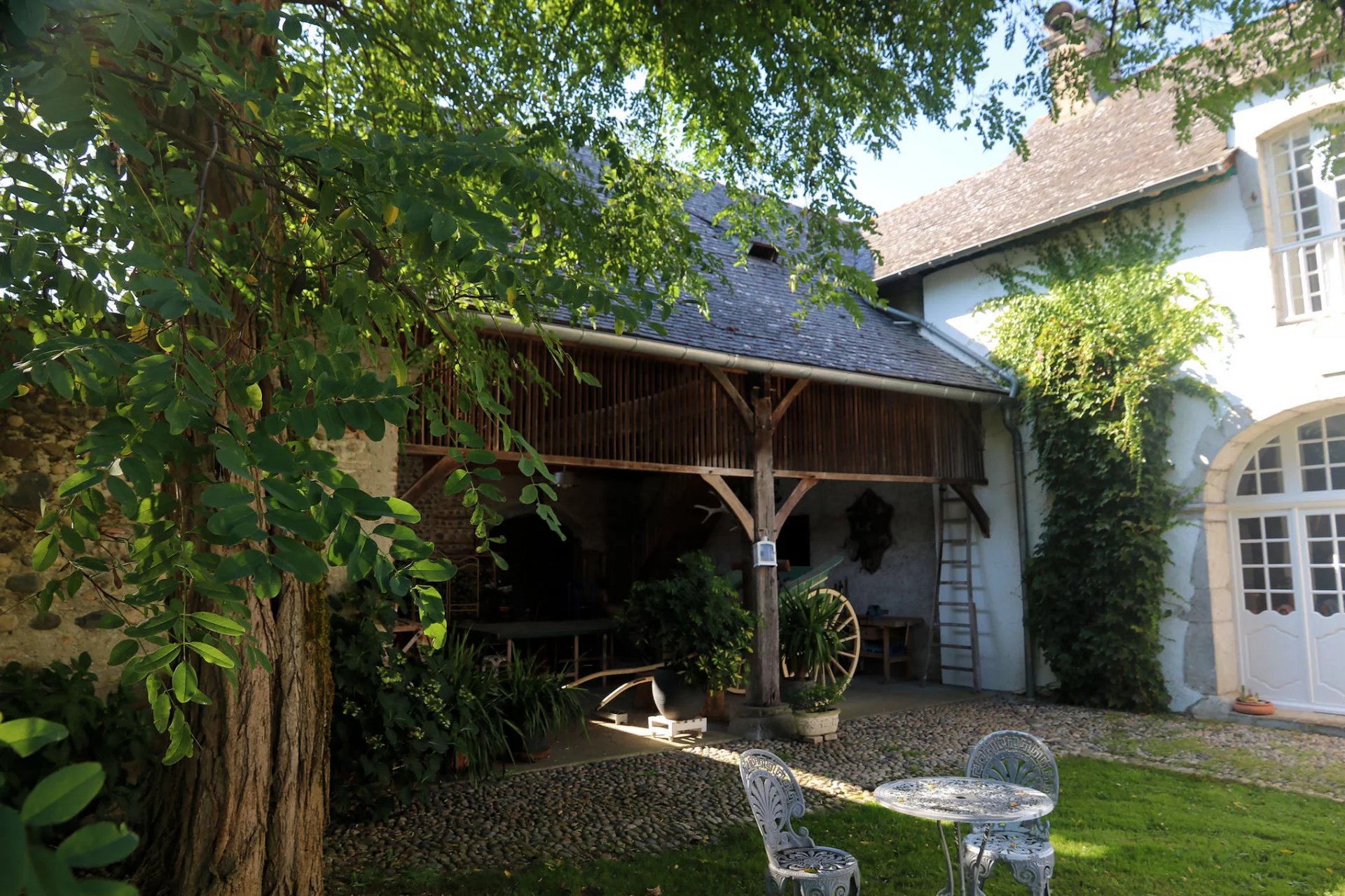 • Une grange partiellement aménagée en salle à manger et cuisine d’été, ouverte sur les jardins paysagers parfaitement entretenus.