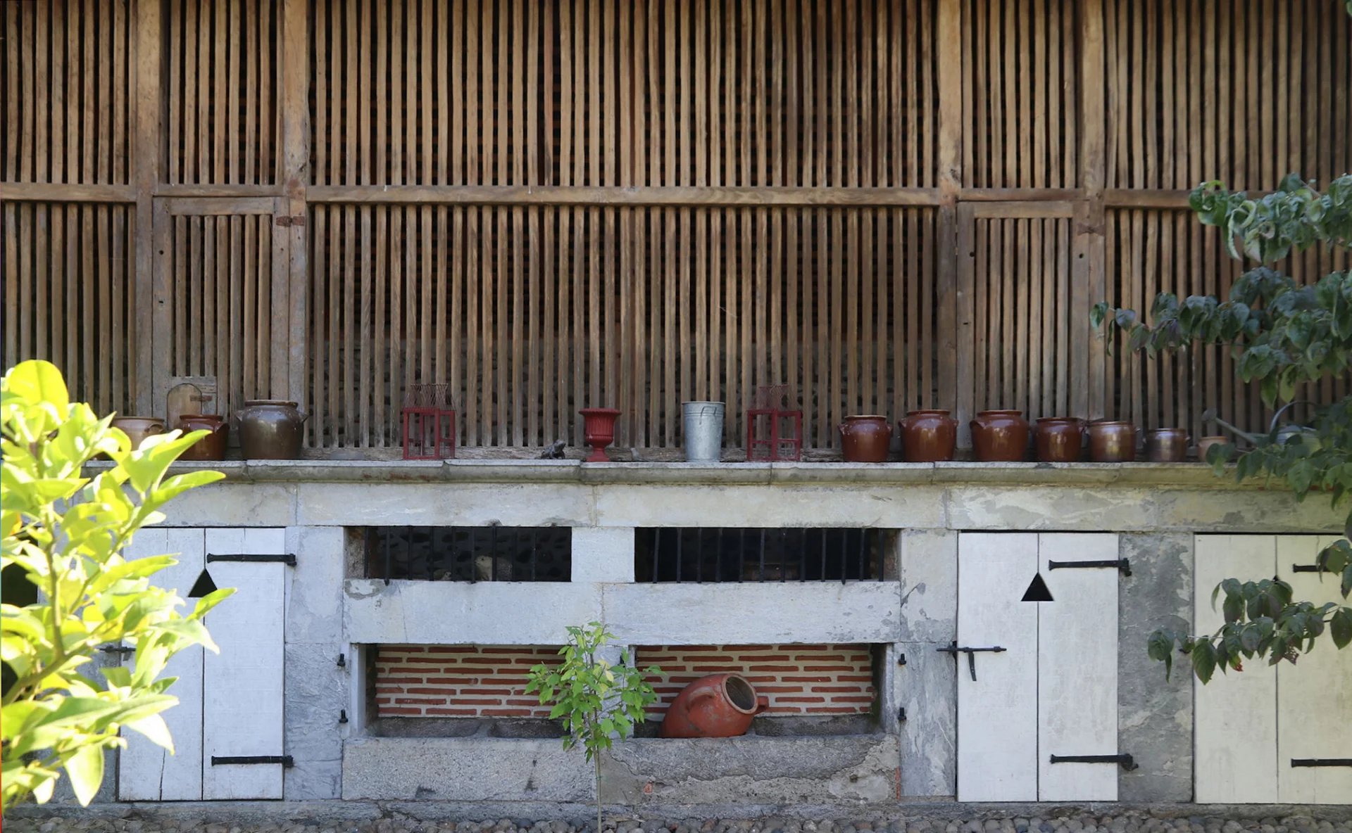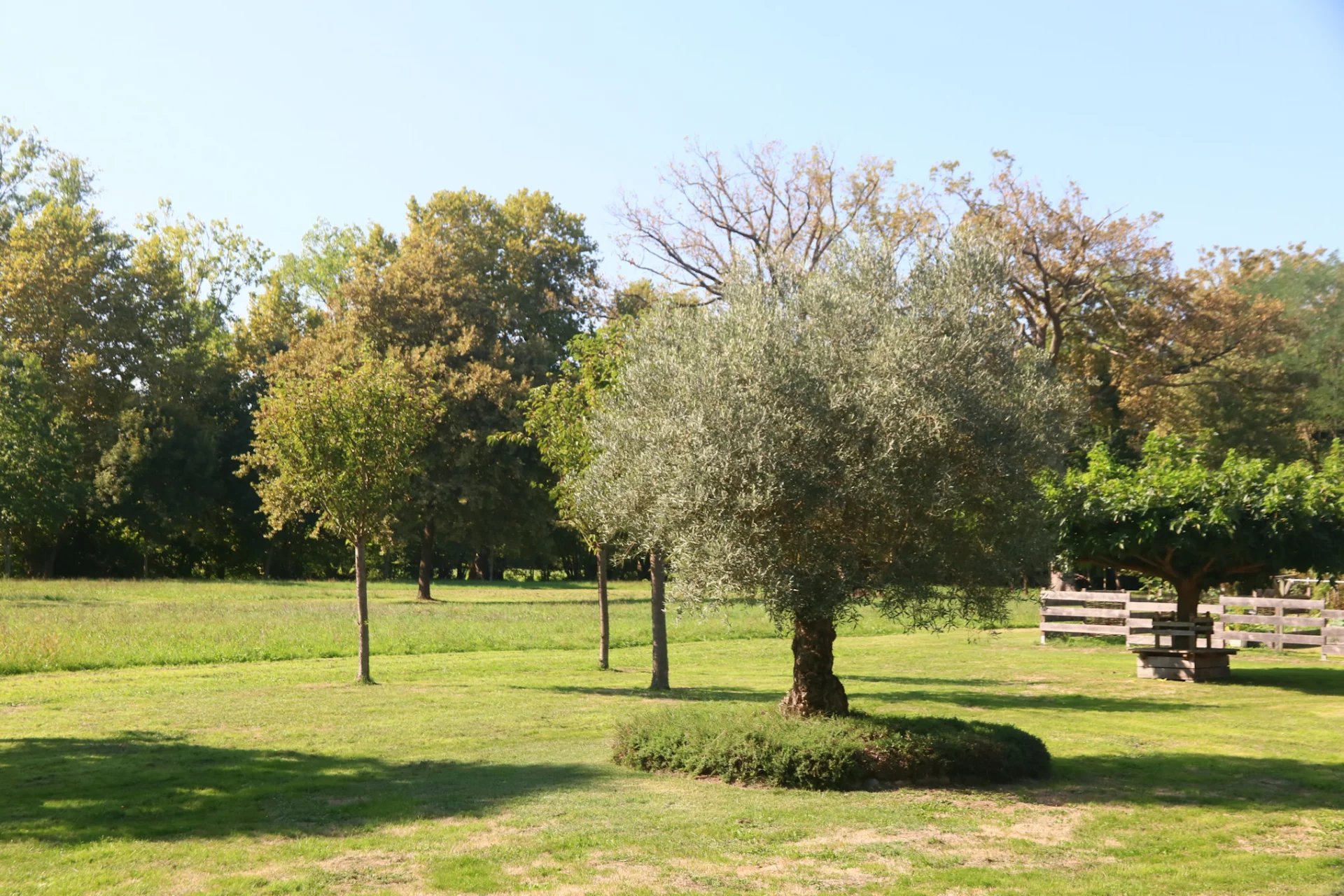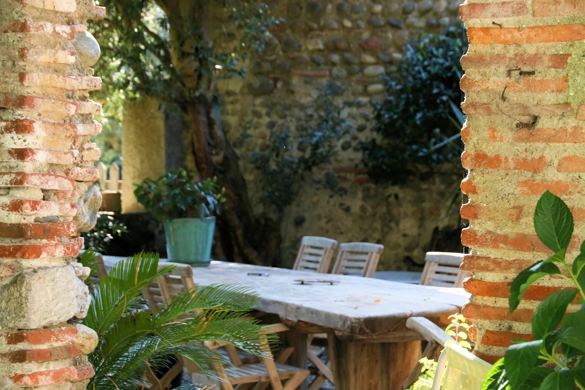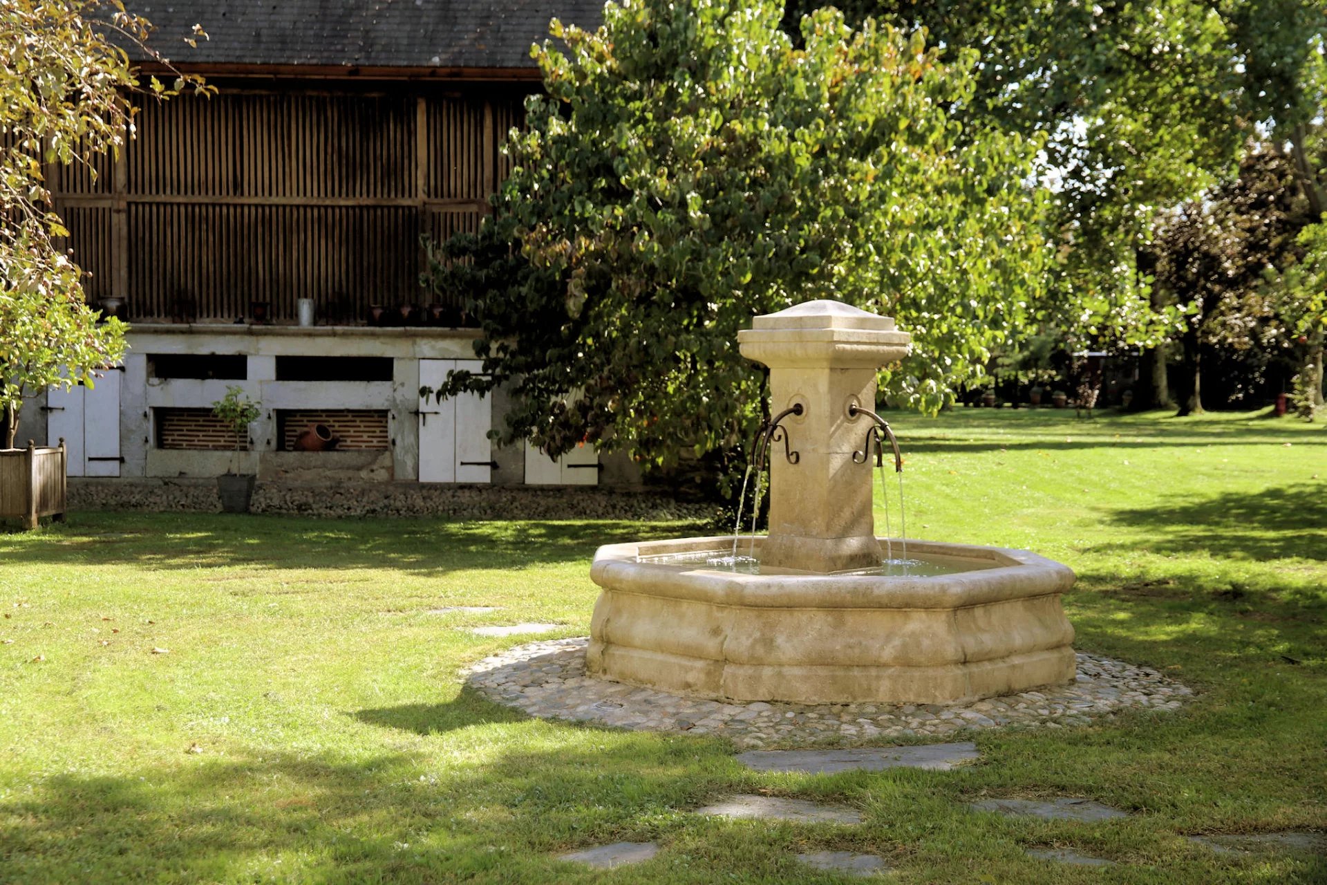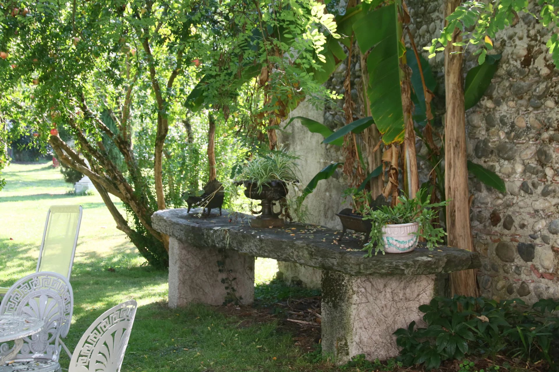 • Une grange partiellement aménagée en salle à manger et cuisine d’été, ouverte sur les jardins paysagers parfaitement entretenus.