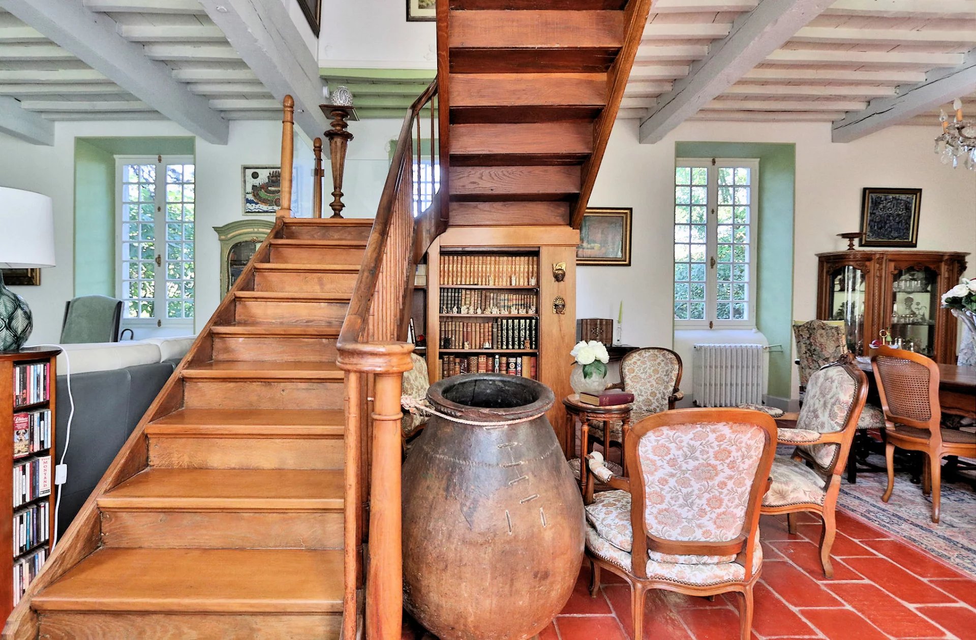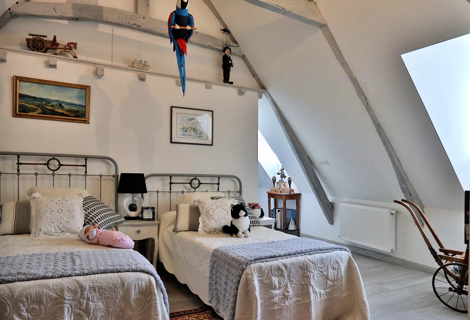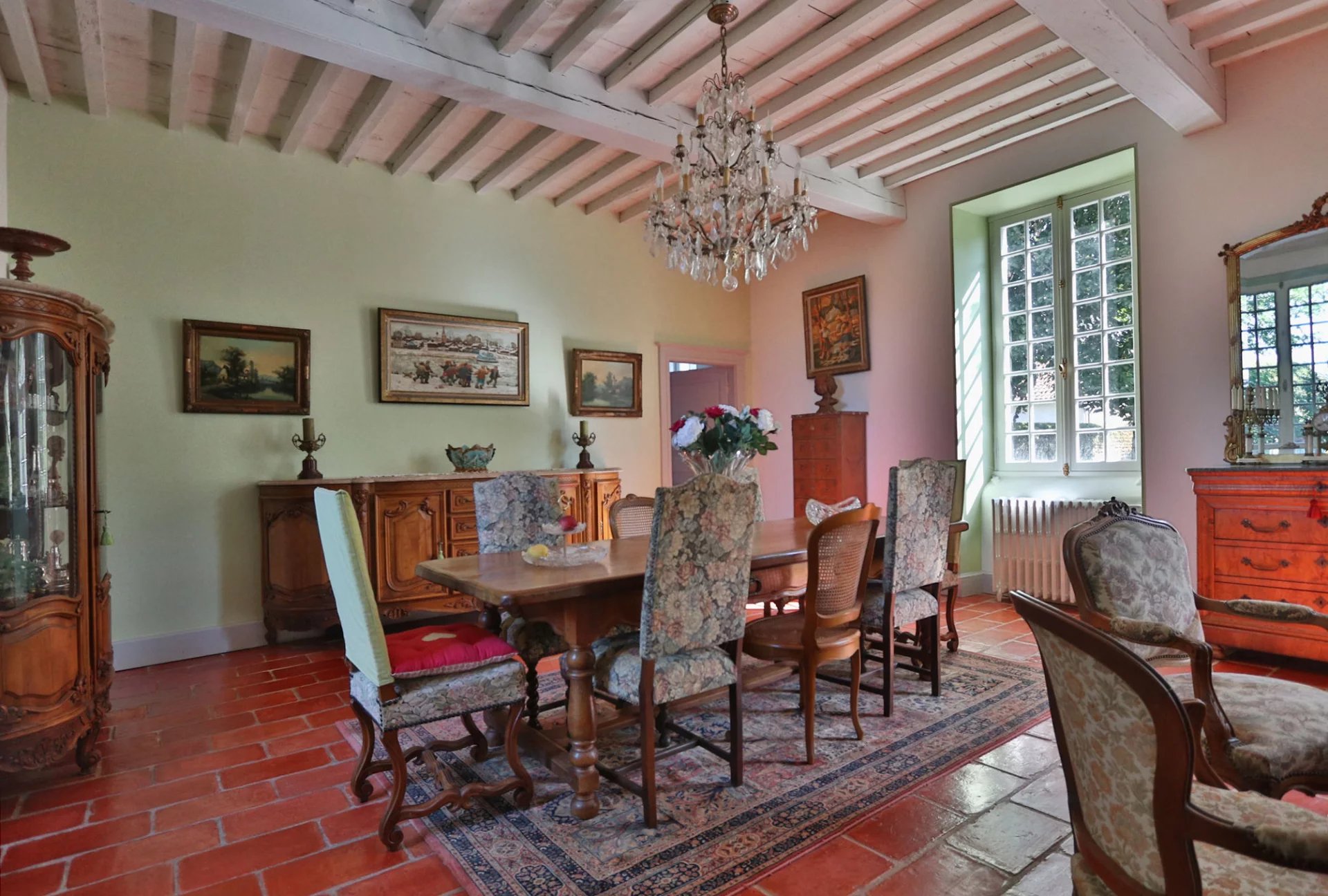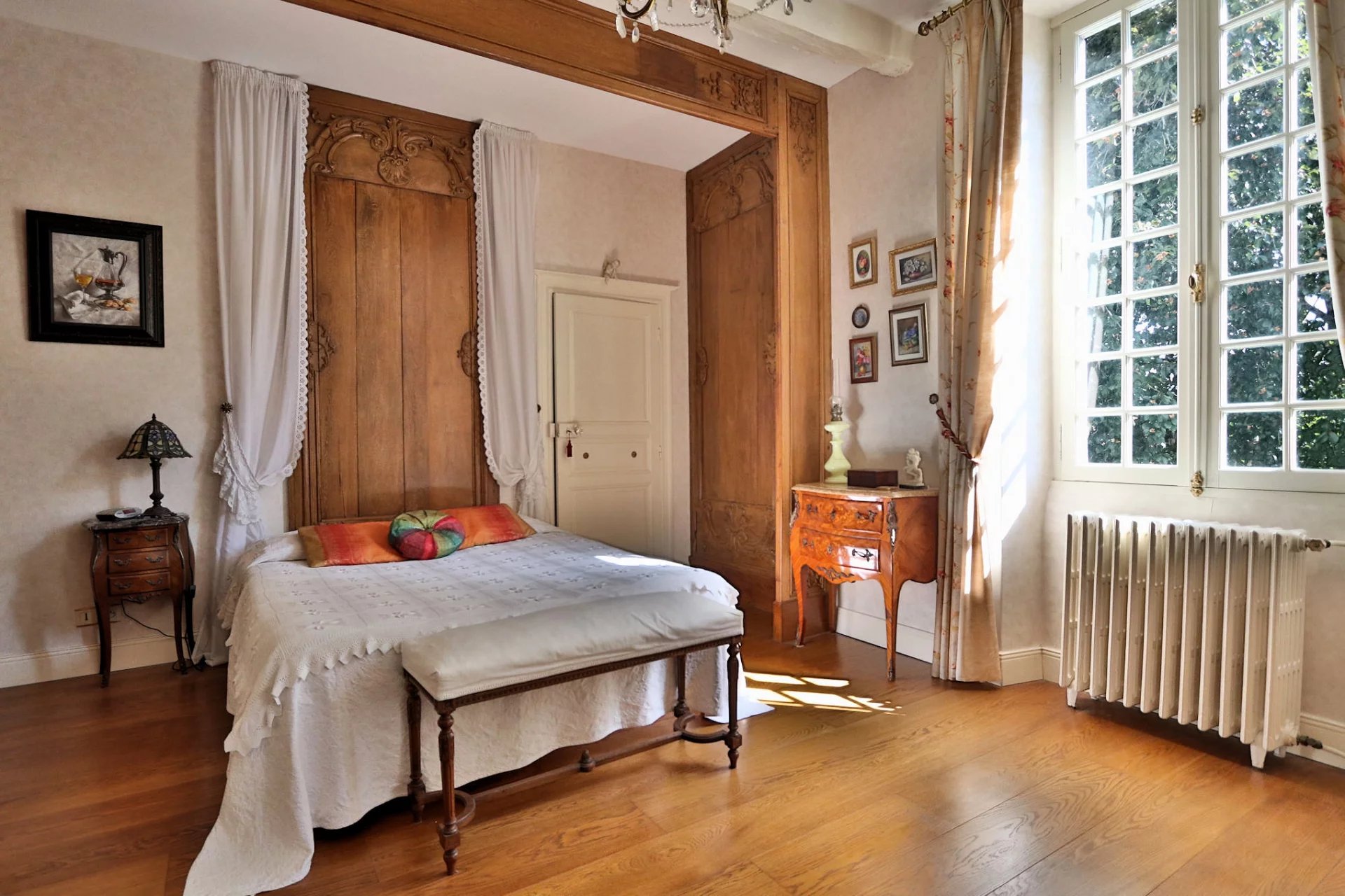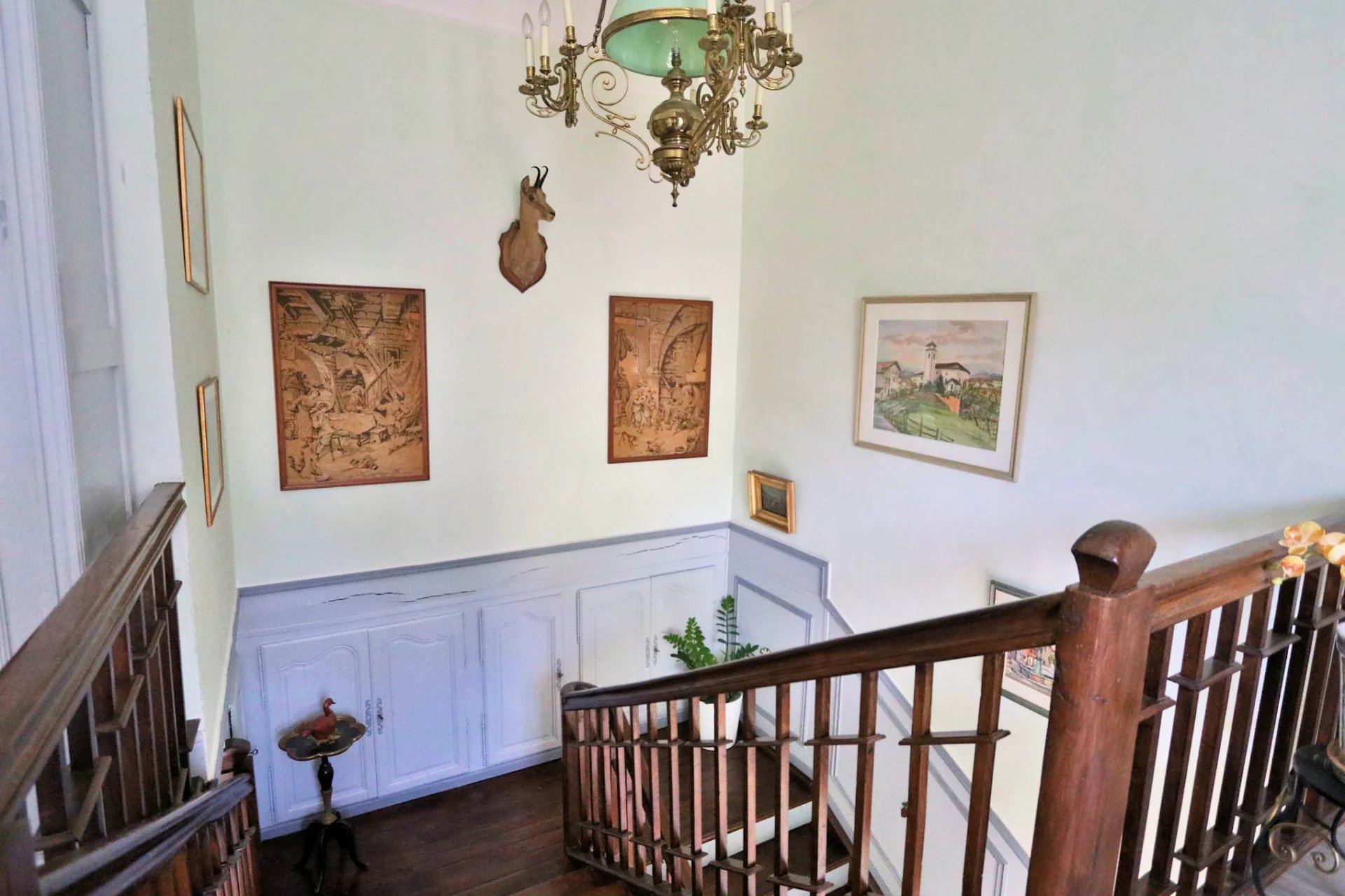 Développant plus de 400 m² habitables, la propriété offre cinq chambres spacieuses, réparties sur deux niveaux. Exposée plein sud, elle bénéficie d’une luminosité exceptionnelle et d’une vue dégagée sur le jardin et la campagne environnante.