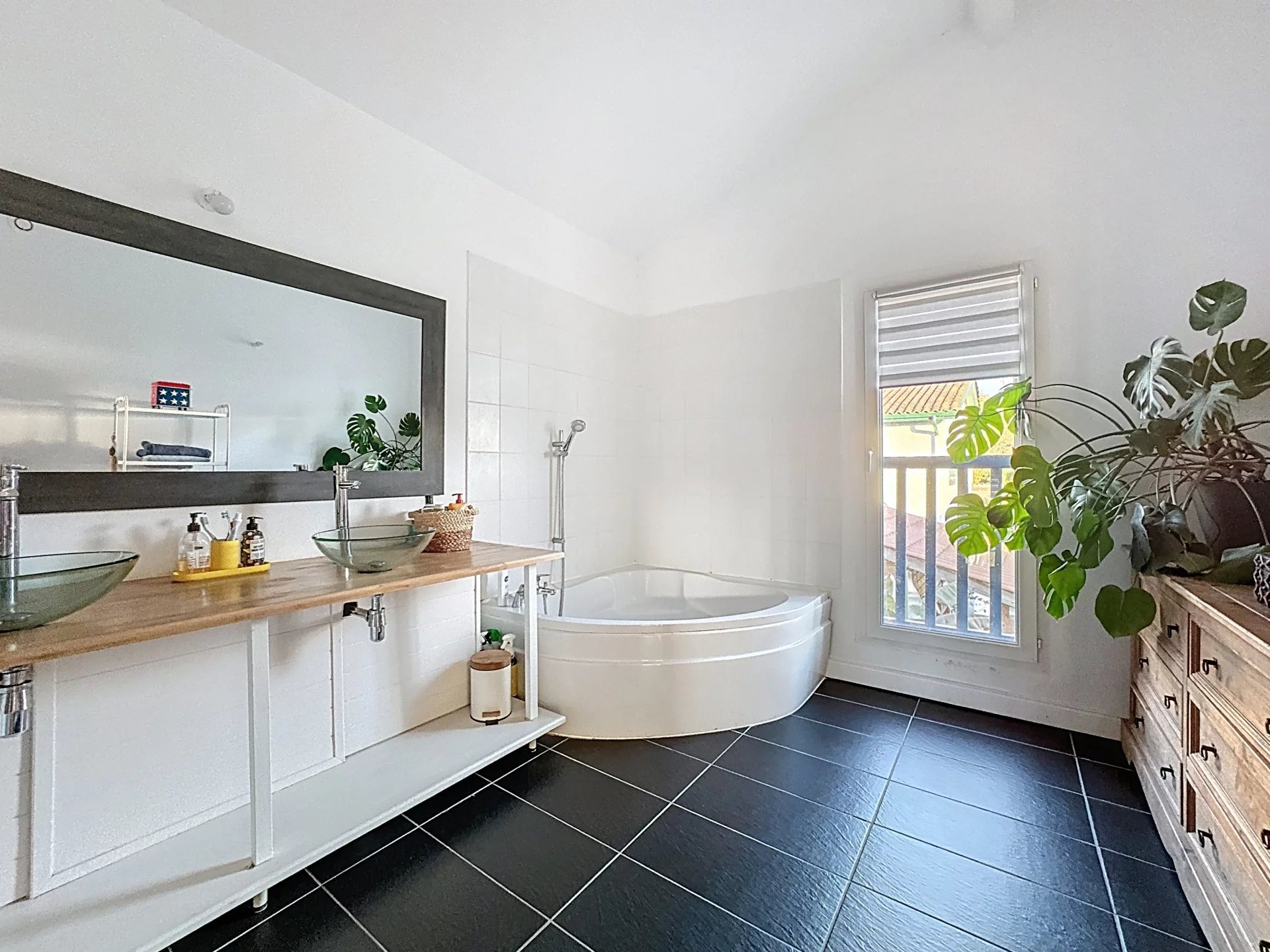 Située Quartier-Neuf, à l’entrée de Saint-Martin-de-Seignanx, cette maison familiale de 164 m², édifiée sur un terrain d’environ 380 m², offre un cadre de vie privilégié alliant confort, modernité et sérénité, le tout à seulement 10 minutes de Bayonne.