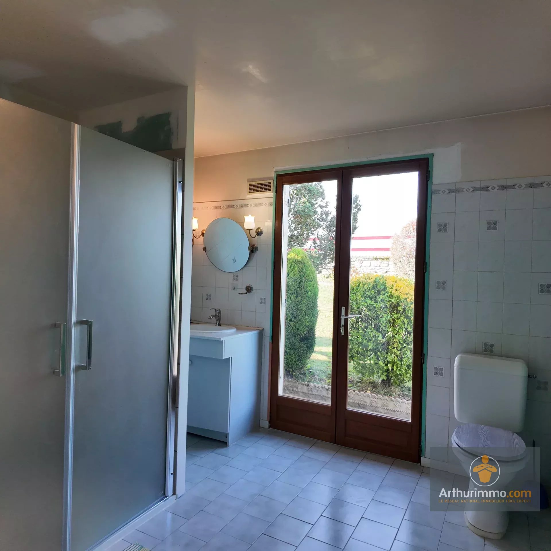Ce niveau comprend également un placard, une grande salle d’eau adaptée aux personnes à mobilité réduite avec WC, ainsi qu’une chambre de plain-pied, rare et recherchée.