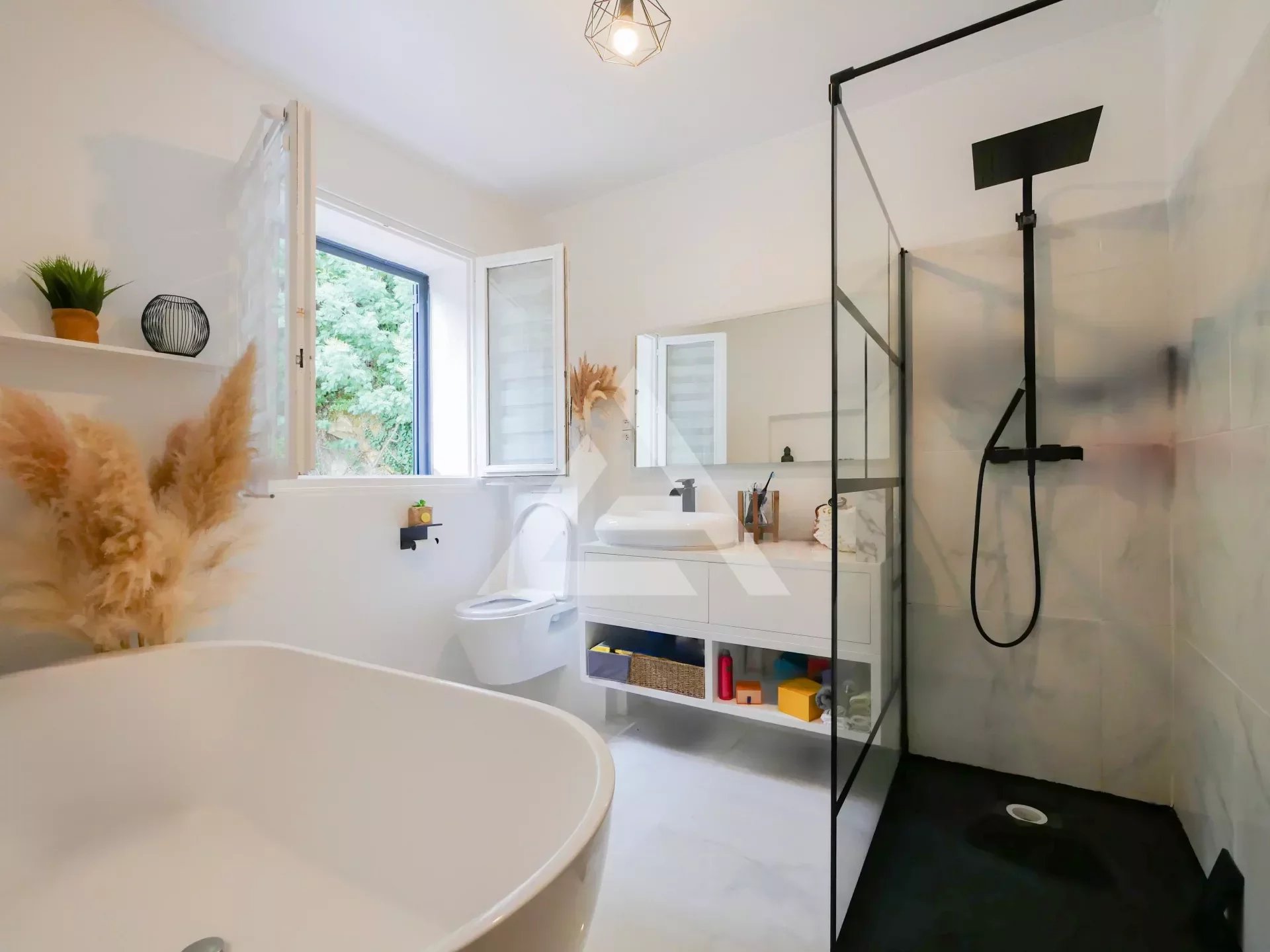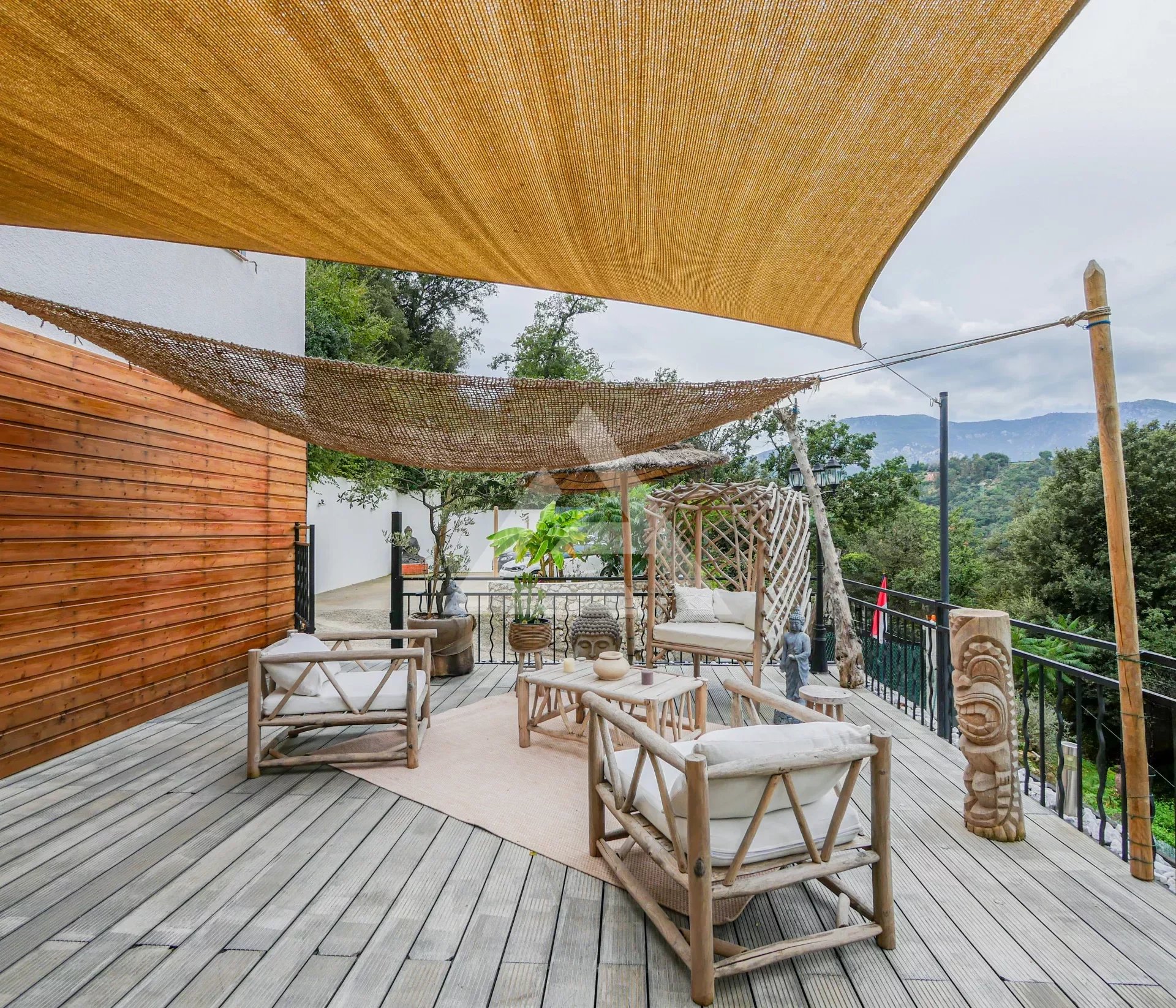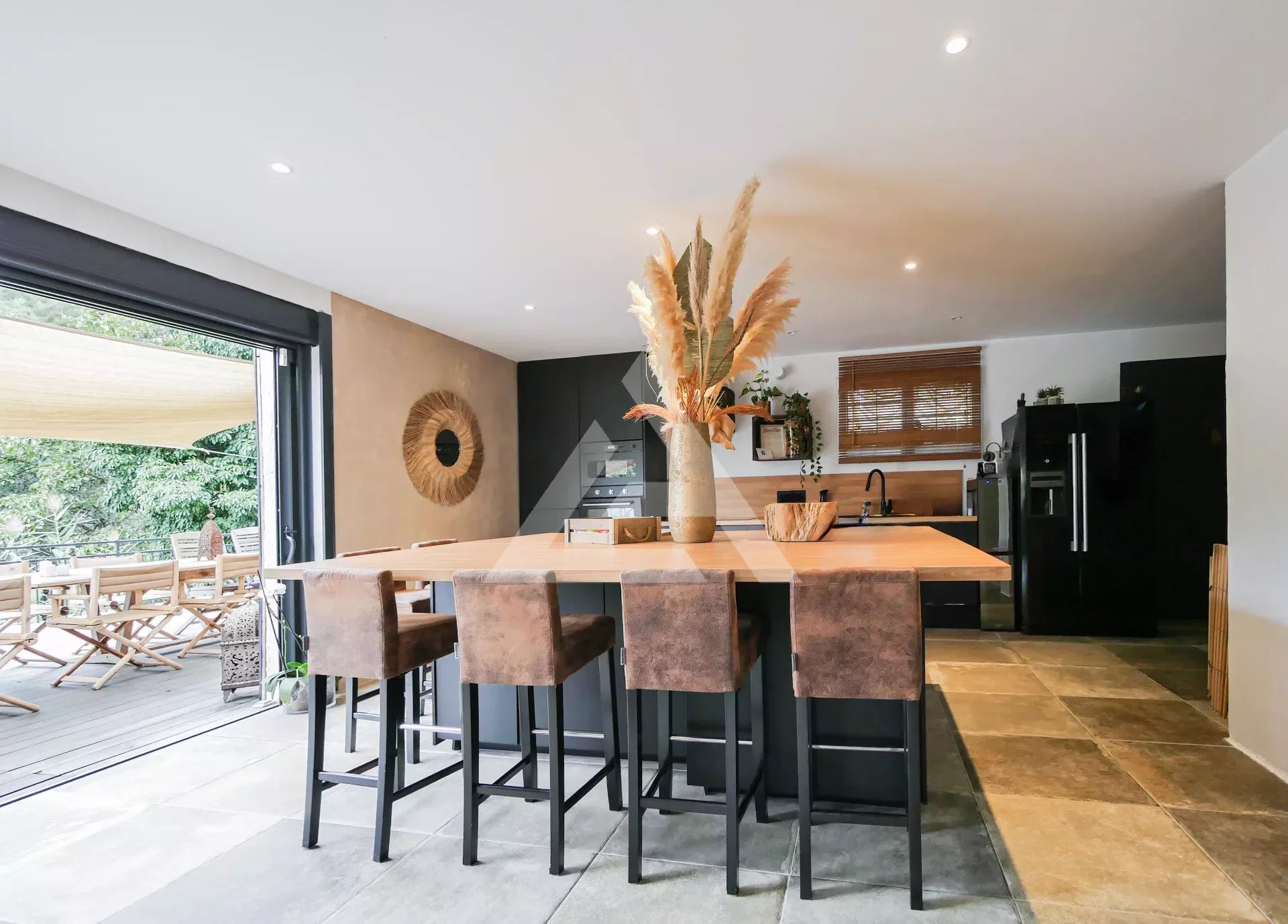 Localizzata a Mentone, a 10 minuti dal centro città, questa casa di 4 stanze offre circa 110 m² di spazio abitabile. La proprietà si trova su un terreno di 5.000 m² con una decina di posti auto. Si sviluppa su due livelli: Livello giardino: - Ingresso con armadio a muro - Soggiorno con cucina a vista che si apre sulla terrazza. - Una toilette separata 1° piano: - Tre camere da letto - Un bagno con vasca, doccia e WC Una dipendenza di 2 stanze di circa 40 m², una cucina estiva, una bella terrazza, una piscina fuori terra, un giardino e un garage completano la proprietà. Possibilità di convertire il sottotetto e costruire una piscina. I canoni sono a carico del venditore se non diversamente stabilito nel mandato. Costi energetici annuali stimati per un uso standard: 1.433 euro. Prezzi medi dell'energia indicizzati nel 2015. L'immobile non è soggetto a comproprietà. La proprietà è soggetta a un inventario dei rischi naturali e dell'inquinamento, che può essere consultato sul sito web di Géorisques: https://georisques.gouv.fr/.