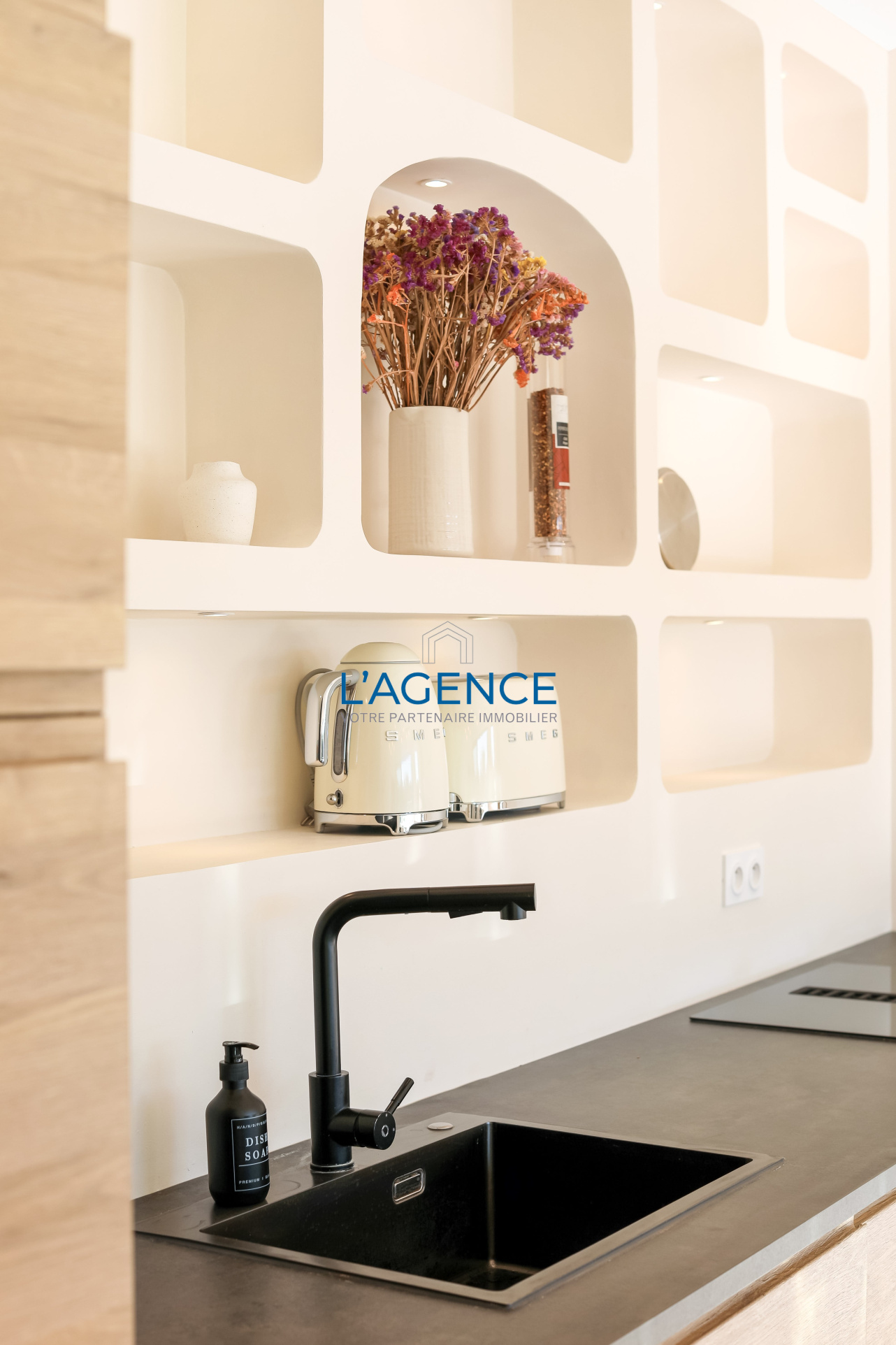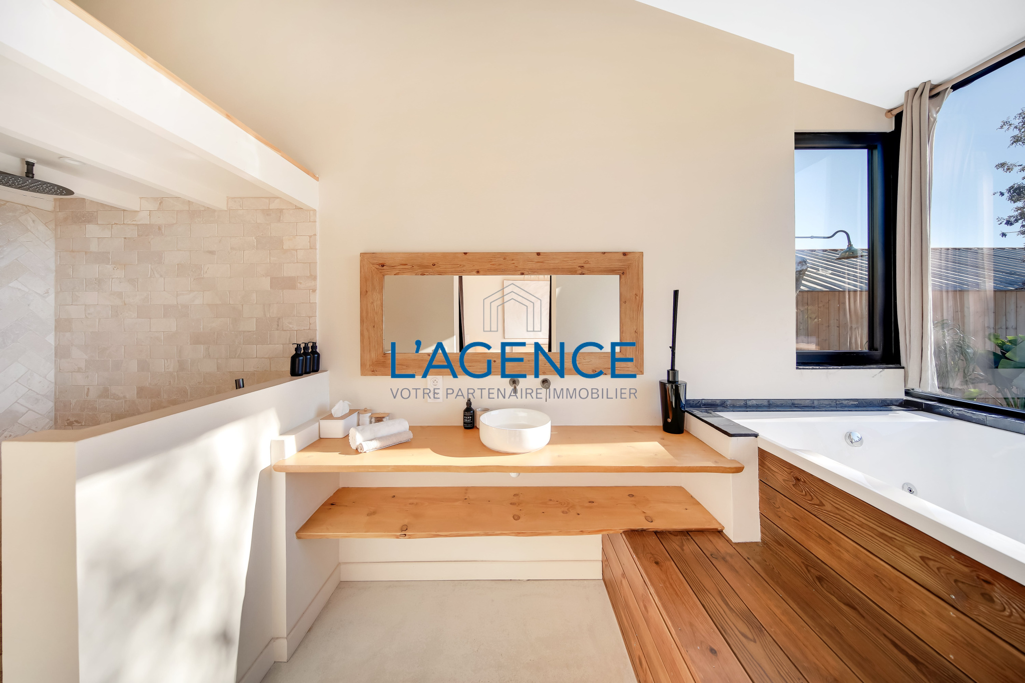 Elle se compose d'une belle piece de vie avec cuisine ouverte,une suite parentale avec douche et bain et dressing,deux chambres avec chacunes leur salle d'eau.