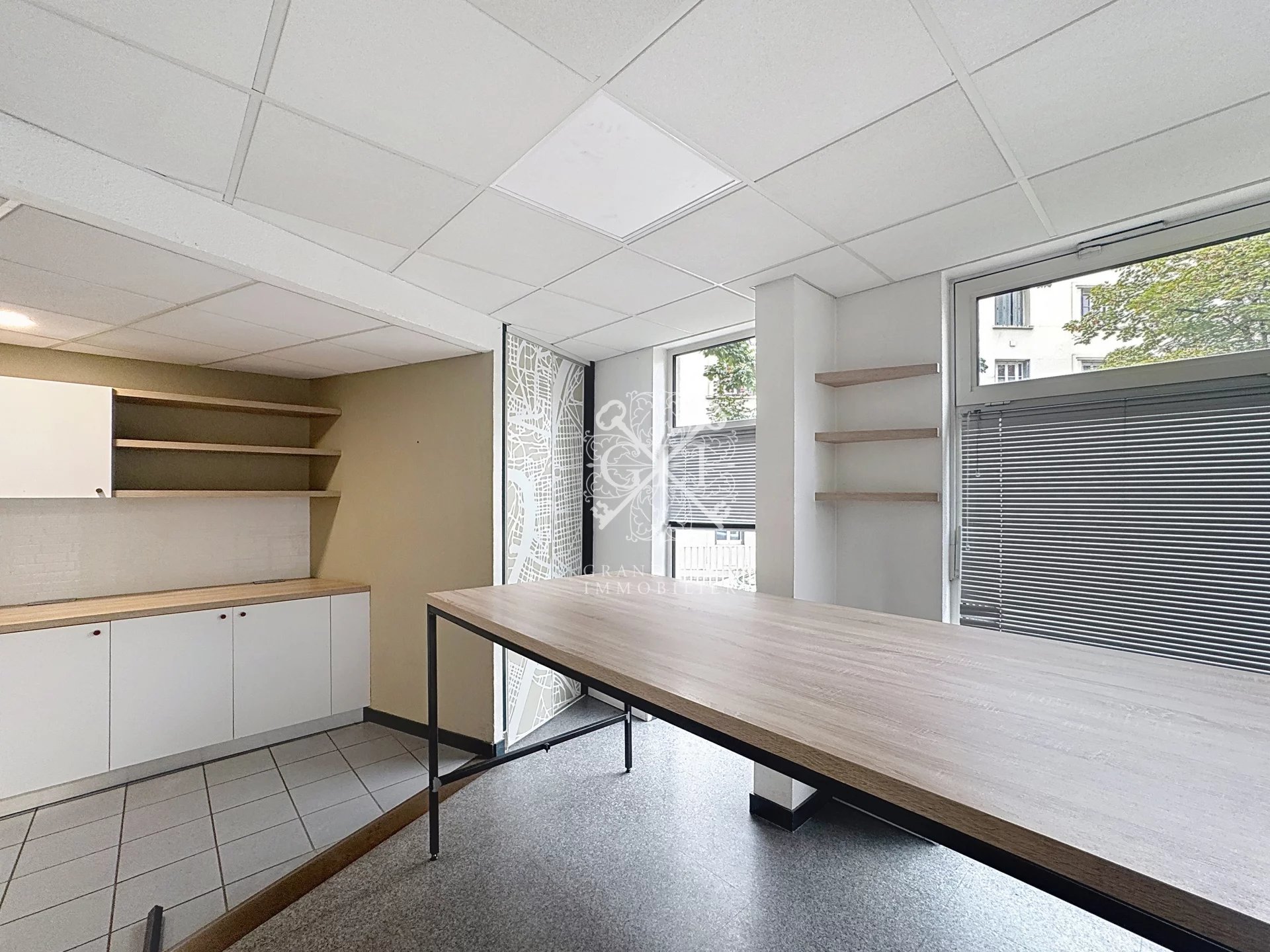 • Espaces modulables et polyvalents : la configuration du local permet de concevoir facilement un espace de coworking, des bureaux individuels, une salle de réunion, ou encore un espace d’accueil partagé.