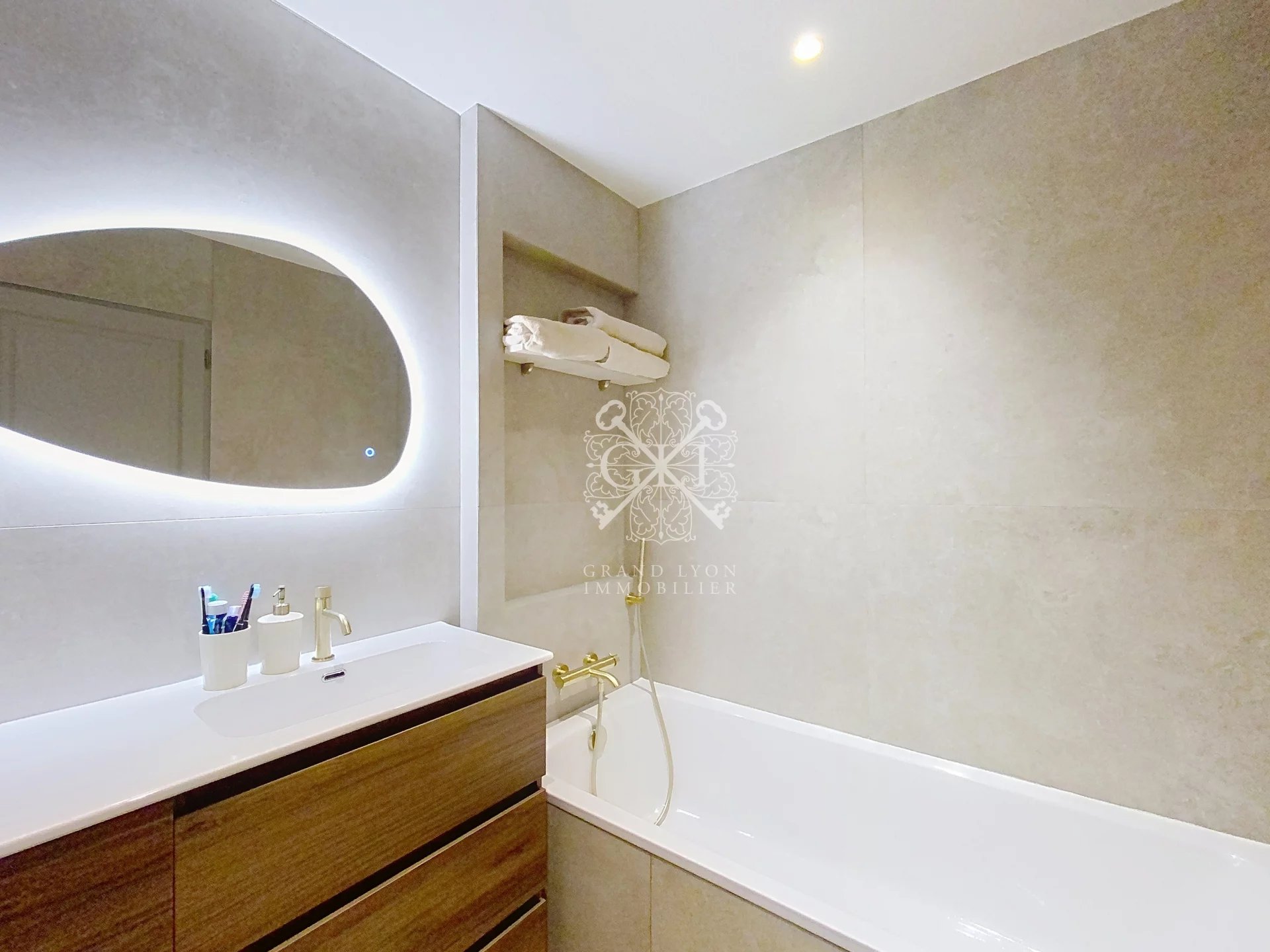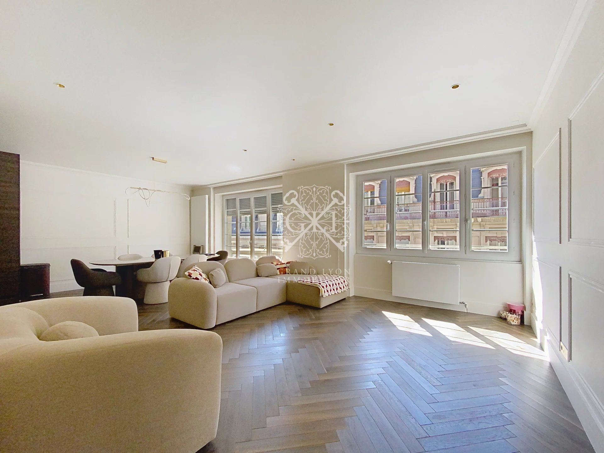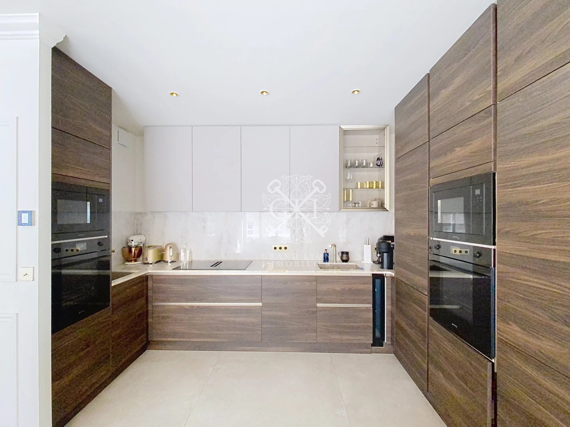 Votre profil : - Vous recherchez un appartement aux espaces optimisés et dans un quartier recherché ? - Vous recherchez un bien sans travaux ? Emplacement : Rue Tronchet – 69006 LYON - Dans un secteur calme et résidentiel – à proximité de toutes commodités - Quartier sécurisé - Emplacement premium à quelques pas de l'avenue Franklin Roosevelt, du Cours Vitton et du parc de la tête d'or. Le bien : Venez découvrir cet appartement de standing d'une surface de 91m² entièrement refait à neuf en 2025, situé au 5e étage avec ascenseur. Vous apprécierez la rénovation soignée et moderne de cet appartement aux prestations haut de gamme et le confort d'une climatisation réversible. En entrant dans ce bien vous découvrirez une belle entrée de 10m2, vous serez ensuite charmé par une agréable pièce de vie de plus de 40m2 avec une cuisine entièrement équipée et meublée de marque avec plan de travail en granite, double four, hotte aspirante intégrée dans les plaques de cuisson, cave à vin. Les grandes ouvertures de cette pièce permettent au soleil de s'inviter tout au long de la journée grâce à son exposition sud. Pour la partie nuit vous trouverez deux grandes chambres de plus de 13m2 avec rangements. Une chambre donne sur cour. Une agréable salle de bains, avec baignoire et douche. Toilette séparé et espace buanderie avec lave linge et sèche linge. Ce bien a tout pour vous séduire entre prestations haut de gamme, modernité et emplacement privilégié, véritable coup de coeur. Précisions : - 5e étage avec ascenseur - Un grenier - Chauffage collectif urbain avec répartiteur / Climatisation réversible - Double balcons - Refait à neuf en 2025 La copropriété : - Charges annuelles de copropriété : 2100€ (comprenant les charges communes, les consommations d'eau, le chauffage, le fond de travaux). - Procédures en cours : Aucune - Travaux à prévoir : Aucun Compte-rendu des diagnostics réalisés : - Plomb : NC - Amiante : En cours - Gaz : NC - Electricité : Aucune anomalie - DPE : En cours Mandataire : - Honoraires à la charge du vendeur - Grand Lyon Immobilier : Inscrit au Registre du Commerce et des Sociétés de Lyon sous le n° 824 926 638 – code APE 6831 Z . Carte professionnelle Gestion immobilière et Transaction n° CPI 6901 2017 000 016 291 / CCI de Lyon le 31/01/2017 et garantie par GALIAN Assurances