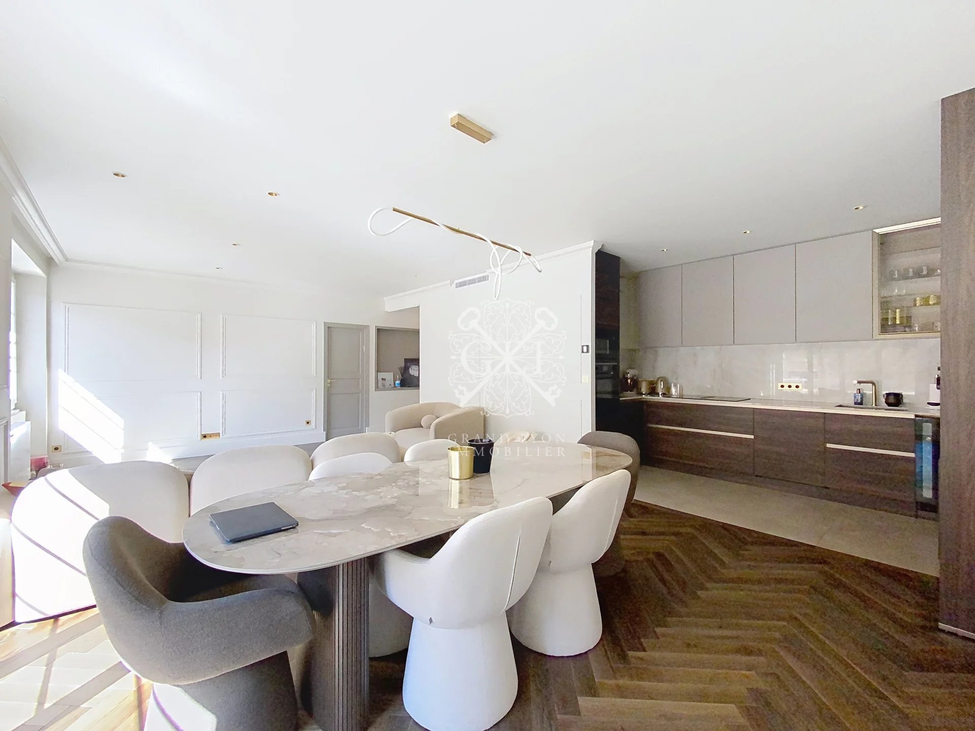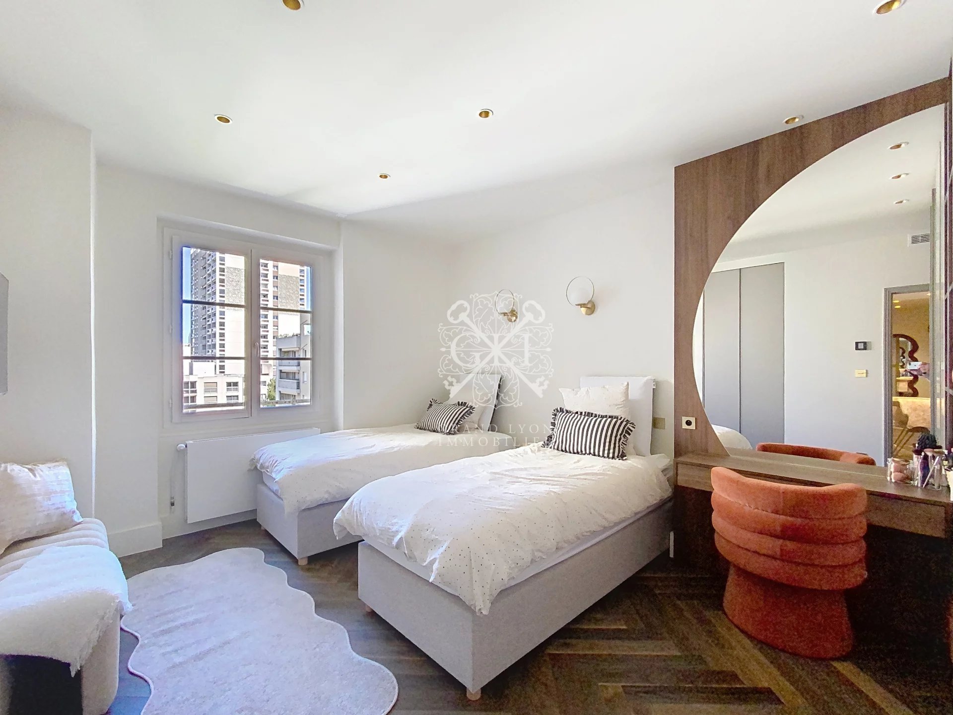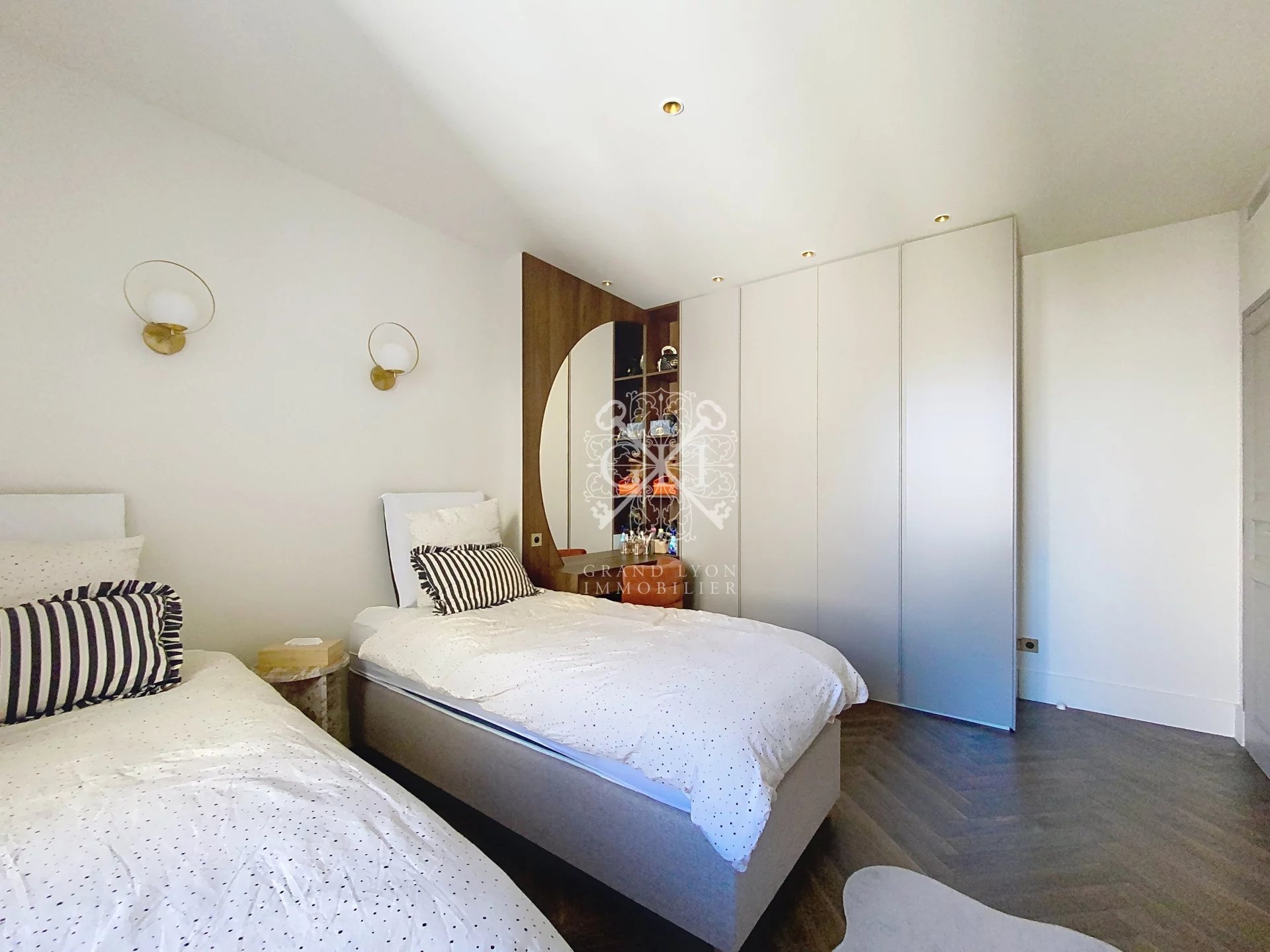 Votre profil : - Vous recherchez un appartement aux espaces optimisés et dans un quartier recherché ? - Vous recherchez un bien sans travaux ? Emplacement : Rue Tronchet – 69006 LYON - Dans un secteur calme et résidentiel – à proximité de toutes commodités - Quartier sécurisé - Emplacement premium à quelques pas de l'avenue Franklin Roosevelt, du Cours Vitton et du parc de la tête d'or. Le bien : Venez découvrir cet appartement de standing d'une surface de 91m² entièrement refait à neuf en 2025, situé au 5e étage avec ascenseur. Vous apprécierez la rénovation soignée et moderne de cet appartement aux prestations haut de gamme et le confort d'une climatisation réversible. En entrant dans ce bien vous découvrirez une belle entrée de 10m2, vous serez ensuite charmé par une agréable pièce de vie de plus de 40m2 avec une cuisine entièrement équipée et meublée de marque avec plan de travail en granite, double four, hotte aspirante intégrée dans les plaques de cuisson, cave à vin. Les grandes ouvertures de cette pièce permettent au soleil de s'inviter tout au long de la journée grâce à son exposition sud. Pour la partie nuit vous trouverez deux grandes chambres de plus de 13m2 avec rangements. Une chambre donne sur cour. Une agréable salle de bains, avec baignoire et douche. Toilette séparé et espace buanderie avec lave linge et sèche linge. Ce bien a tout pour vous séduire entre prestations haut de gamme, modernité et emplacement privilégié, véritable coup de coeur. Précisions : - 5e étage avec ascenseur - Un grenier - Chauffage collectif urbain avec répartiteur / Climatisation réversible - Double balcons - Refait à neuf en 2025 La copropriété : - Charges annuelles de copropriété : 2100€ (comprenant les charges communes, les consommations d'eau, le chauffage, le fond de travaux). - Procédures en cours : Aucune - Travaux à prévoir : Aucun Compte-rendu des diagnostics réalisés : - Plomb : NC - Amiante : En cours - Gaz : NC - Electricité : Aucune anomalie - DPE : En cours Mandataire : - Honoraires à la charge du vendeur - Grand Lyon Immobilier : Inscrit au Registre du Commerce et des Sociétés de Lyon sous le n° 824 926 638 – code APE 6831 Z . Carte professionnelle Gestion immobilière et Transaction n° CPI 6901 2017 000 016 291 / CCI de Lyon le 31/01/2017 et garantie par GALIAN Assurances