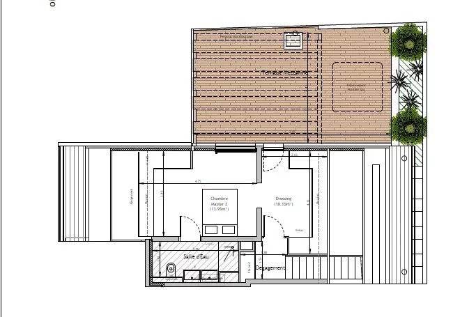 A l’étage supérieur, une deuxième chambre en suite avec dressing s'ouvre sur la deuxième grande terrasse de 35m² équipée d'une pergola bioclimatique et de son jacuzzi privé.