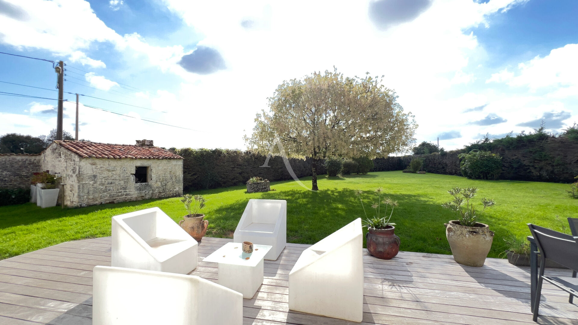 Maison magnifique, en pierre, spacieuse et aux beaux volumes, exposée sud et bâtie sur un terrain de 3 000m² piscinable. Possibilité d'acquérir 6 hectares mitoyens à la propriété. Idéalement située entre Royan, Saintes, Saujon et l'Ile d'Oléron, la demeure est proche de toutes les commodités de Corme Royale et de Balanzac, tout en profitant d'un environnement paisible, sans voisinage immédiat. Cette maison donne un charme en mêlant la pierre et le bois aux matériaux bruts et modernes, dans un espace de vie de 80m², illuminé par une haute verrière cathédrale, équipée d'un rideau translucide électrique. La cuisine haut de gamme est ouverte sur la salle à manger et le salon, ce qui créer un très large lieu de vie. Elle est de marque Nolte, récente et réalisée avec des matériaux nobles, comme le granit noir du Zimbabwe. Un magnifique escalier d'architecte, central dans l'espace de vie, mène aux pièces de nuit organisées autour d'une passerelle, soit trois chambres, une salle de bains et un WC, puis une mezzanine. Au rez-de-jardin, un couloir dessert une 4e chambre ou bureau, une deuxième salle d'eau et un deuxième WC, un cellier et un accès direct au garage. L'extérieur est égal au charme que procurent les espaces intérieurs, il est magnifique, avec une terrasse récente de 50m² en bois de Cumaru, une dépendance avec eau et électricité, une pièce extérieure et un four à pain, le tout en pierres. La demeure a tout le confort : double vitrage, chauffage au sol, volumes intérieurs. Votre contact : Nicolas PREST 0661260625 (4.03 % honoraires TTC à la charge de l'acquéreur.) Nicolas PREST (EI) Agent Commercial - Numéro RSAC : 519839278 - SAINTES.