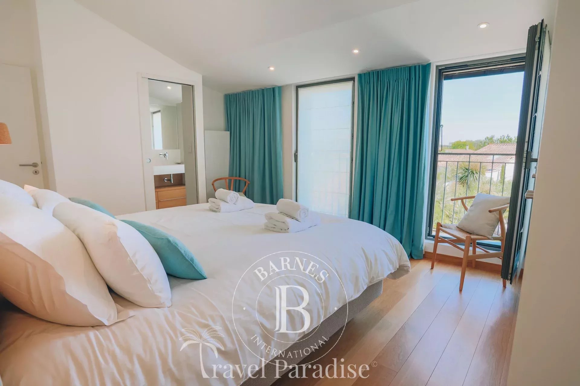 Avec ses 7 chambres spacieuses, la villa Saint-Exupéry peut accueillir confortablement jusqu'à 12 personnes, idéale pour des vacances aussi bien en famille qu’entre amis. La décoration intérieure allie touches artistiques et modernité pour créer une atmosphère à la fois chaleureuse et raffinée. Vous y trouverez un salon spacieux, une grande salle à manger conviviale, ainsi qu'une cuisine américaine entièrement équipée pour satisfaire toutes vos envies culinaires.