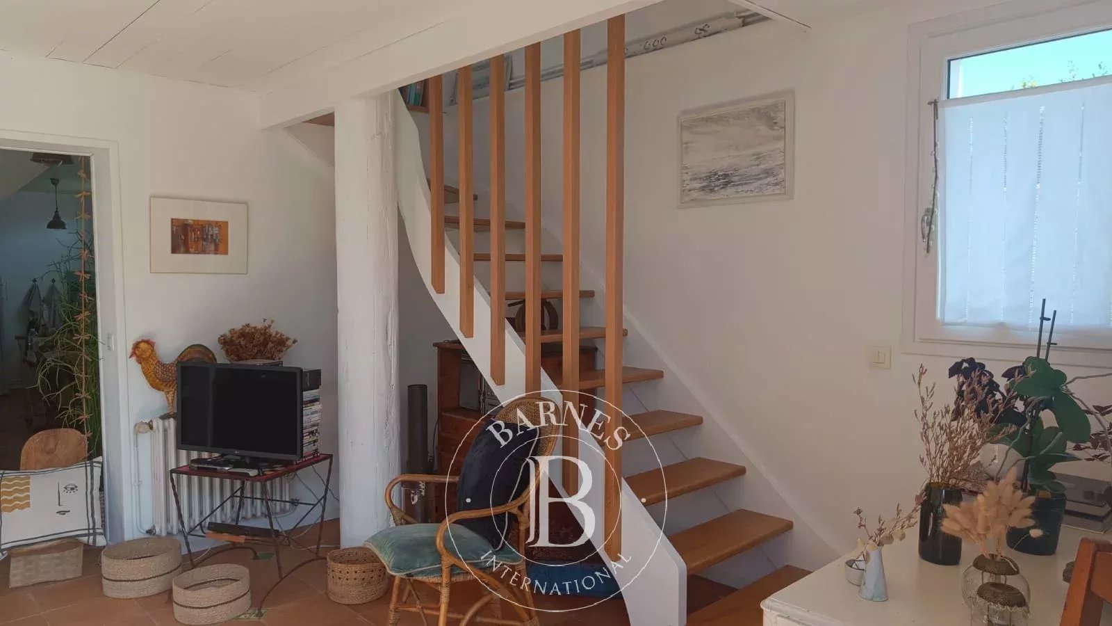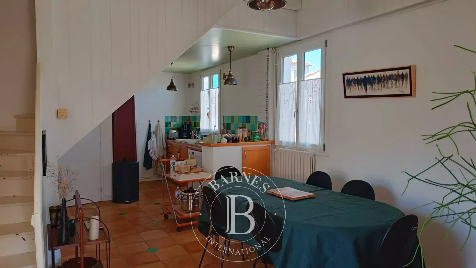 Au calme et à proximité du port, des commerces et du clocher. Maison sur 2 niveaux offrant 92 m2 habitables. Elle se compose d'une cuisine dinatoire et d'un séjour lumineux. À l'étage : 3 chambres et 2 salles d'eau/bains. Jardin arboré avec terrasse et une cour. En annexe, local de rangement/technique et grande buanderie/cellier.