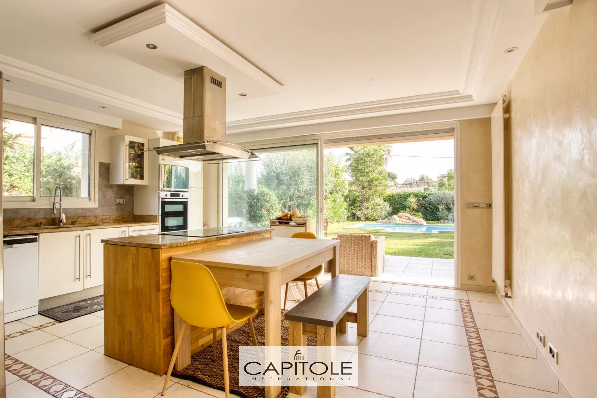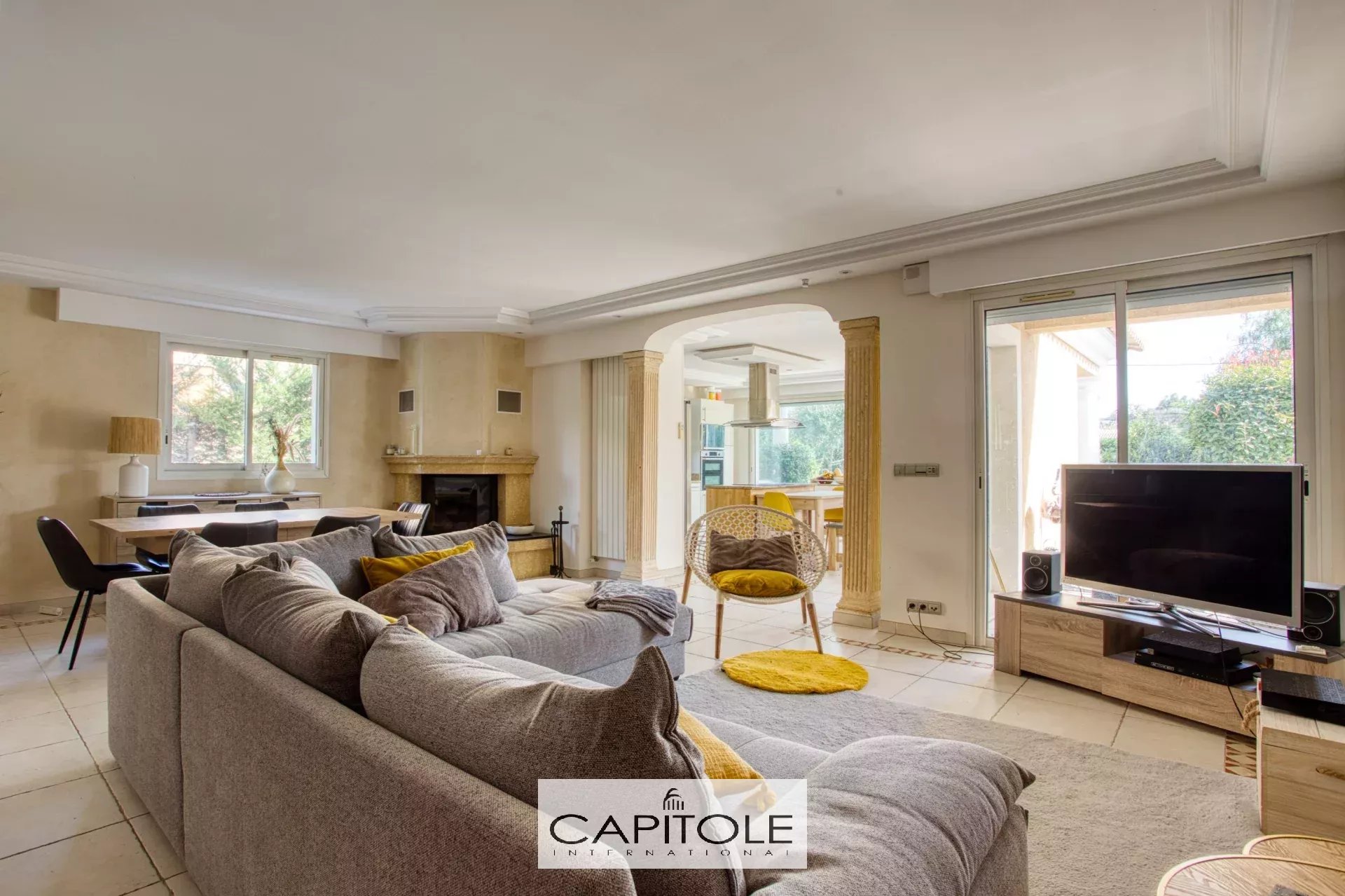 Nichée dans un quartier résidentiel calme, cette villa contemporaine de 2002 vous propose un cadre de vie parfait à proximité des commerces. Implantée sur un terrain plat de 1575 m², elle bénéficie d'un jardin magnifiquement arboré, d'une piscine (au chlore ou au sel) et d'une cuisine d'été, idéale pour profiter de moments de détente en extérieur. L'intérieur se compose d'une entrée, d'un WC indépendant, de trois chambres de plain-pied et d'une salle de douche. Le spacieux salon/salle à manger baigné de lumière s'ouvre sur une cuisine américaine entièrement équipée, avec accès direct à la terrasse et au jardin. À l'étage, la suite parentale d'environ 50 m², avec salle de bain et baignoire balnéo, dispose également d'une terrasse privative offrant une vue dégagée sur les montagnes. Le sous-sol abrite un garage de 150 m² pouvant accueillir plusieurs véhicules, ainsi qu'un espace chaufferie, buanderie, atelier et local technique pour la piscine. Un studio indépendant de 40 m² avec son jardin privatif vient compléter ce bien d'exception. Cette villa récente se distingue par ses prestations haut de gamme : trois chambres de plain-pied, des matériaux modernes (baies à galandage, volets roulants, alarme, domotique, climatisation, double vitrage, etc.). Les informations sur les risques liés à ce bien sont disponibles sur GeoRisques Ref : CB1887VM