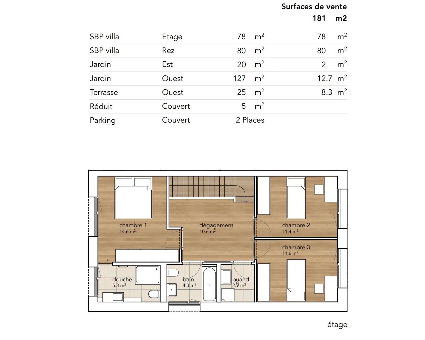 Dans le charmant village de Saillon, découvrez cette villa mitoyenne de 6 pièces située à la Route des Devins, dans un cadre privilégié au calme, baigné de soleil et offrant une belle vue dégagée. Cet emplacement, au pied de la tour Bayart, allie sérénité, proximité des commodités et qualité de vie exceptionnelle. CONCEPTION ET ARCHITECTURE Cette villa en construction séduit par ses volumes généreux, ses espaces lumineux, sa cuisine et ses matériaux nobles et haut de gamme. Chaque détail a été pensé pour offrir confort et agrément dans une ambiance contemporaine et harmonieuse. PERFORMANCE ENERGETIQUE Classée CECB A-A, elle est équipée d’une pompe à chaleur air-eau et de panneaux solaires garantissant une excellente efficacité énergétique et une consommation maîtrisée. REZ - Entrée avec armoire encastrée - vestiaire - Espace séjour séparé de la cuisine et de l'espace repas par l'économat central et par des portes escamotables - baies vitrées sur le jardin - Cuisine avec îlot central ouverte sur l'espace repas et séparé du séjour par l'économat central et par des portes escamotables - Espace repas avec grande baie vitrées sur la terrasse et le jardin - WC de jour - Rangement sous l'escalier - Escalier d'accès à l'étage ETAGE - Dégagement (possibilité d'en faire un bureau) - Chambre principale avec salle d'eau privative (douche italienne, lavabo et WC) - Chambre 2 - Chambre 3 - Salle d'eau avec bain, lavabo et WC - Buanderie privative (incluant la colonne de lavage) EXTERIEUR - Jardins de 147 m2 - Terrasse de 25 m2 PLACES DE PARC ET REDUIT - 2 places de parc couvertes et réduit de 5 m2 non compris dans le prix de vente et vendus CHF 54'000.- TTC
