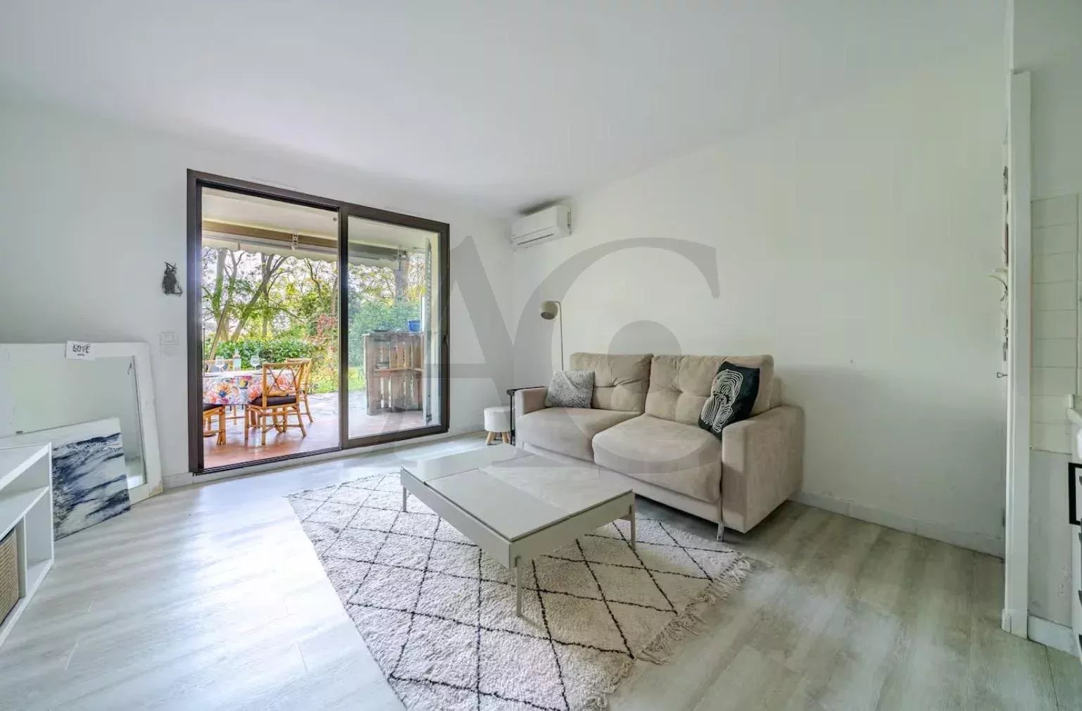 Dans un cadre verdoyant et au calme absolu, découvrez ce charmant studio en rez-de-jardin d'env 25 m², entièrement rénové avec goût. Idéalement exposé Est et Sud, il bénéficie d’une très belle vue dégagée sans vis-à-vis. Il se compose d’une entrée avec placard, d’un séjour lumineux avec kitchenette équipée, d’un espace de rangement, ainsi que d’une salle de douches avec WC. À l’extérieur, vous profiterez d’une agréable terrasse prolongée par un jardin privatif, parfait pour vos moments de détente. Accès piscine et tennis dans le hameau, climatisation réversible. Bien rare ! à visiter sans tarder.
