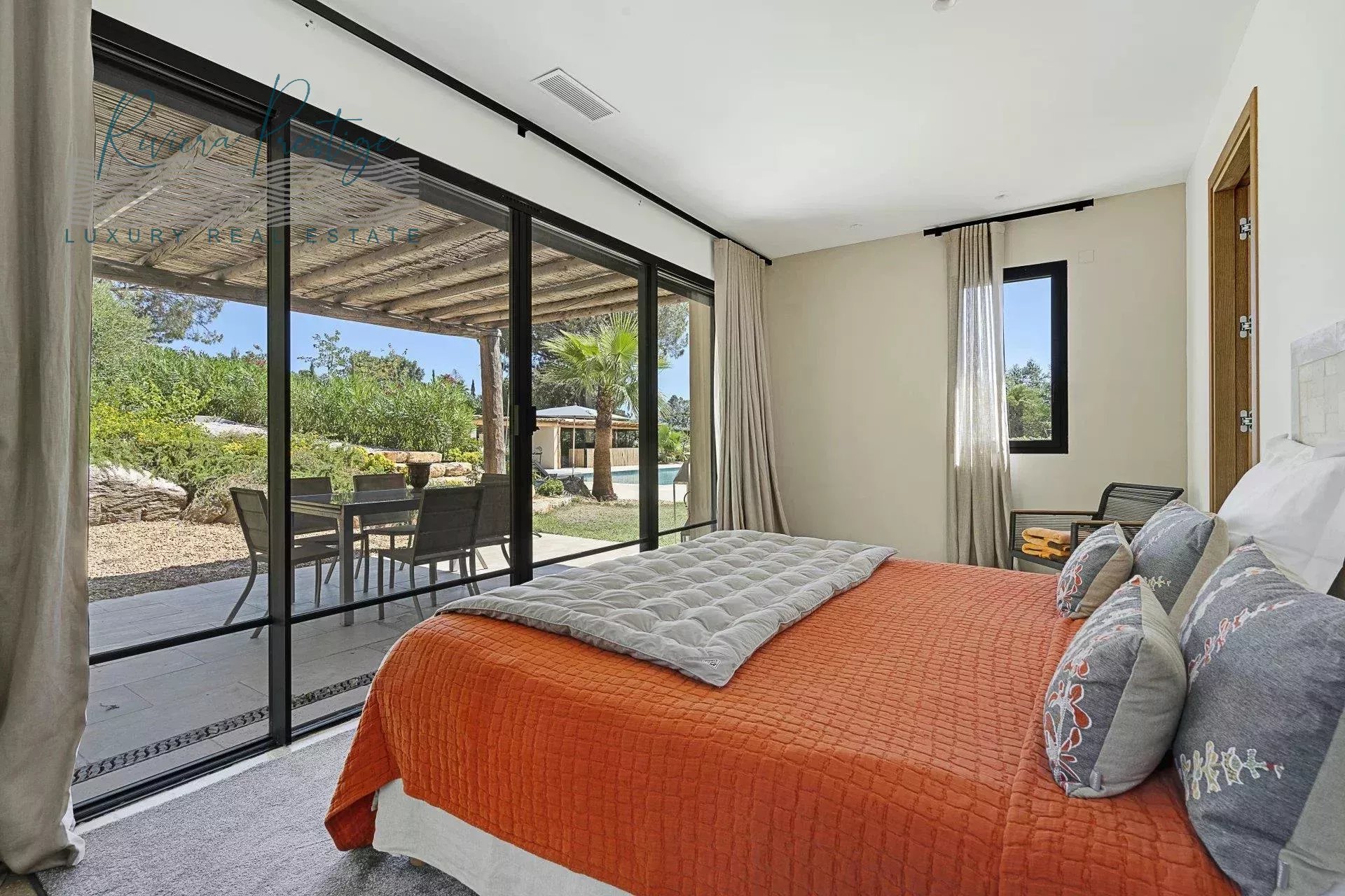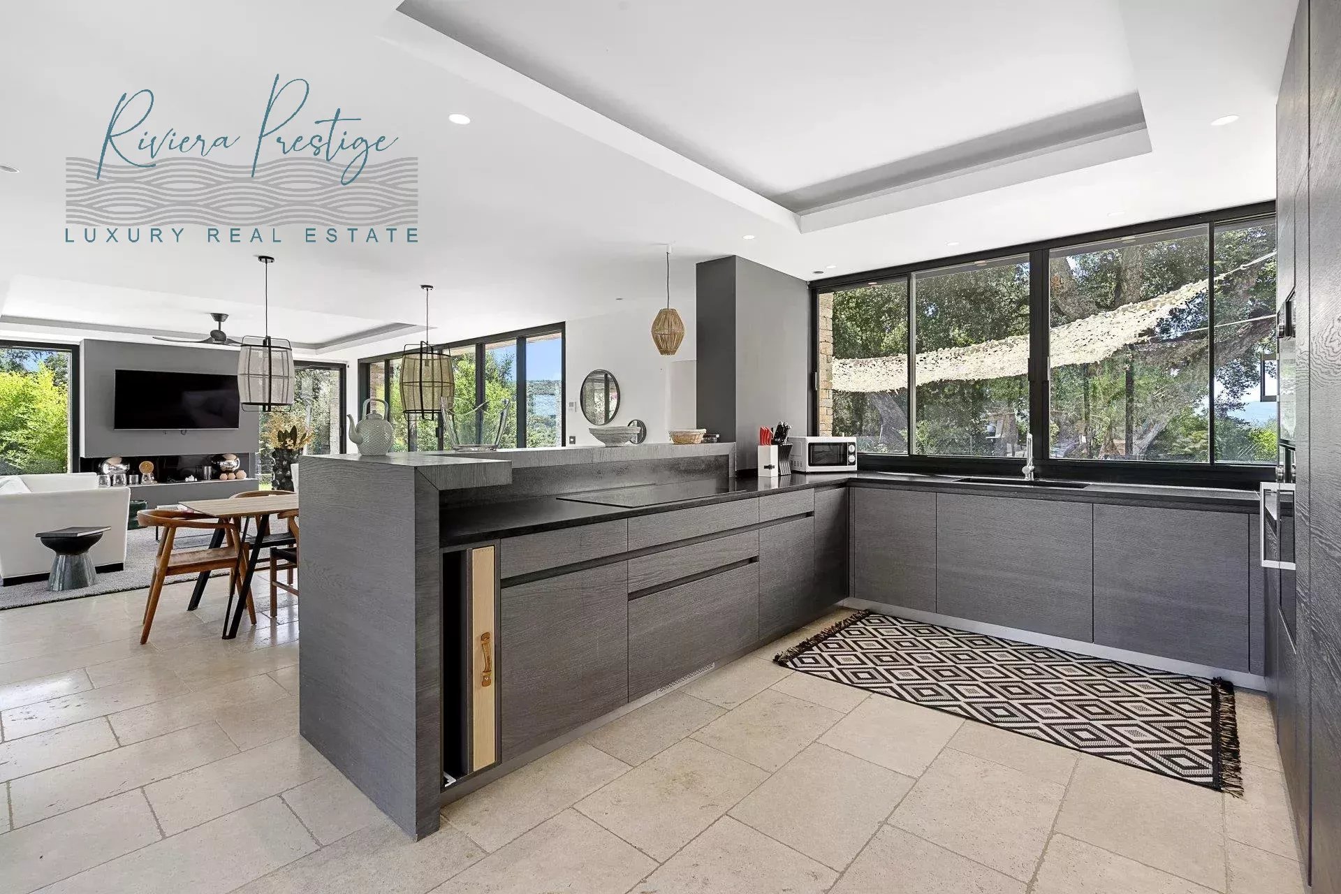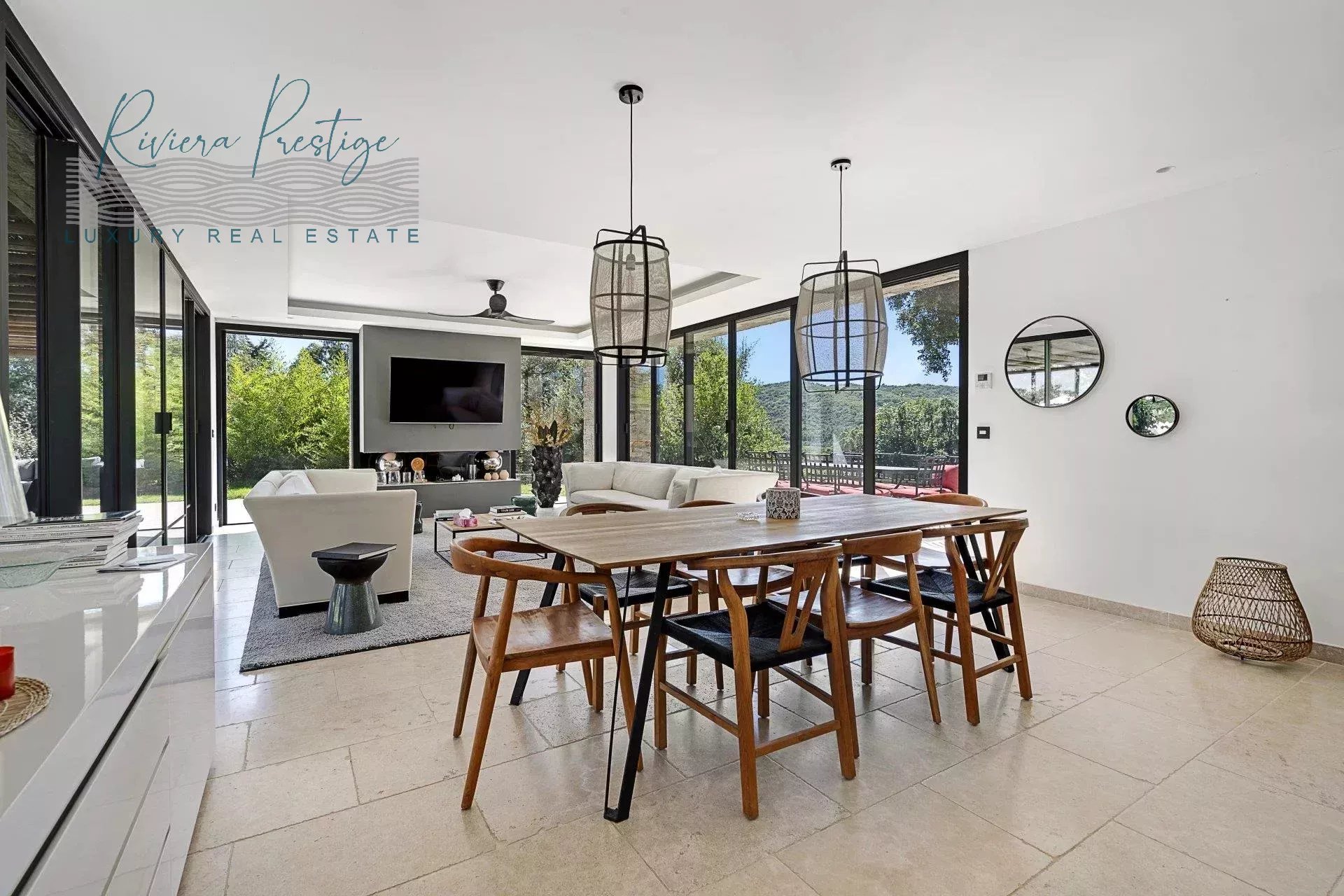 Les prestations intérieures sont de haut niveau : sols en pierre naturelle, climatisation réversible, domotique complète, système d’alarme, huisseries aluminium à galandage et matériaux nobles tels que le travertin et le teck.