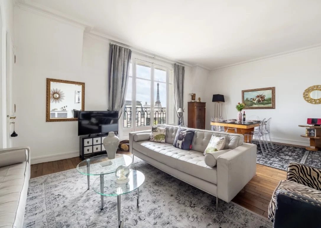 Paris 16 - Trocadero -Situé au 6e étage d'un élégant immeuble art déco, appartement offrant de superbes vues sur la tour Eiffel et les réservoirs de Passy. Cet appartement en bon état se compose d'une entrée, d'un vaste séjour double avec sa partie salon et salle à manger, d'une cuisine équipée indépendante ainsi que d'une chambre avec sa salle de bains attenante. Charme garanti pour cet appartement d'angle et traversant, dans le quartier commerçant de l'avenue Victor Hugo.