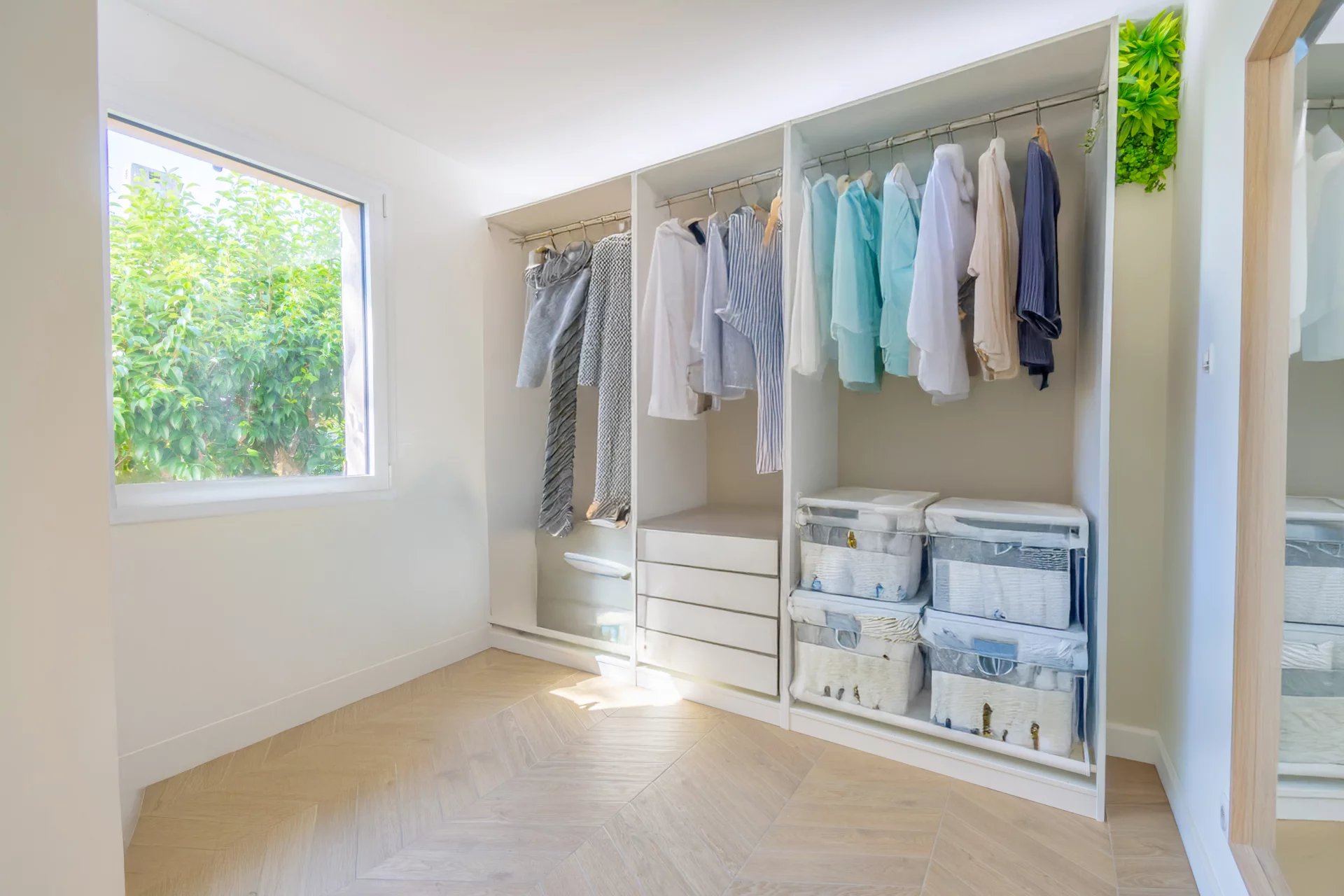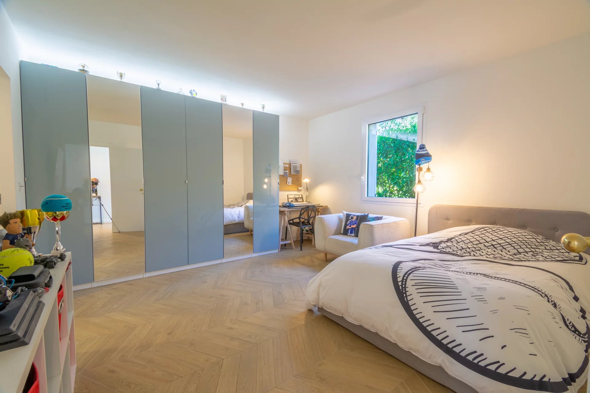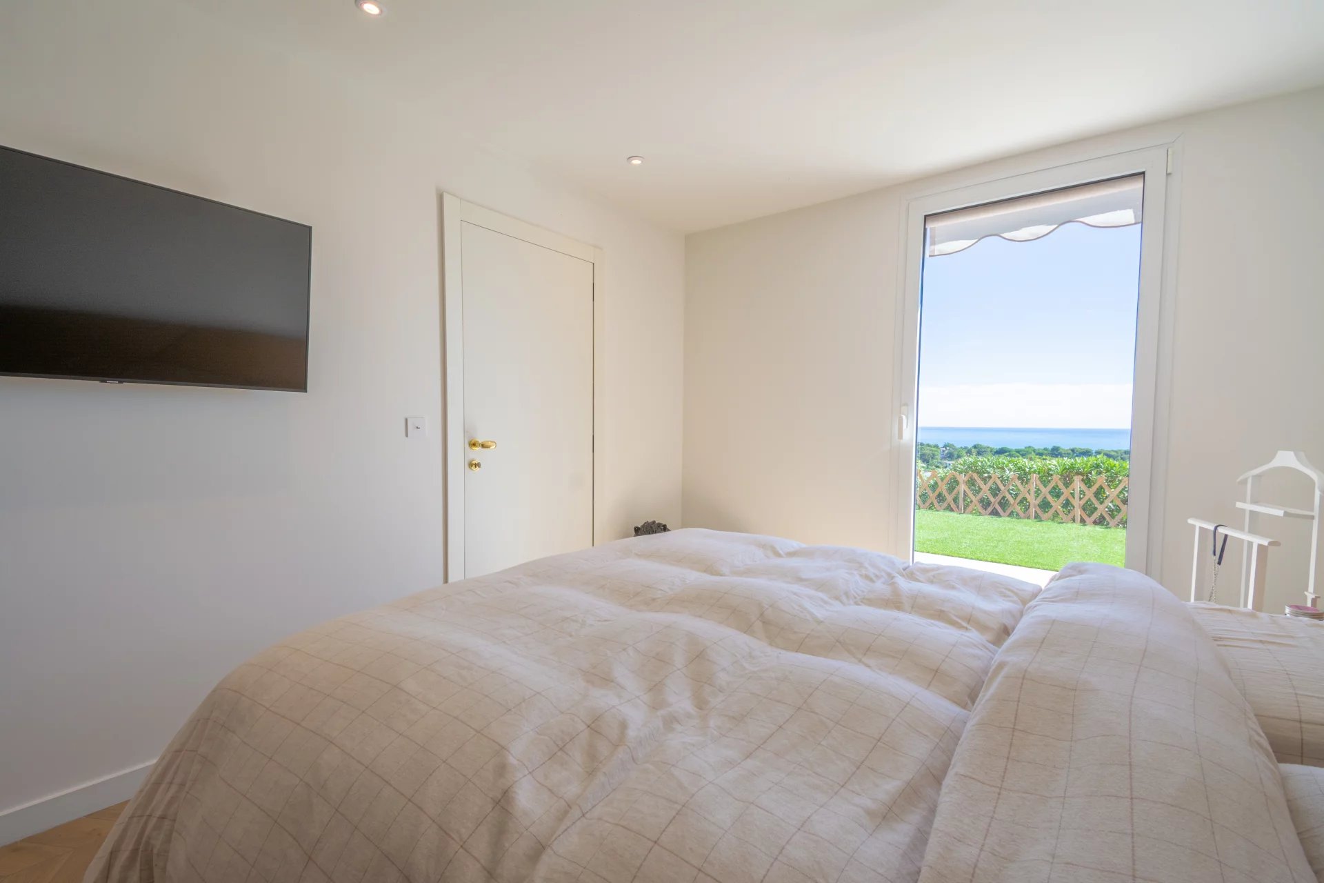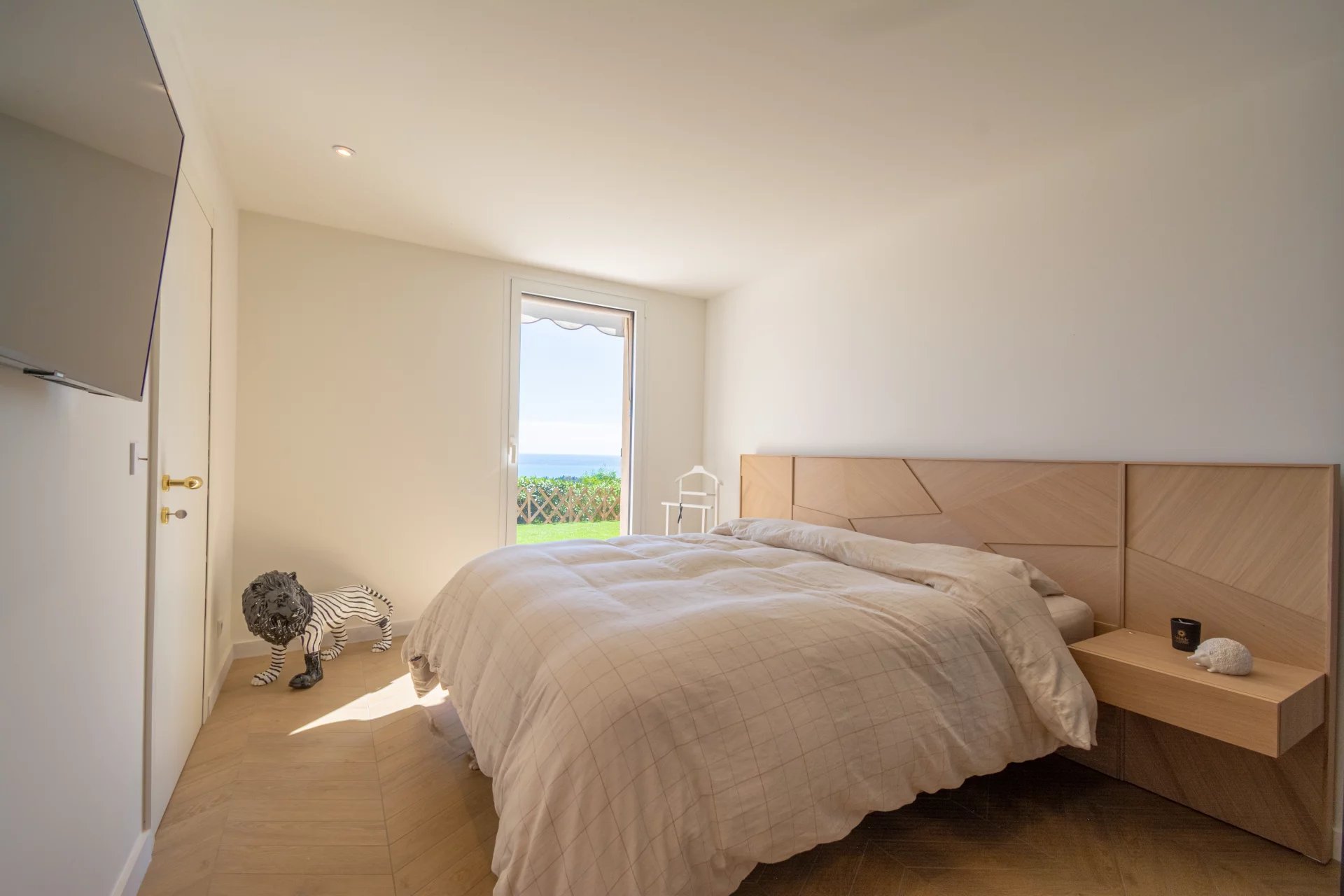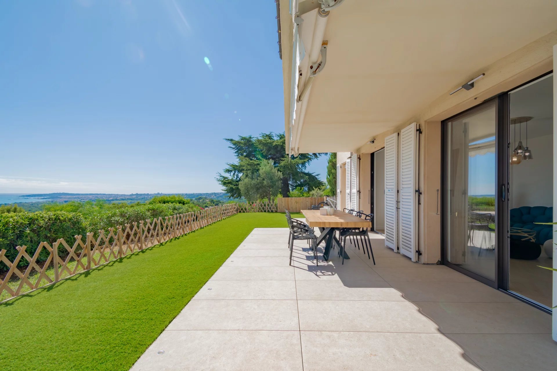VILLENEUVE LOUBET - HAUTS DE VAUGRENIER – Magnifique appartement 3 pièces en rez-de-jardin avec vue mer panoramique. Rare sur le marché ! Situé au sein du fabuleux domaine privé et sécurisé des Hauts de Vaugrenier qui s’étend sur 130 hectares et qui offre un cadre de vie unique avec ses 3 lacs, sa piscine olympique, ses 8 courts de tennis, ses gardiens présents 24h/24, sa place centrale animée avec ses commerces (pharmacie, supérette, boucherie, etc.) ainsi qu’une école maternelle publique, cet appartement de prestige bénéficie d’un environnement verdoyant et paisible, à proximité immédiate des axes de communication. Ce superbe rez-de-jardin d’angle d’une superficie de 102 m² a été entièrement rénové en 2023 avec des matériaux de qualité et des finitions raffinées. Il séduit par ses volumes généreux et sa luminosité, offrant une superbe vue mer panoramique allant du Cap d’Antibes jusqu’au Cap Ferrat. L’appartement se compose d’un hall d’entrée élégant doté d’un grand dressing, d’un vaste séjour ouvrant sur le jardin privatif et sa terrasse, d’une cuisine ouverte contemporaine entièrement équipée avec des appareils électroménagers haut de gamme, d’une suite parentale avec dressing et salle de bains privative, ainsi que d’une seconde suite disposant de sa propre salle d’eau et de son dressing. Une buanderie fonctionnelle et des toilettes invités complètent l’ensemble. Tout le confort moderne est présent grâce à la climatisation gainable, garantissant une qualité de vie optimale en toutes saisons. Un grand garage et une cave en sous-sol viennent compléter ce bien rare et recherché, idéalement situé à seulement 10 minutes des plages, 2 minutes de l’autoroute et 5 minutes de la gare. Classe énergie C - Charges mensuelles 340€ - Taxe foncière 1980€. Les informations sur les risques auxquels ce bien est exposé sont disponibles sur le site Géorisques http://georisques.gouv.fr