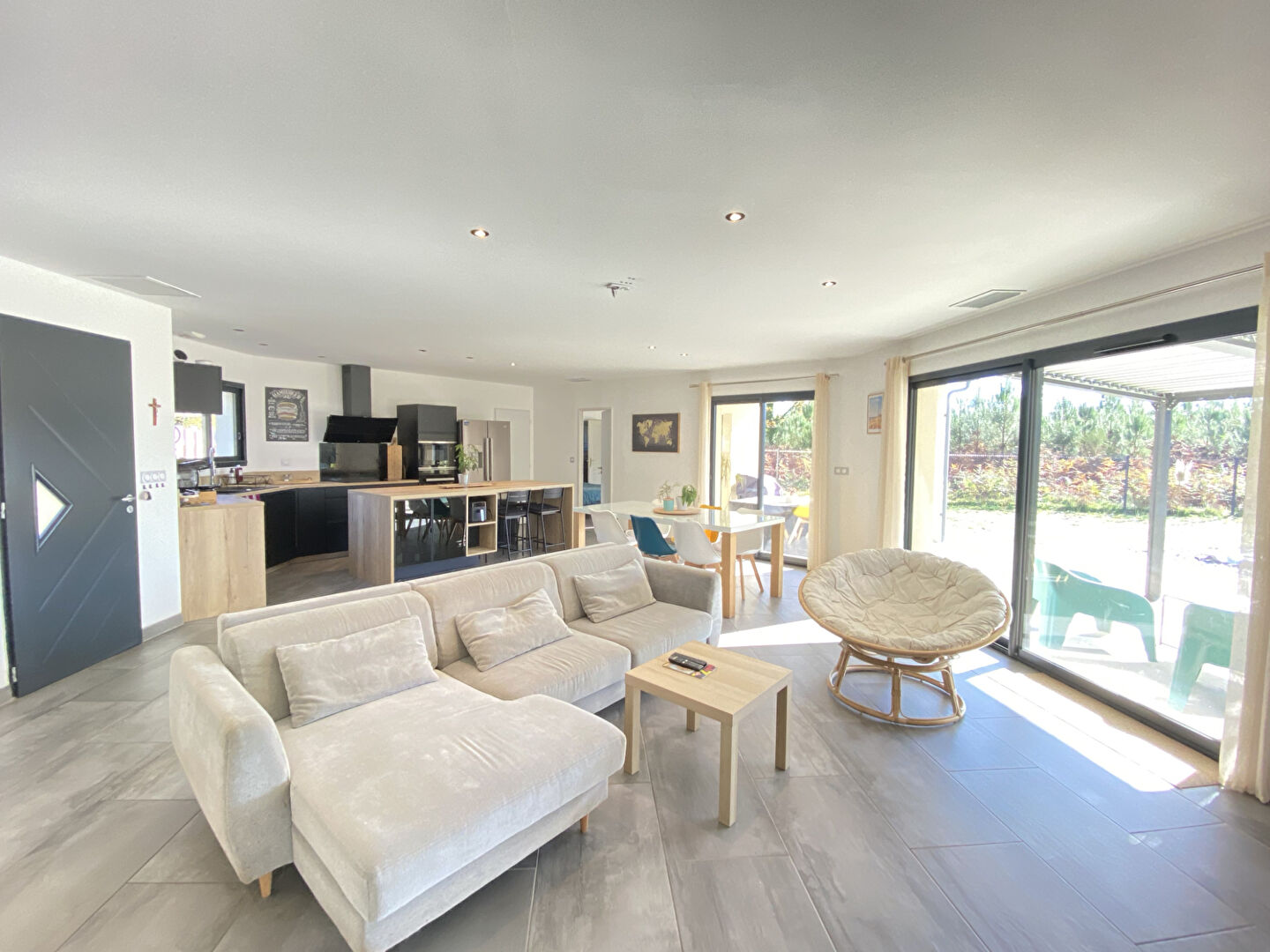 Entre Dax et Mont de Marsan, à 5 minutes des commodités laissez-vous séduire par cette belle maison de plain-pied construite en 2020, alliant modernité, confort et qualité de vie. A l'intérieur, un vaste séjour baigné de lumière s'ouvre sur sa terrasse et sa piscine, créant une atmosphère chaleureuse et conviviale. La cuisine équipée et fonctionnelle, s'intègre harmonieusement à l'espace de vie. Côté nuit, la maison dispose de trois chambres, dont une suite parentale avec dressing et salle d'eau privative. A l'extérieur, profitez d'un jardin arboré de 1748m², clos, sans vis-à-vis en lisière de forêt. Idéal pour les amoureux de la nature en quête de sérénité !