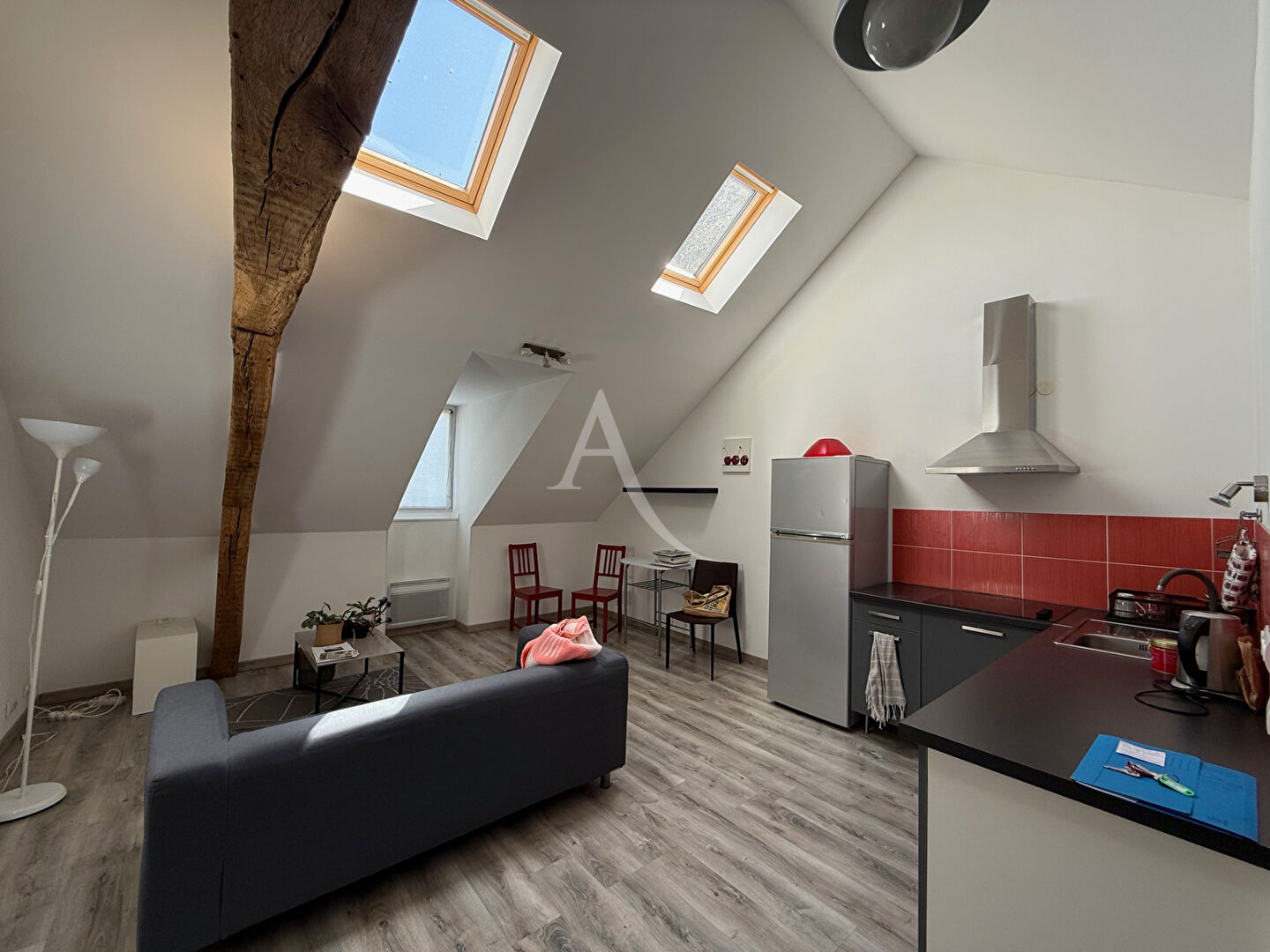 A LOUER - QUARTIER DES HALLES Au coeur du centre-ville, niché au dernier étage d'un immeuble ancien parfaitement entretenu, ce bel appartement type loft vous séduira par l'alliance du charme de l'ancien et une rénovation contemporaine de qualité. Il comprend un séjour lumineux avec une cuisine aménagée et équipée, une salle d'eau avec lave-linge fourni et un coin nuit cosy avec dressing. Eau froide incluse dans les charges. DPE : D - Libre au 19/03 Loyer initial : 600 euros/mois - Pro