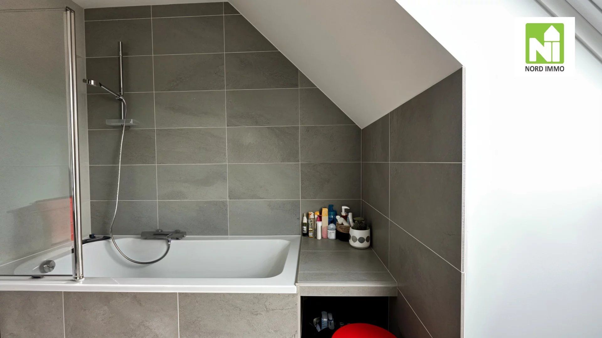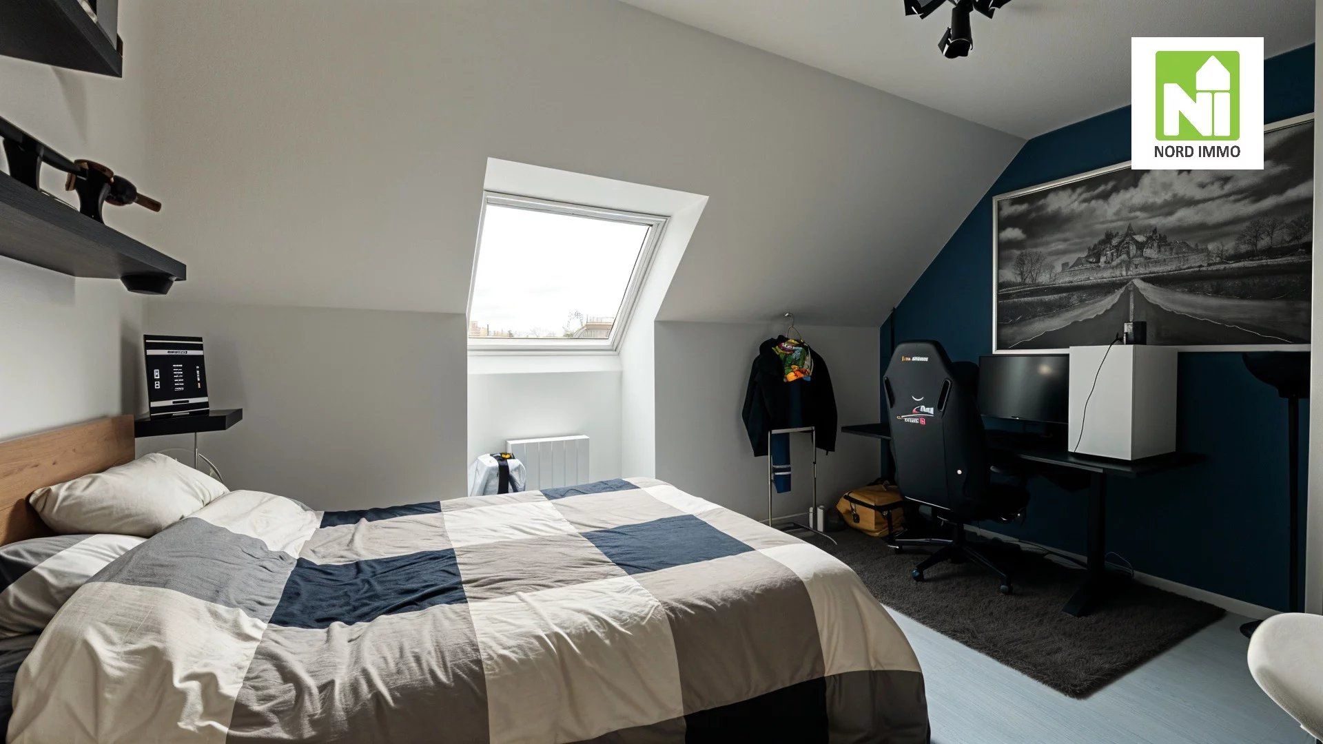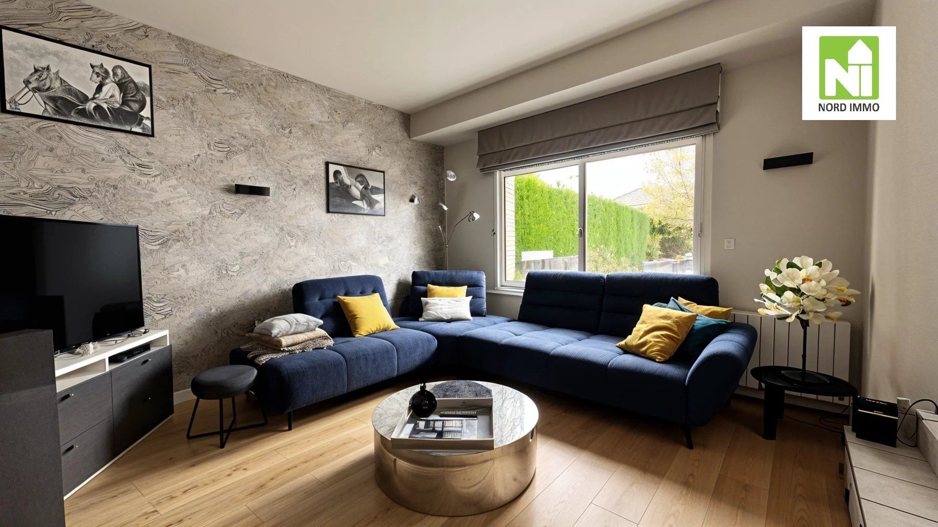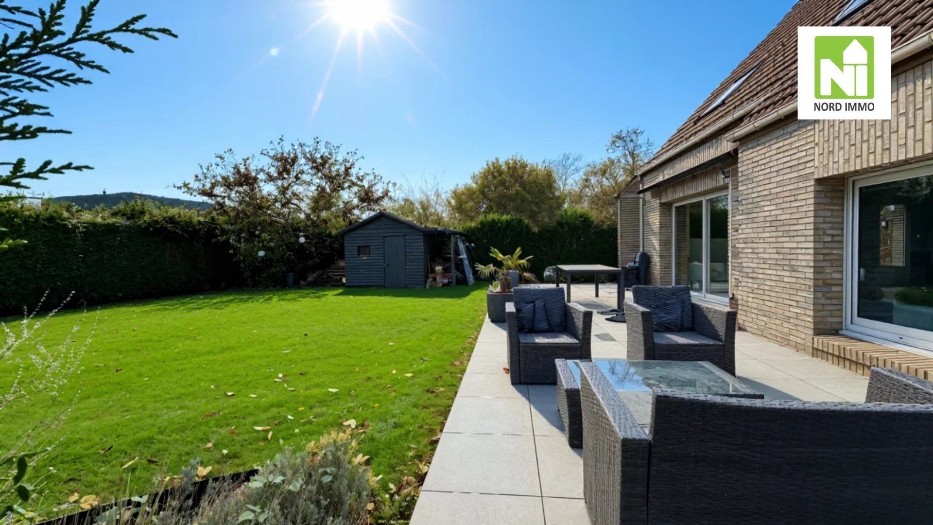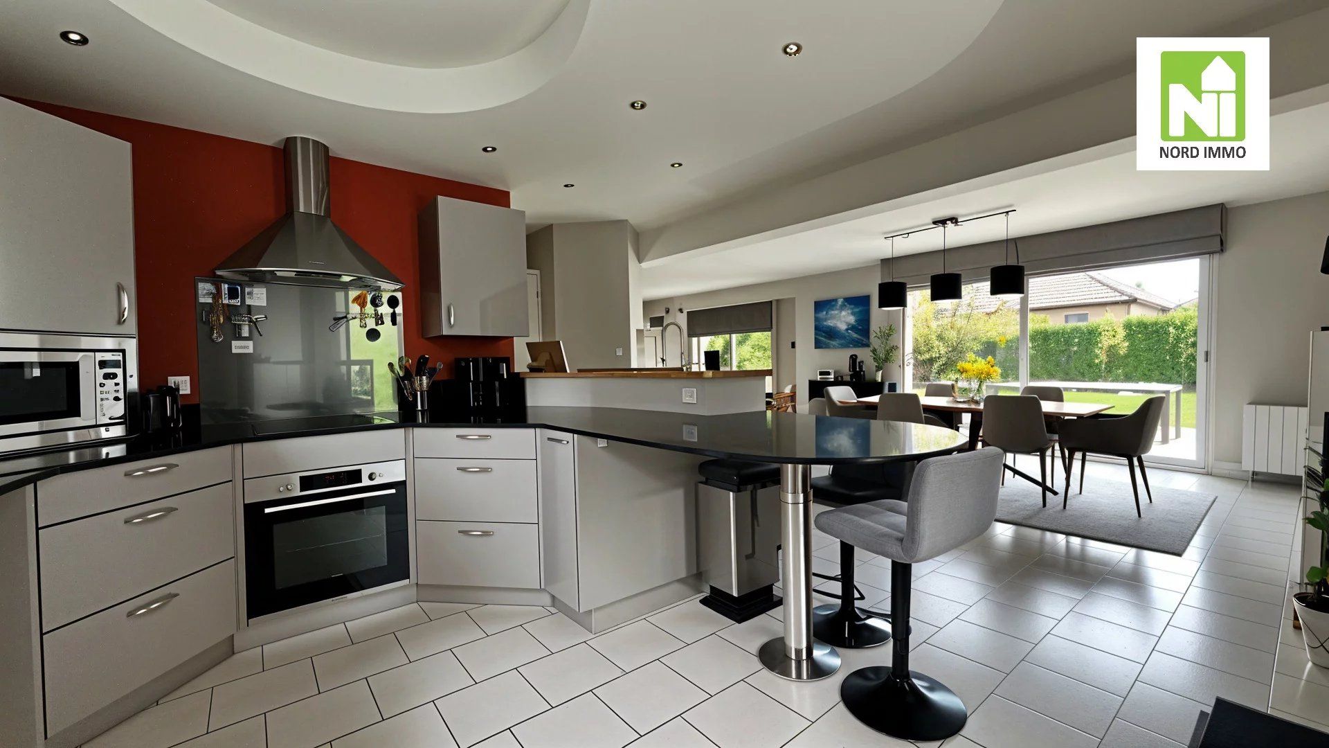 Maison individuelle - 4 chambres Nord Immo vous propose à la vente cette superbe maison individuelle battue sur une parcelle denviron 580m2 en impasse dans un environnement calme. La maison se compose dune grande entrée donnant accès à un espace de vie spacieux et lumineux de plus de 50m2 composé dun espace salon avec son poêle à bois, une salle à manger et une cuisine ouverte Entièrement équipée. Un grand garage et un espace buanderie complète ce meme niveau. Au premier étage, desservi par un palier intermédiaire, vous découvrirez quatre chambres spacieuses dont une suite parentale avec sa salle de douche. Ainsi quune salle de bain avec baignoire et double vasque, et un WC séparé. A lextérieur, magnifique terrasse de 80 m² exposé plein sud ainsi quun chalet de jardin (2.13 % honoraires TTC à la charge de l'acquéreur.)