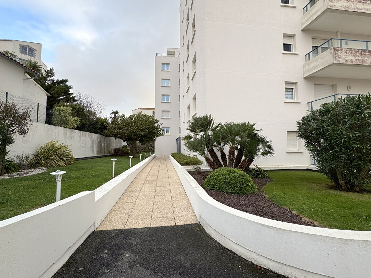 A deux pas du marché central, APPARTEMENT T2 LUMINEUX offrant: entrée avec placard, vaste séjour-salon de 38 m² exposé sud-ouest, donnant sur terrasse de 23 m², cuisine aménagée indépendante, grande chambre de 15,44 m² avec placard, bureau, salle d'eau et wc. Garage en sous-sol de l'immeuble. Résidence de bon standing avec ascenseur, proche de toutes commodités. (5.00 % honoraires TTC à la charge de l'acquéreur.) Copropriété de 81 lots - dont 28 lots habitation. (Pas de procédure en cours). Charges annuelles : 1942 euros.