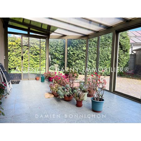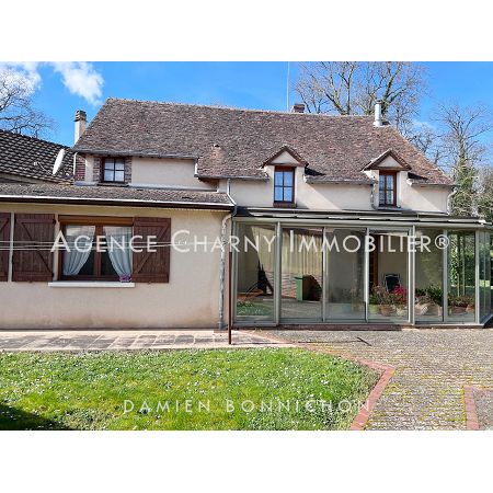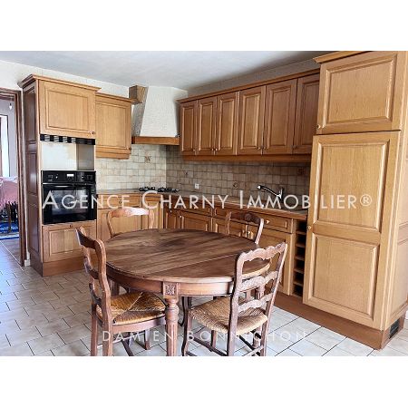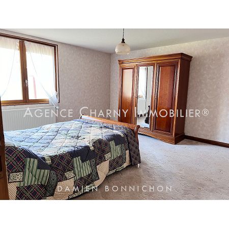 Charny centre-ville, Maison ancienne comprenant entrée, séjour avec cheminée insert, cuisine aménagée, dégagement, 2 chambres, salle d'eau avec wc , wc, buanderie-chaufferie ; à l'étage : palier, 4 chambres, salle de bains avec wc. Véranda.