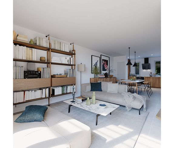 Au RDC : Une pièce de vie traversante de 30m2 ouvrant sur une terrasse de 13m2 et le jardin, une cuisine meublée et entièrement équipée et un cellier/buanderie attenant.